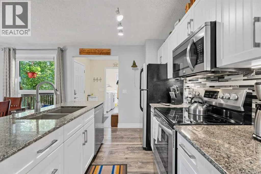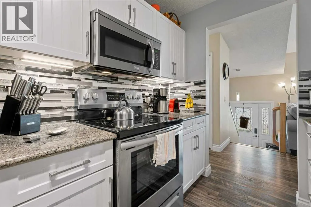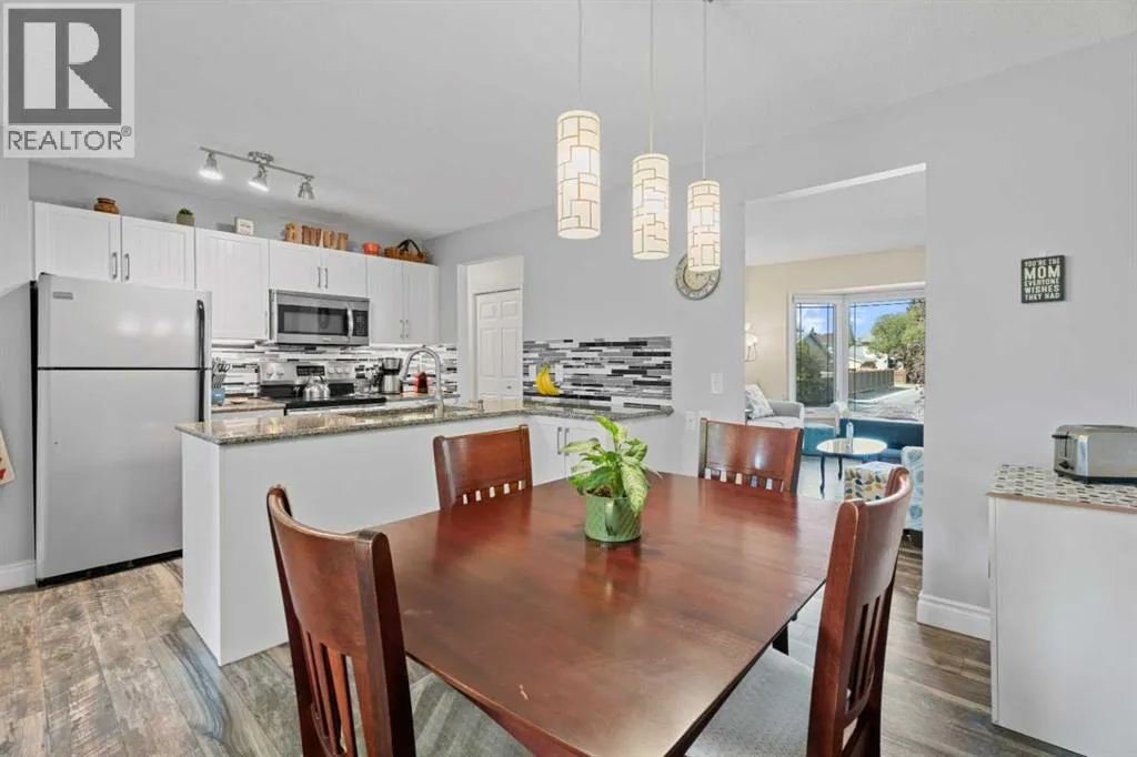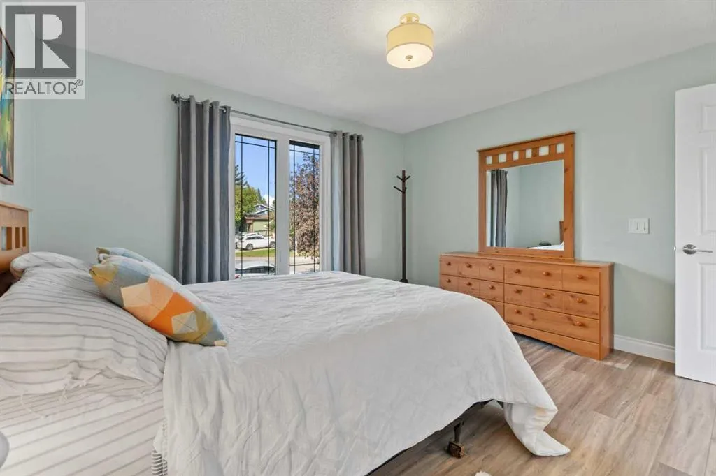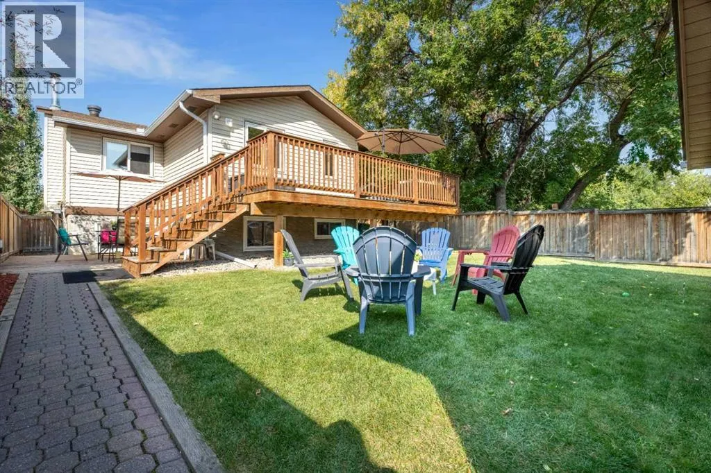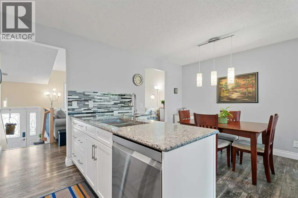 Nestled in the heart of the mature community of Meadowbrook, this beautifully maintained 5-bedroom, 2-bathroom bi-level offers a perfect blend of timeless charm and modern updates. Situated on a generous lot rarely found in newer communities, this home is ideal for families seeking space, comfort, and convenience. Step inside and be greeted by vaulted ceilings and a bright, open living room â perfect for both entertaining and everyday living. The renovated kitchen (2016) features granite countertops, timeless cabinetry, stainless steel appliances (2019), and a cozy dining nook that flows seamlessly into the living area. The main level offers three spacious bedrooms, an updated 4-piece bathroom (2017), and a convenient laundry/mudroom off the rear entrance after parking in the oversized 2-car garage â perfect for busy family life. Downstairs, you'll find large windows that flood the space with natural light, making the lower level feel warm and inviting. This level includes a spacious family room, two more bedrooms, and a second full bathroom â ideal for guests, teenagers, or a home office setup. Notable Updates Include: roof, siding, and exterior (2014), full kitchen renovation (2016), Upstairs bathroom (2017), Front and back doors, dining area window (2017), deck (2018), laminate flooring (2018), appliances (2019), washer & dryer (2021), and all basement windows (2022). Enjoy the tranquility of nature-filled walking paths, proximity to schools (R.J. Hawkey Elementary, Meadowbrook Middle, Bert Church High School), and quick access to Genesis Place, hockey arenas, East Lake Blvd, Yankee Valley Blvd, and Highway 2 â making this a dream location for commuters and active families alike. Donât miss your chance to own this turn-key home in one of Airdrieâs best-established neighborhoods â homes like this donât come up often! (id:27476)