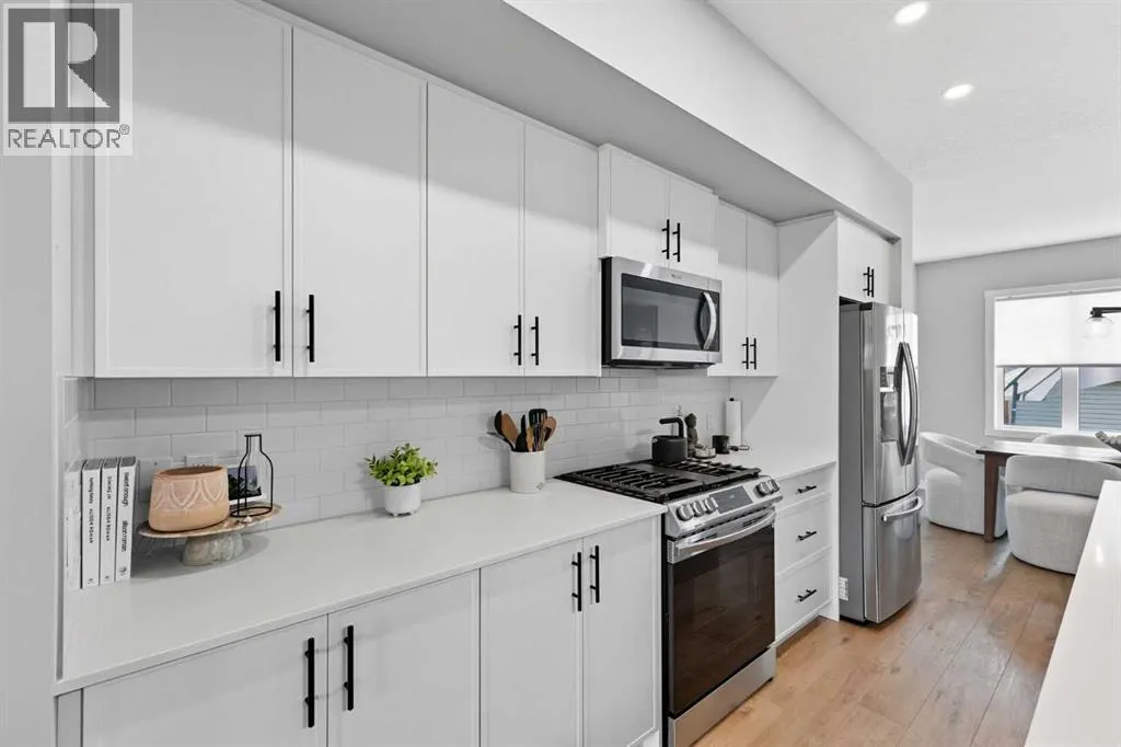 Welcome to Hillcrest, one of Airdrieâs newer and sought-after communities! This exceptional home offers style, comfort, and functionality with three spacious bedrooms, 2.5 bathrooms, and modern finishings throughout. Built less than five years ago, itâs like new and is move-in ready.Inside, youâll find a bright and open floor plan designed for todayâs lifestyle, complete with upgraded appliances and details along with air conditioning for year-round comfort. The upper level hosts three well-sized bedrooms, including a relaxing primary suite with its own three-piece ensuite.Outside, the property highlights a large detached heated garage, perfect for vehicles, storage, or a workshop. The backyard is a wonderful extension of the living space, offering room to relax or entertain. The property also features a separate side door for privacy and future development.Located close to schools, parks, shopping, and all amenities, this home combines modern living with convenience in a growing, family-friendly neighbourhood. (id:27476)