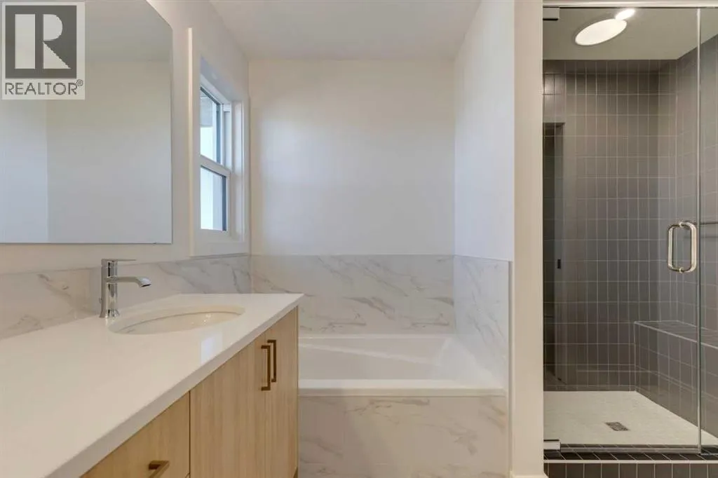Introducing the Caspian 2. Built by a trusted builder with over 70 years of experience, this home showcases on-trend, designer-curated interior selections tailored for a home that feels personalized to you. This energy-efficient home is Built Green certified and includes triple-pane windows, a high-efficiency furnace, and a solar chase for a solar-ready setup. With blower door testing that can offer up to may be eligible for up to 25% mortgage insurance savings, plus an electric car charger rough-in, itâs designed for sustainable, future-forward living. Featuring a full range of smart home technology, this home includes a programmable thermostat, ring camera doorbell, smart front door lock, smart and motion-activated switchesâall seamlessly controlled via an Amazon Alexa touchscreen hub. Stainless Steel Washer and Dryer and Open Roller Blinds provided by Sterling Homes Calgary at no extra cost! The gourmet kitchen is equipped with stainless-steel appliances, a waterfall island edge, a gas range, chimney hood fan, and a walk-in pantry. Enjoy a 9' basement, side entrance, and a rear wood deck with BBQ gas line RI. A main floor bedroom with a full bathroom adds flexibility. The luxurious ensuite features dual undermount sinks, a soaker tub, and a tiled shower with a barn-style door. Additional features include a modern electric fireplace with tile and vaulted ceilings in the bonus room. (id:27476)