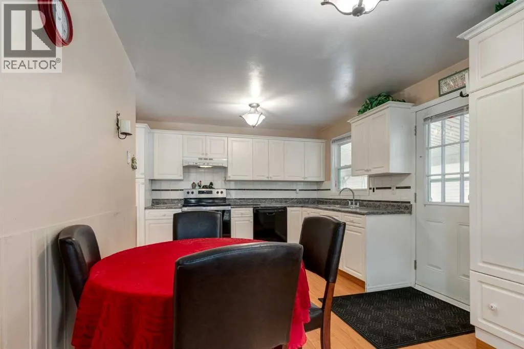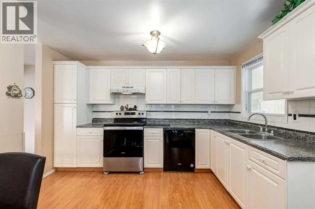 Fully developed Bi Level in Meadowbrook, well loved by just 2 owners! Common living areas of this home are spacious, and enjoy a sunny southern exposure with laminate flooring throughout the entire main floor. Newer windows, replaced just 7 years ago. White kitchen has newer appliances. 2 large bedrooms upstairs, with a 4 piece bathroom that is attached to the primary bedroom. The lower level has a private rec. room with rough ins for a wet bar. 2 additional large bedrooms and another full 4 piece bathroom. Loads of storage including under the stairs. Covered deck with storage underneath. The 26x24 detached garage has a large attached shed, that once had a hot tub. There is also gravel parking pad on the side of the house, that could fit 2 additional vehicles. Mature trees give this home tons of privacy, the brick facade and neatly manicured add to the excellent curb appeal. (id:27476)