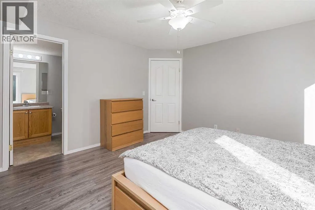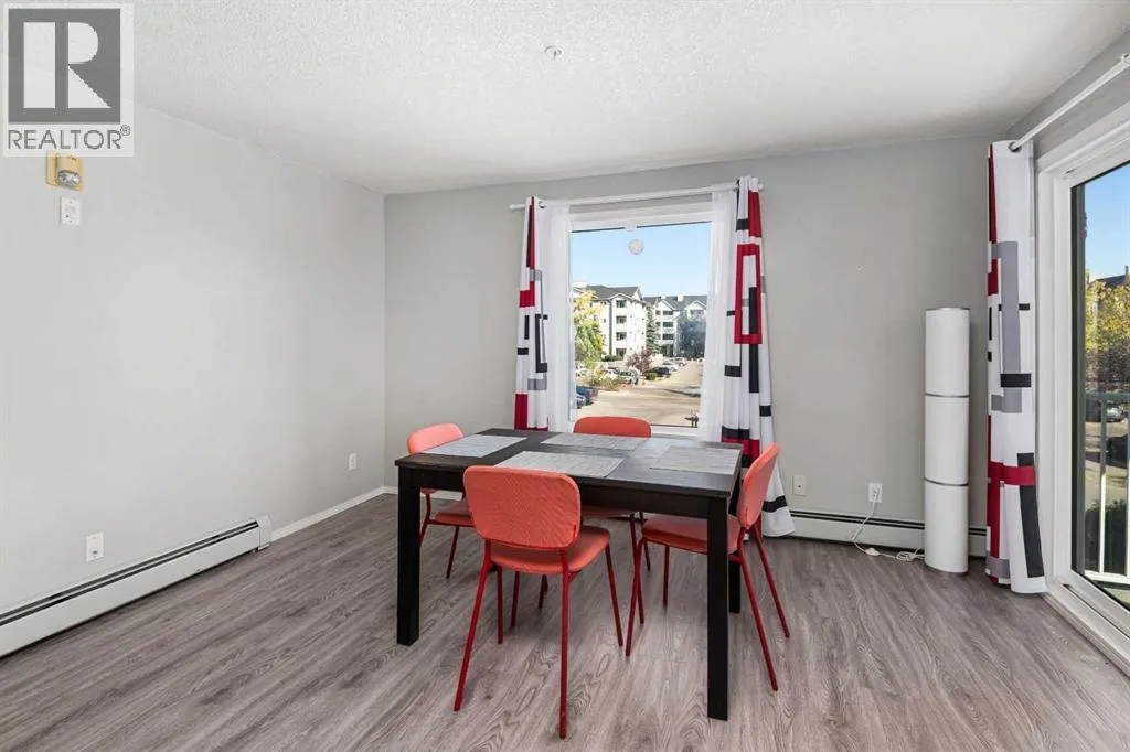 Welcome to the heart of Downtown Airdrie!Whether you are a first-time buyer, downsizing, or looking for a strong rental investment, this condo is an excellent choice.Location:Within walking distance to downtown Airdrie, schools, parks, playgrounds, quality restaurants, and a shopping plaza just steps away. Your designated parking stall (#2) is located directly beneath the unit window for maximum convenience.The Apartment:This spacious unit offers 908 sq. ft. of living space with 2 bedrooms, 2 full bathrooms, and a balcony with open views. In 2024, the condominium complex underwent upgrades with all windows replaced by new, energy-efficient vinyl units, adding both value and comfort.Inside, the open-concept layout provides excellent sightlines throughout the home. The kitchen offers abundant cabinetry, laminate countertops, a double sink with a large window, and quality appliances. The living room feels both bright and cozy, with plenty of natural light from the balcony doors.The primary bedroom features a large closet and a private 4-piece ensuite, while the second bedroom is generously sized, with its own closet and access to another 4-piece bathroom.This well-maintained apartment combines comfort, convenience, and location â a must-see opportunity in Downtown Airdrie. (id:27476)