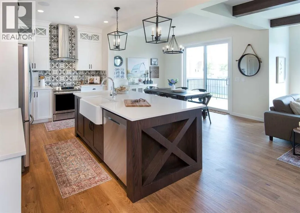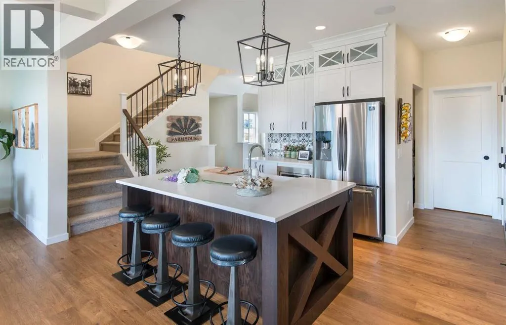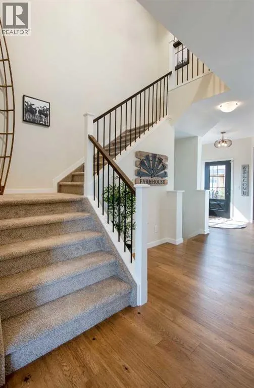 This is a rare opportunity to own a McKee Homes one of a kind Show Home! Welcome to refined living in the heart of Coopers Crossingâwhere elegance, comfort, and community grace every detail. Presenting a stunning McKee Homes show home featuring three bedrooms and two-and-a-half bathrooms, designed to impress from the moment you arrive.As you approach, youâre greeted by stately curb appeal: a well-appointed facade, manicured front landscaping, and architectural detailing that both complements and elevates the distinctive character of this premier neighborhood.Step inside to an interior that melds timeless style with modern convenience. The main level flows openly, anchored by an inviting foyer, soaring ceilings, and abundant natural light. The living space offers both warmth and sophisticationâideal for relaxing evenings or hosting in style. A chefâs dream kitchen awaits with quality finishes, sleek cabinetry, generous counter space, and an island thatâs perfect for casual breakfasts or a gathering hub over wine and conversation.Upstairs, three spacious bedrooms provide comfort and privacy. The master suite is a peaceful retreat, complete with a spa-inspired ensuite and thoughtfully crafted closets. Two additional bedrooms share a well-appointed bathroom. A convenient half-bath on the main level ensures guest comfort, and practical design choicesâincluding storage solutions and smart layoutâmake every square foot count.Outside, the rear yard offers both tranquility and outdoor living potentialâwhether you envision morning coffees, evening barbecues or simply enjoying your morning sunlight in peace. The show-home quality ensures the finishes, fixtures, and craftsmanship have been refined to near perfection.Living in Coopers Crossing means more than just owning a beautiful homeâitâs embracing a lifestyle. This award-winning, master-planned community is celebrated for its lush parks, scenic ponds, myriad playgrounds and walking trails, and strong connections to n earby schools, shopping, and amenities. In this home, youâll find the rare combination of sophisticated design, thoughtful functionality, and a neighborhood that embodies pride of place. Itâs an opportunity to live well, in one of Airdrie's most desirable communities. (id:27476)