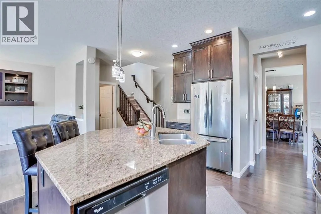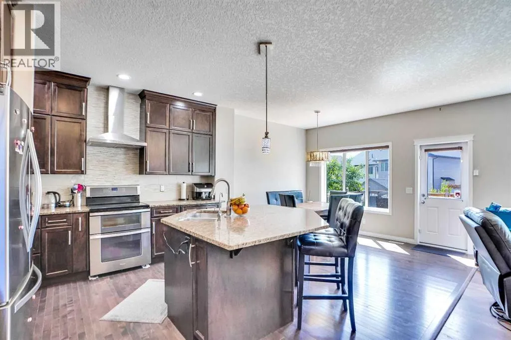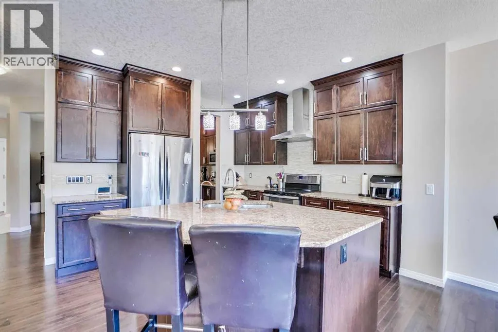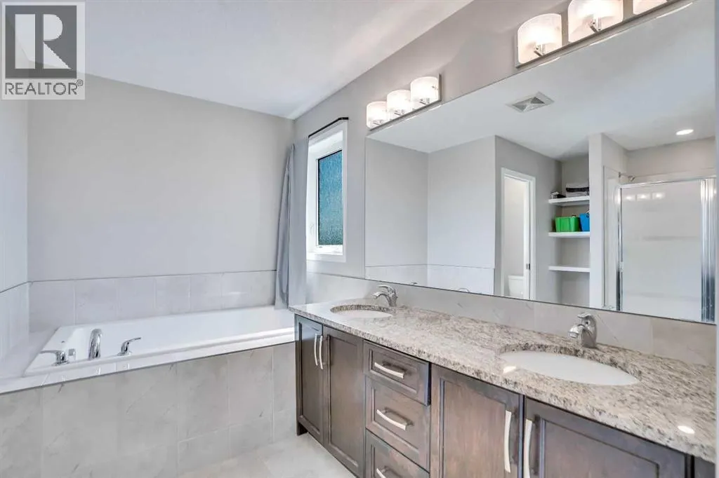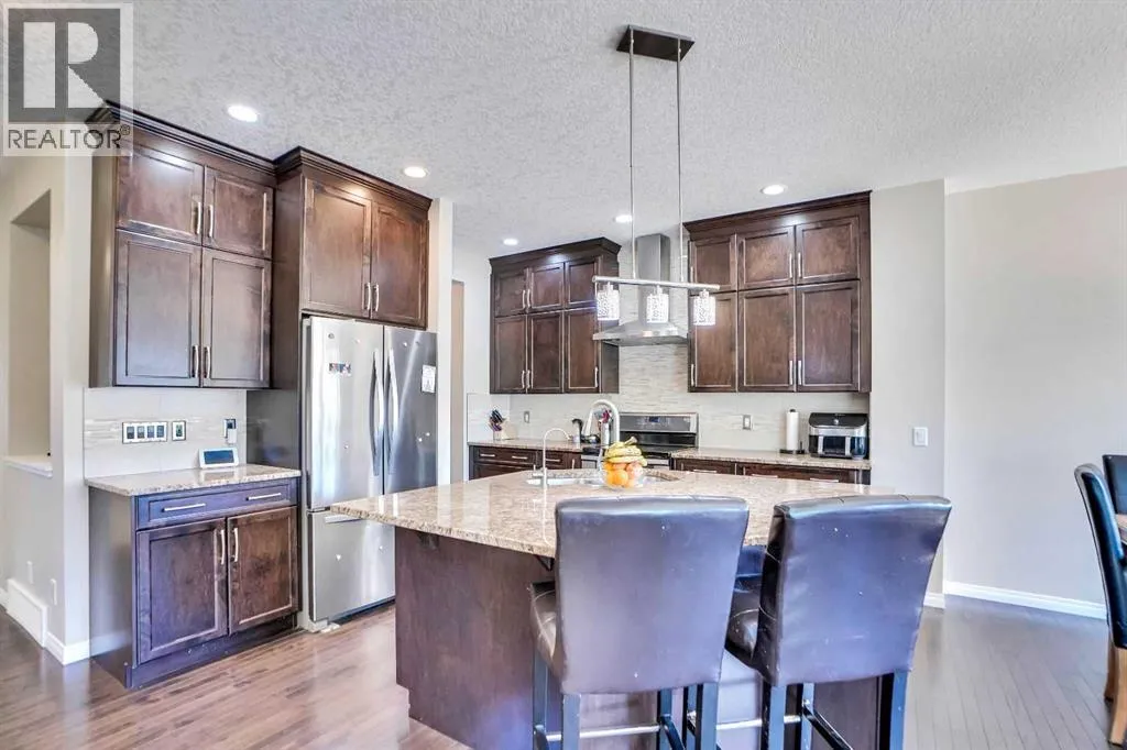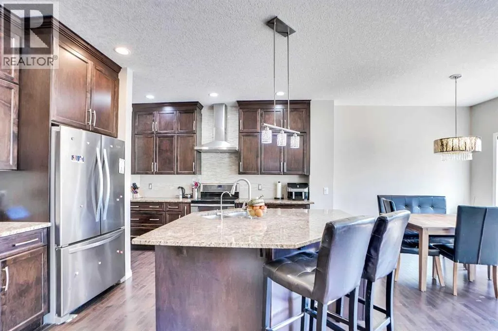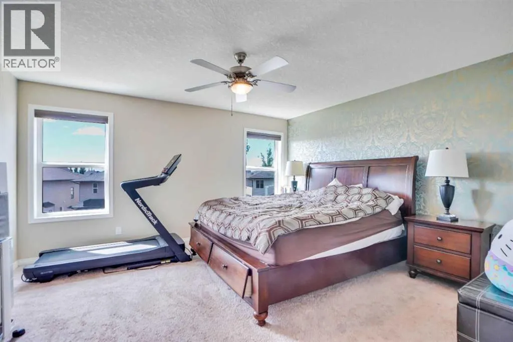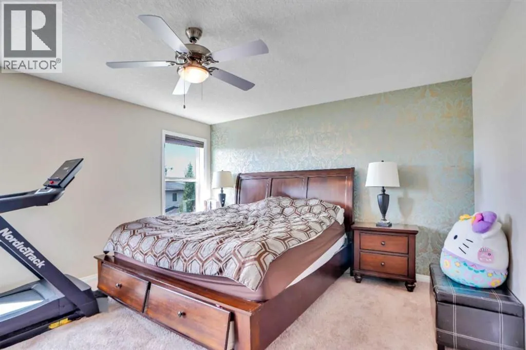 Welcome to this beautifully maintained two-storey home offering over 3,400 square feet of fully developed living space in one of Airdrieâs most sought-after neighbourhoods - Hillcrest SW! This exceptional property has been meticulously cared for by its original owners and is a rare opportunity to own a spacious six-bedroom home with high-end upgrades throughout.The main and upper levels feature fresh paint and a well-designed layout that includes four generously sized bedrooms upstairs, while the fully developed basement adds two additional bedrooms, providing ample space for large families, guests, or a home office setup. With 3.5 bathrooms in total, comfort and convenience are ensured on every level.Designed with both style and function in mind, the home boasts 9-foot ceilings, rich maple cabinetry in the kitchen, sleek granite countertops including a large center island, and stainless steel appliances. The warmth of hardwood flooring enhances the main living areas, while central air conditioning ensures year-round comfort.Step outside to a fully fenced backyard complete with a spacious deckâperfect for outdoor entertainingâand a handy storage shed for additional convenience. The double attached garage adds practicality and curb appeal to this already impressive home.Located in a quiet and family-friendly community, this home offers the perfect balance of luxury, space, and location. With thoughtful upgrades, a rare six-bedroom layout, and quality finishes throughout, this property is truly move-in ready. (id:27476)
