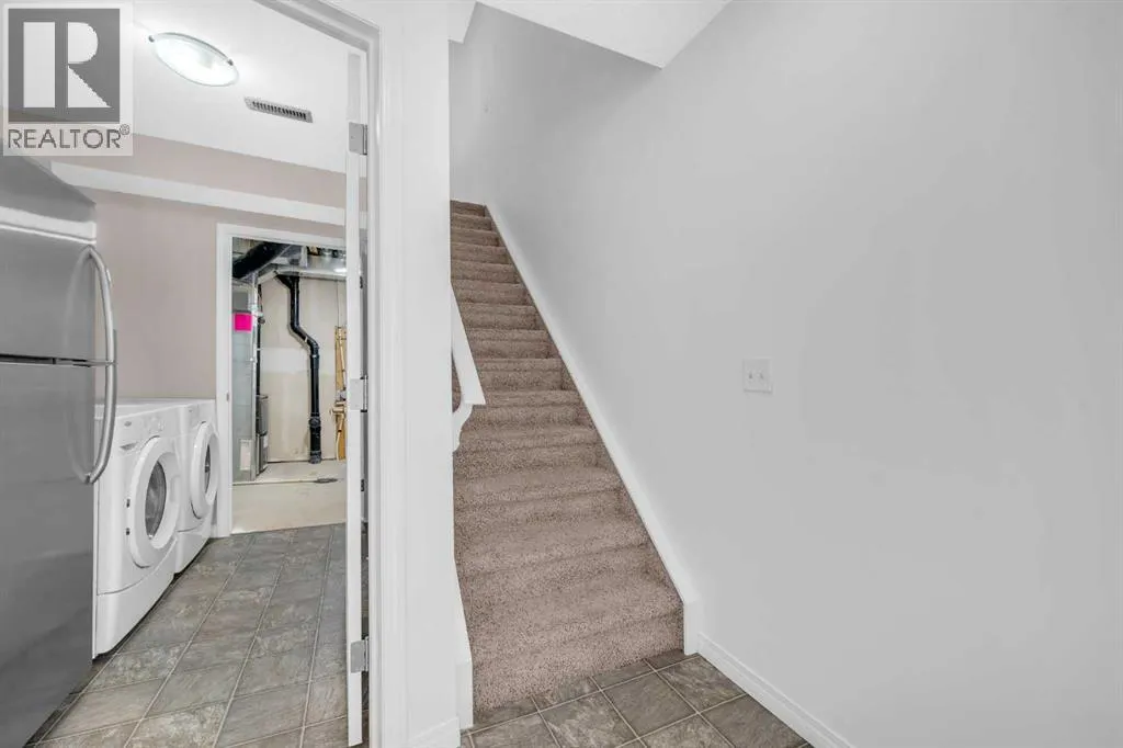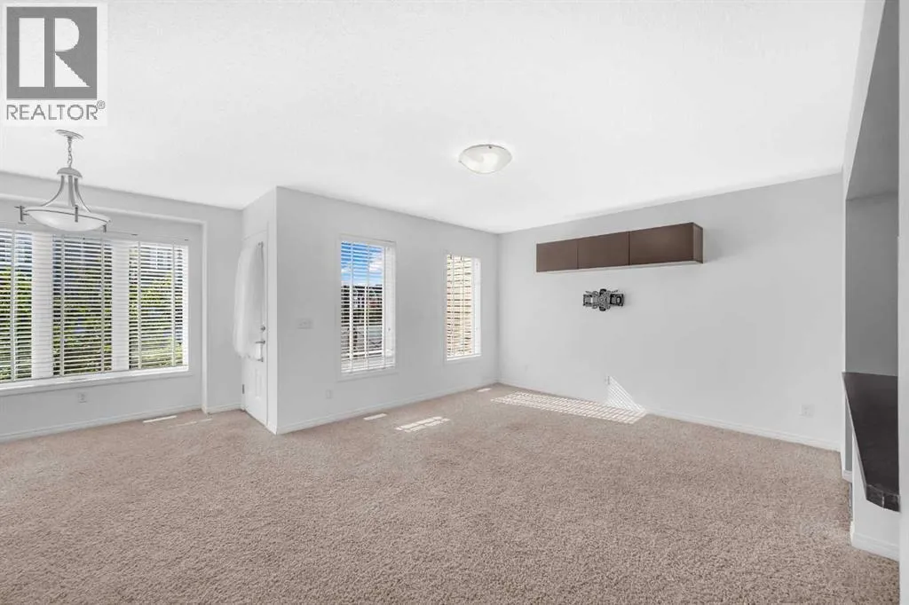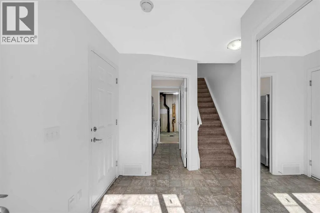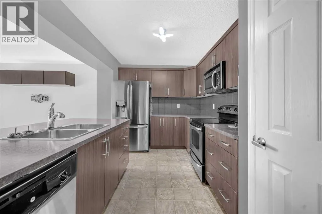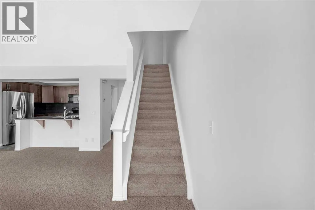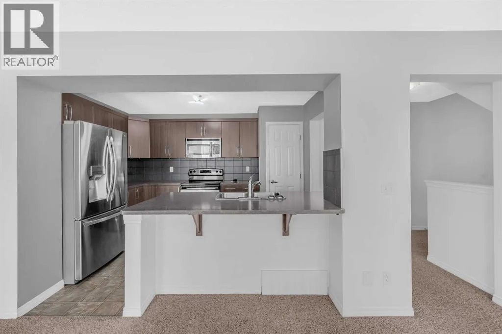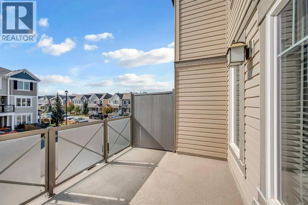 Beautiful 3 Storey Townhouse with NO CONDO FEES located in the family friendly community of Windstore, SW Airdrie! This home is in pristine condition with upgrades! Main level features an open concept plan including a beautiful kitchen with rich dark cabinetry complimented by stainless steel appliances, tile back splash & breakfast bar. A large living room with huge windows allow for an abundance of natural light to this great space. Dining room is spacious & has a patio door leading you to your sunny South facing private balcony with room for seating & BBQ. On the top floor, you will find a comfortable den perfect for a computer workspace & 2 good sized bedroom. The master boasts a 4pc ensuite with a cheater door & large walk-in closet! Ground level entry has plenty of room to sit & enjoy and also has a convenient laundry room, and utility room with ample storage & access to the over sized attached garage. This is a great house, perfect for the first time home Buyer or an Investor! (id:27476)