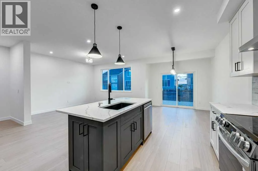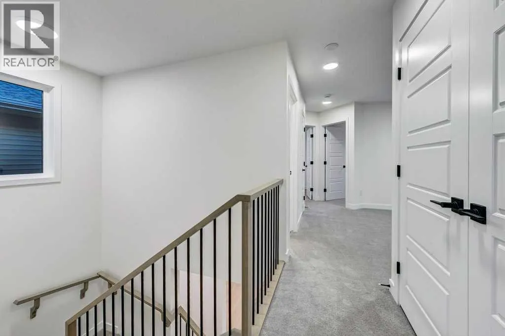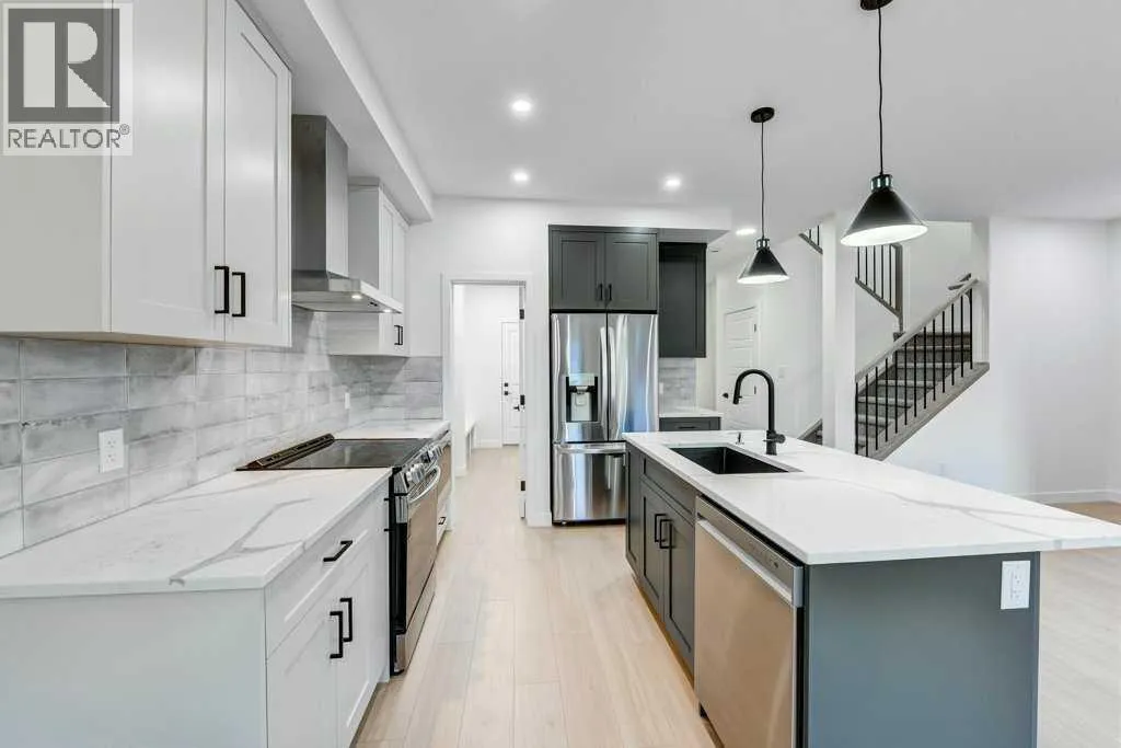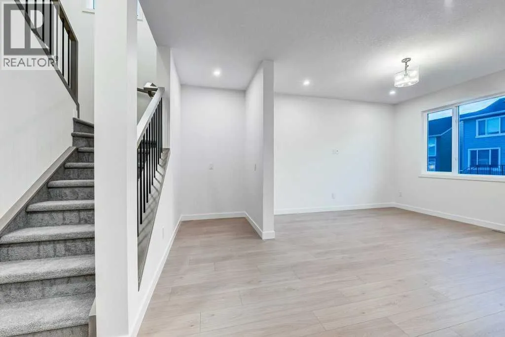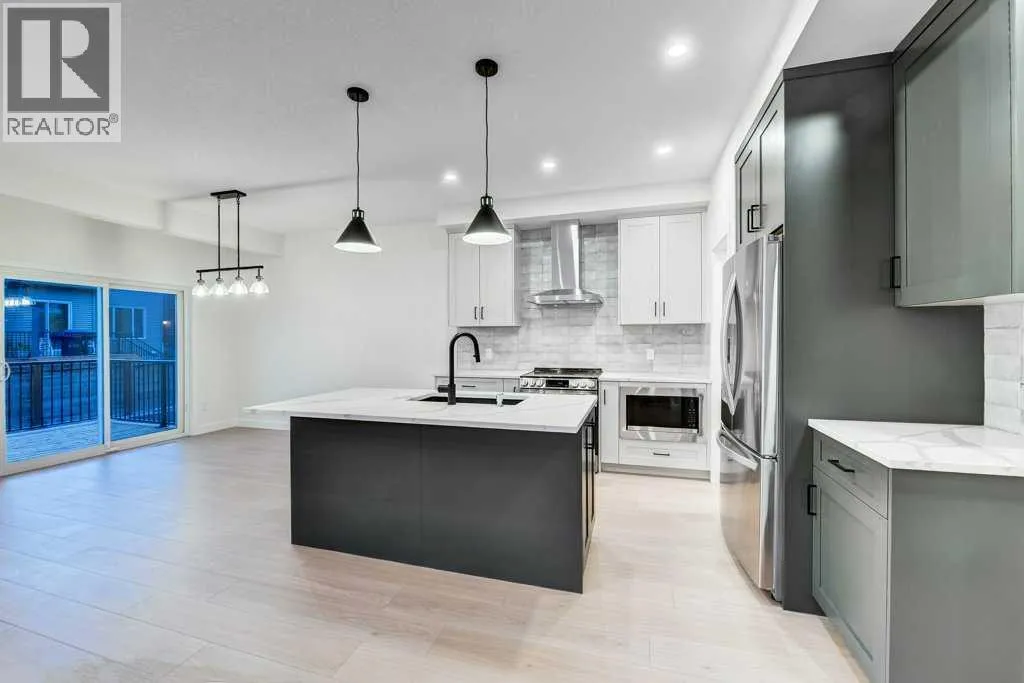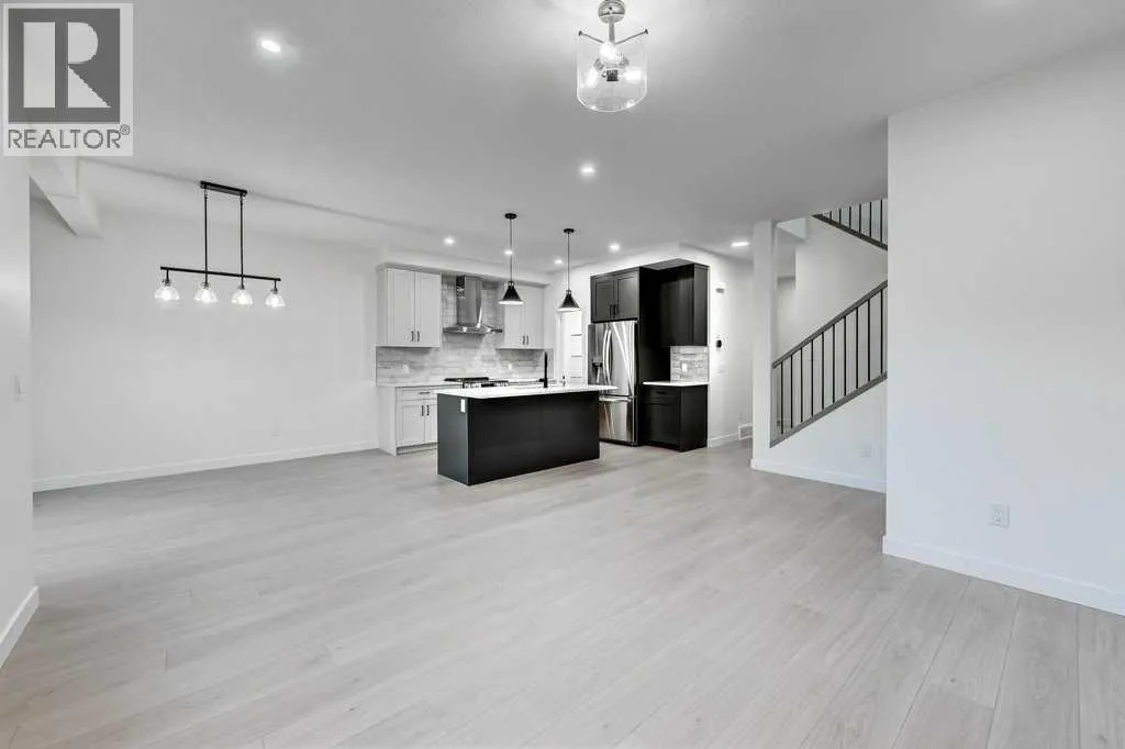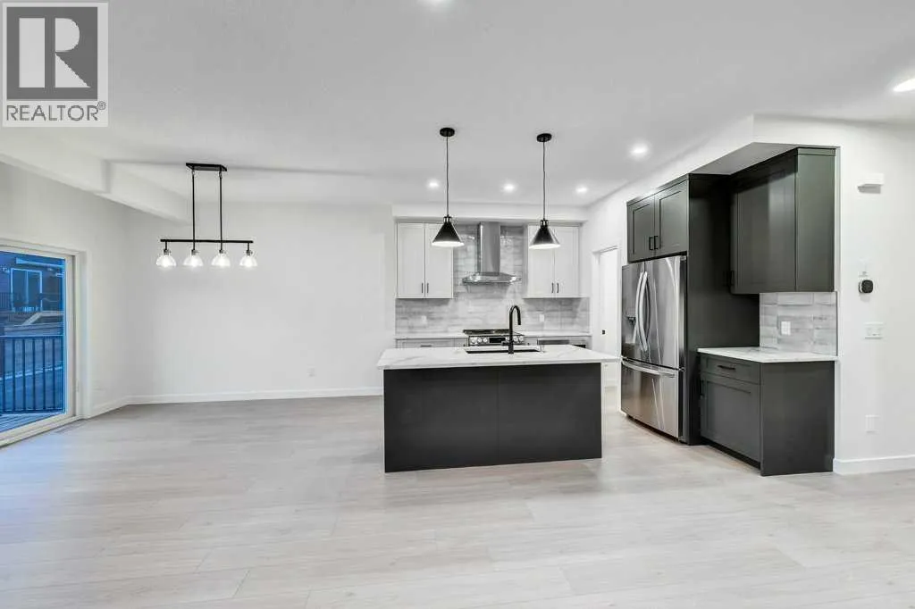 Welcome to 891 Langholm Drive SE, nestled in the vibrant new community of Lanark in Airdrie. This brand new, never occupied two storey home blends modern design, clean lines, and practical functionality, ideal for growing families and young professionals alike. The striking exterior showcases rich charcoal siding, elegant stone accents, upgraded exterior lighting, and a double attached garage, perfect for those cold winter mornings. Inside, youâll appreciate the wide plank luxury vinyl flooring, crisp white walls, matte black hardware, and an abundance of natural light throughout the main level. A flex area off the family room offers a versatile space for a home office or study nook, while the open concept layout seamlessly connects the living room, dining area, and chef inspired kitchen. The kitchen is a true showpiece, featuring a central island, modern ceiling height cabinetry, gleaming white quartz countertops, an undermount sink with pull down faucet, full height tile backsplash, premium stainless steel appliances, and a statement chimney style hood fan. Large rear facing windows and sliding patio doors bring in natural west facing light and connect the interior to the backyard, ready for your finishing touches. Upstairs, the layout continues to impress with a spacious primary retreat, two large additional bedrooms, full bathrooms, and a conveniently located upper floor laundry area. Two standout features include the upgraded modern iron railing and recessed LED lighting, while sleek black interior hardware and a fresh, neutral palette carry the design cohesion throughout the home. Located on a quiet, family friendly street just steps from parks, playgrounds, scenic pathways and only minutes from shopping & restaurants.Commuters will appreciate quick access to 40th Avenue and nearby main routes. Built by CASTELLANO CUSTOM HOMES with the highest of quality workmanship and attention to detail. Quick possession is available. Contact Troy today to book your private showing. (id:27476)