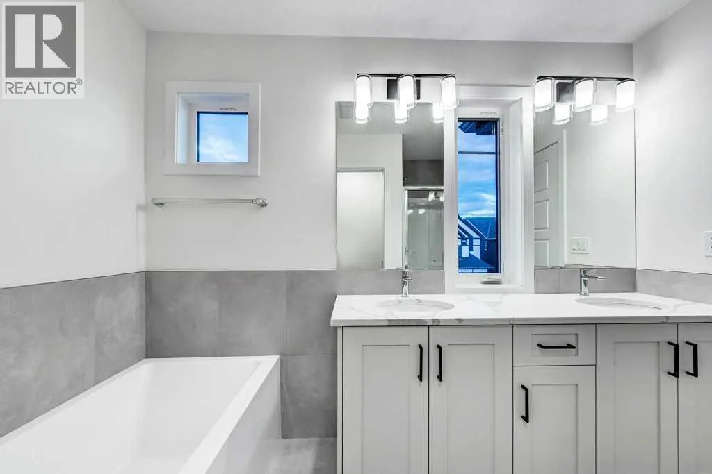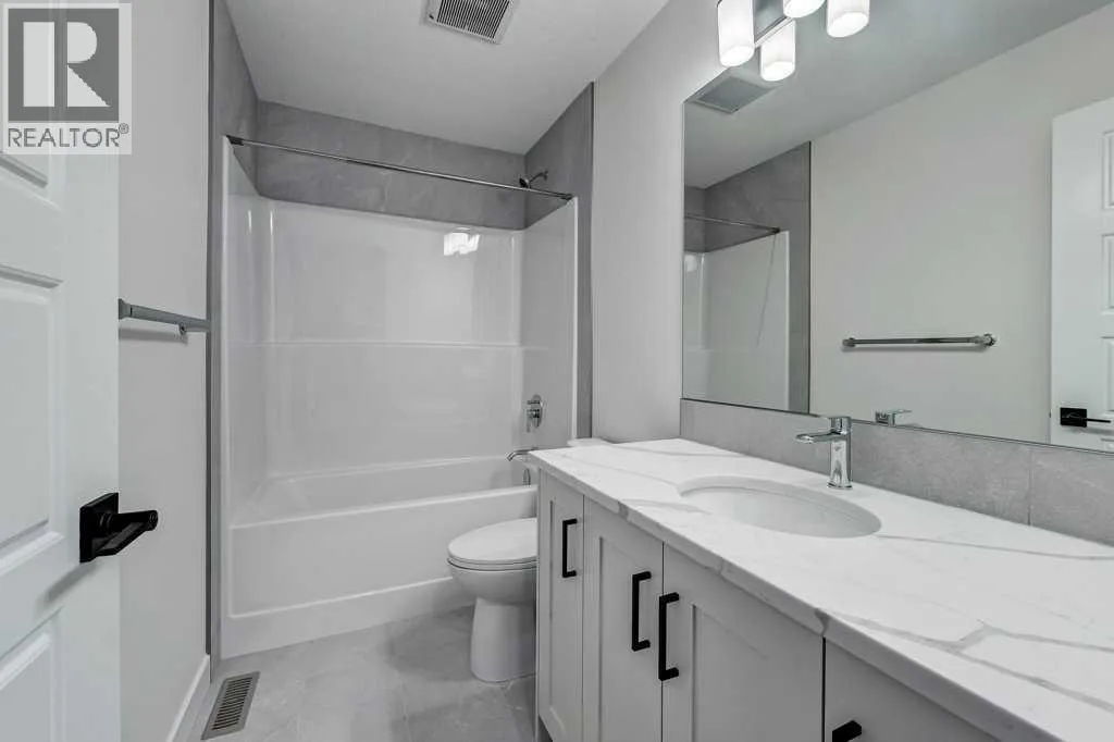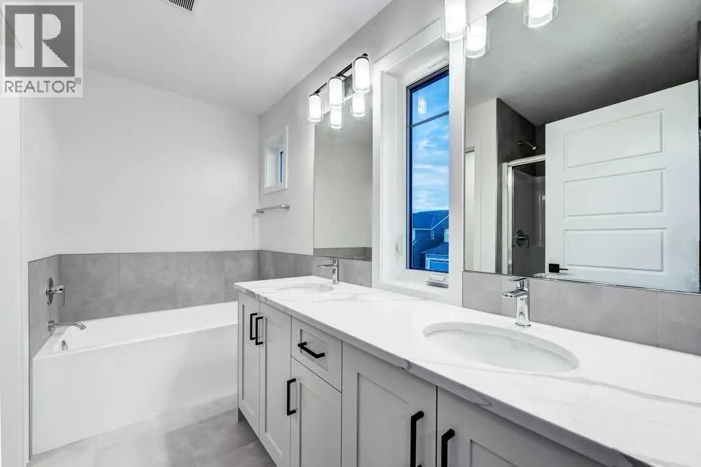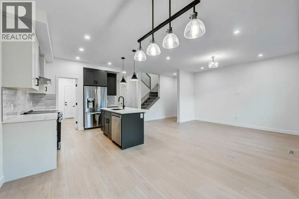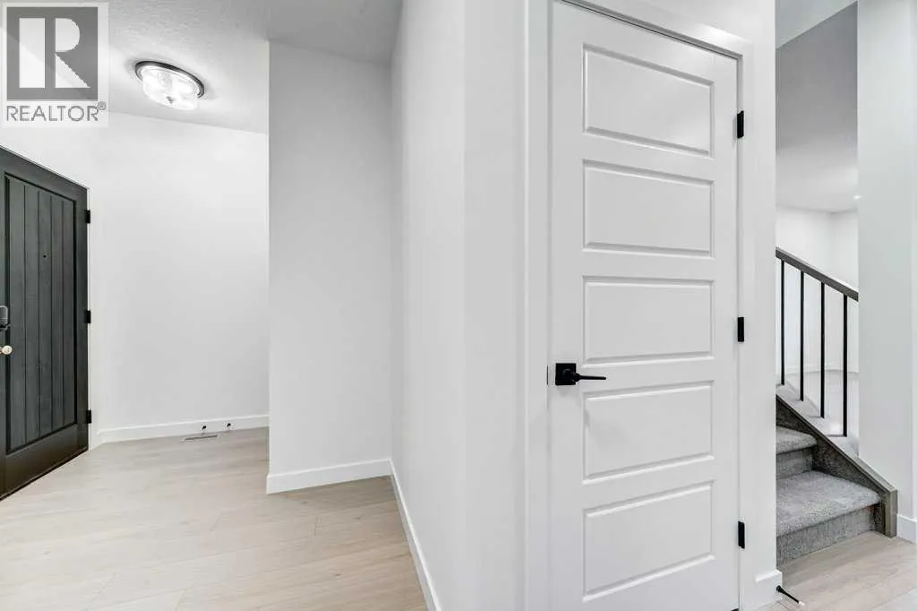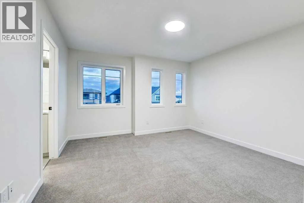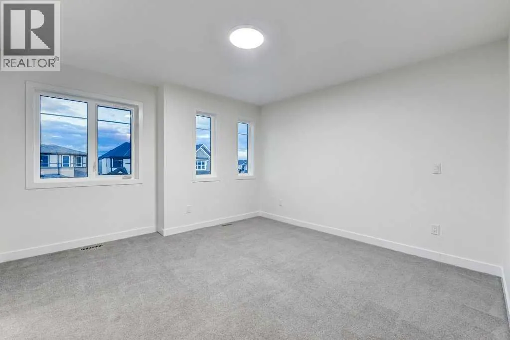 Welcome to 891 Langholm Drive SE, nestled in the vibrant new community of Lanark in Airdrie. This brand new, never occupied two storey home blends modern design, clean lines, and practical functionality, ideal for growing families and young professionals alike. The striking exterior showcases rich charcoal siding, elegant stone accents, upgraded exterior lighting, and a double attached garage, perfect for those cold winter mornings. Inside, youâll appreciate the wide plank luxury vinyl flooring, crisp white walls, matte black hardware, and an abundance of natural light throughout the main level. A flex area off the family room offers a versatile space for a home office or study nook, while the open concept layout seamlessly connects the living room, dining area, and chef inspired kitchen. The kitchen is a true showpiece, featuring a central island, modern ceiling height cabinetry, gleaming white quartz countertops, an undermount sink with pull down faucet, full height tile backsplash, premium stainless steel appliances, and a statement chimney style hood fan. Large rear facing windows and sliding patio doors bring in natural west facing light and connect the interior to the backyard, ready for your finishing touches. Upstairs, the layout continues to impress with a spacious primary retreat, two large additional bedrooms, full bathrooms, and a conveniently located upper floor laundry area. Two standout features include the upgraded modern iron railing and recessed LED lighting, while sleek black interior hardware and a fresh, neutral palette carry the design cohesion throughout the home. Located on a quiet, family friendly street just steps from parks, playgrounds, scenic pathways and only minutes from shopping & restaurants.Commuters will appreciate quick access to 40th Avenue and nearby main routes. Built by CASTELLANO CUSTOM HOMES with the highest of quality workmanship and attention to detail. Quick possession is available. Contact Troy today to book your private showing. (id:27476)