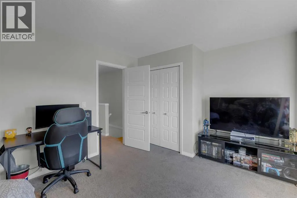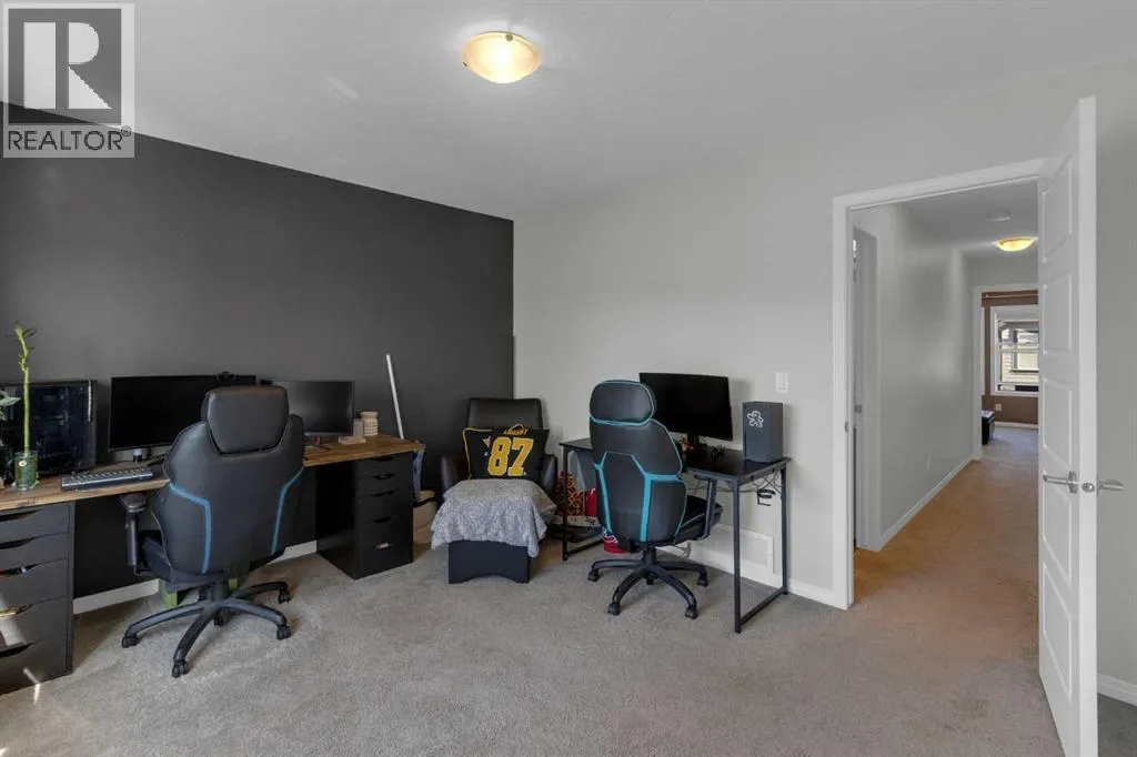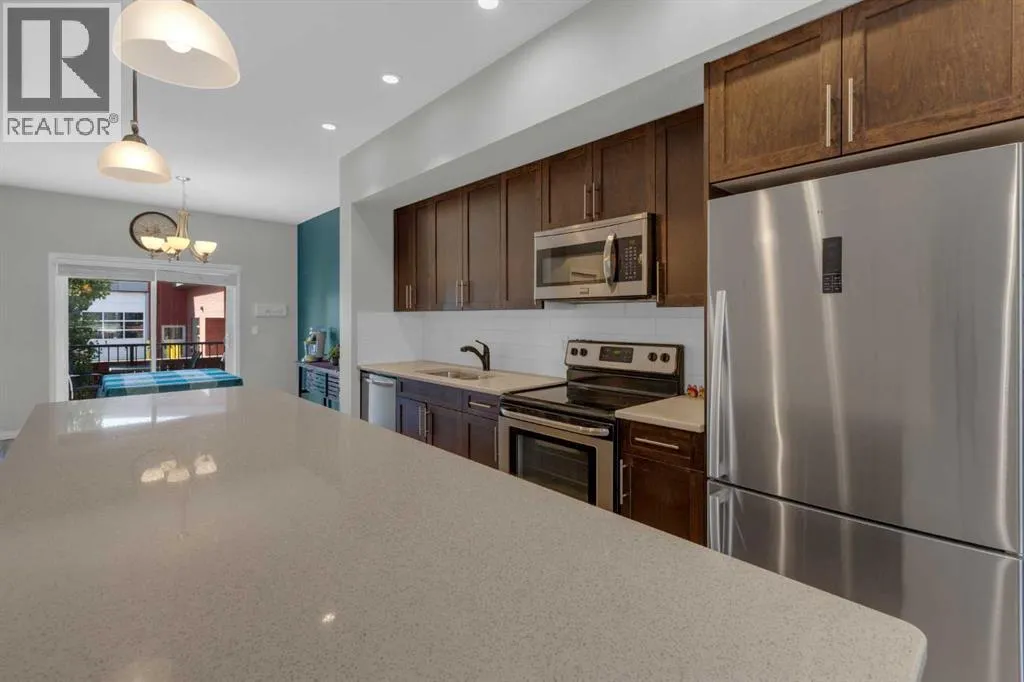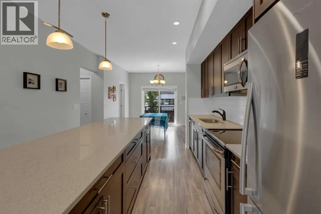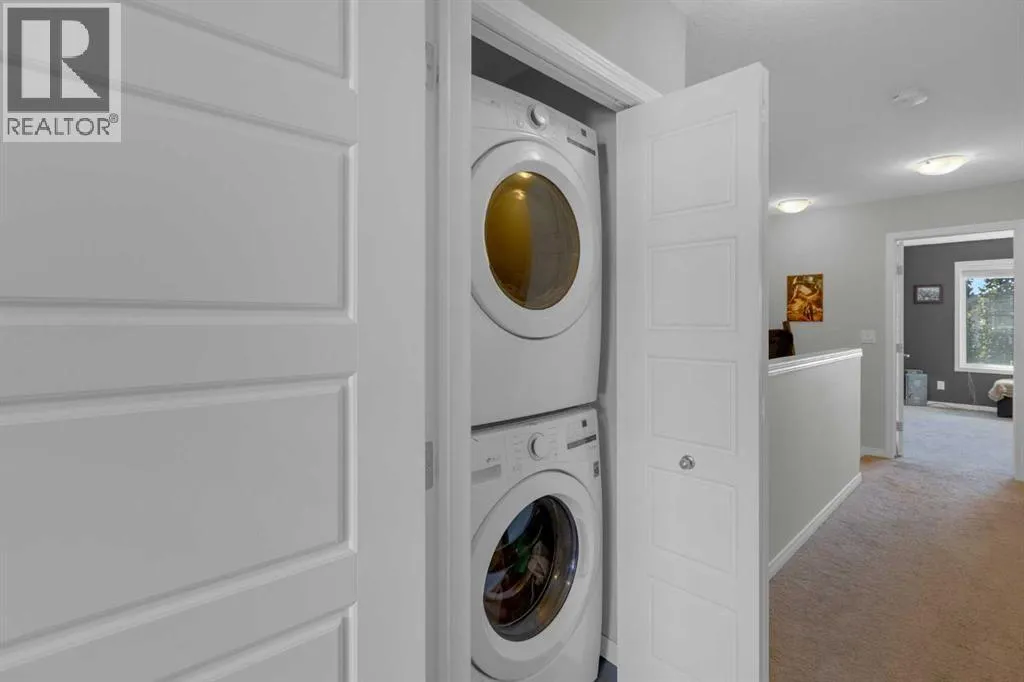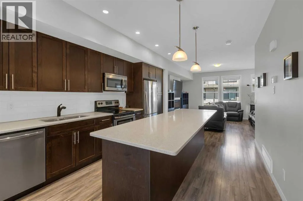 HOME SWEET HOME! Welcome to this exceptionally upgraded, ORIGINAL OWNER 3 storey Townhouse situated in a well-managed complex in Williamstown in amazing Airdrie! This is an incredible opportunity for investors, first-time home buyers and downsizers alike. Heading inside you will fall in love with the beautifully maintained, open concept layout offering nine foot ceilings, gleaming laminate flooring, 2 bedrooms, 2.5 bathrooms and 1,470+ SQFT of upscale living space throughout. The main floor offers a bright foyer, utility room with ample storage space and a double attached tandem garage. The 2nd floor features a large formal dining area with access to the spacious deck, gourmet chefâs kitchen highlighted by a massive center quartz island/eating bar, quartz countertops, stainless steel appliances, sun-drenched living room with a modern electric fireplace and a 2 piece vanity bathroom. Upstairs contains a laundry room, a great-sized bedroom, spacious primary bedroom with a walk-in closet perfect for all your needs and a gorgeous 4 piece ensuite bathroom. Outside, there is visitor parking, a double attached tandem garage and the large back deck that is perfect for bbqâing and entertaining on sunny days. This PET FRIENDLY complex (with board approval) is steps from a park/green space, pathways, shopping, restaurants, schools, public transportation, parks, easy access to Highway 2 and a quick drive to Calgary. Donât miss out on this exciting opportunity for investors and home buyers alike. This home is a MUST VIEW! Book your private viewing today! (id:27476)