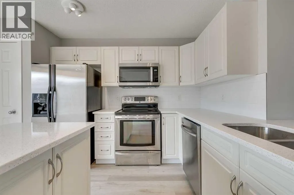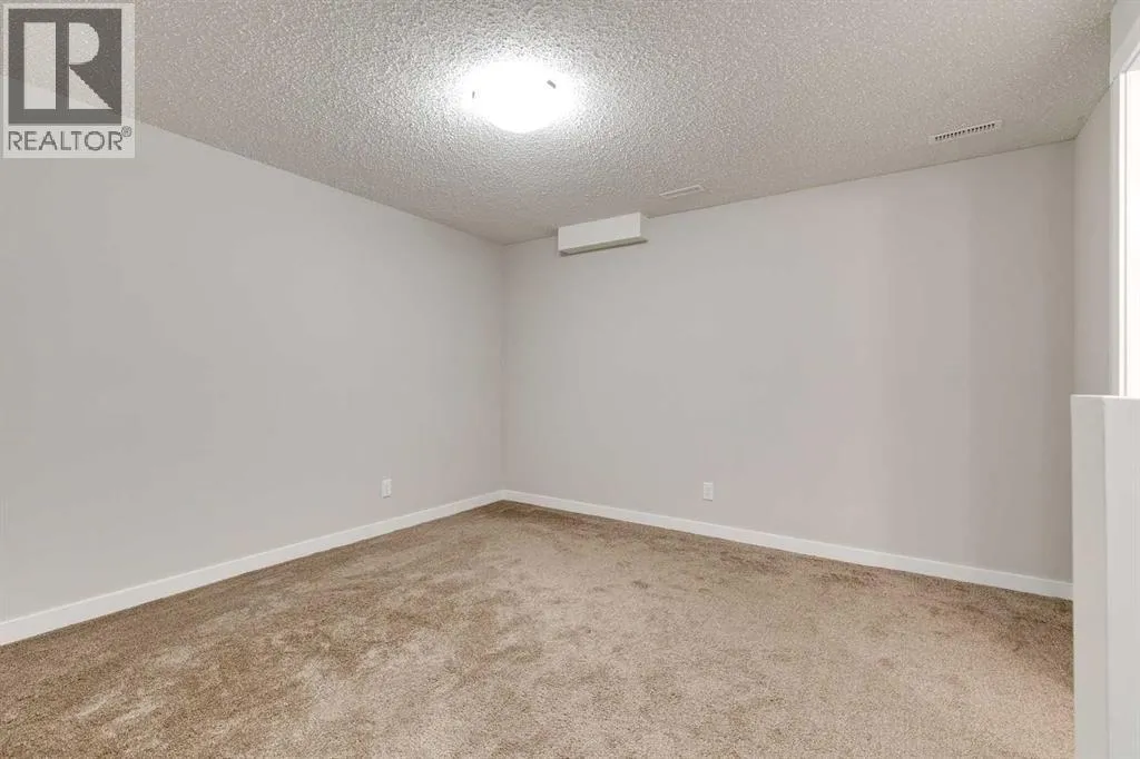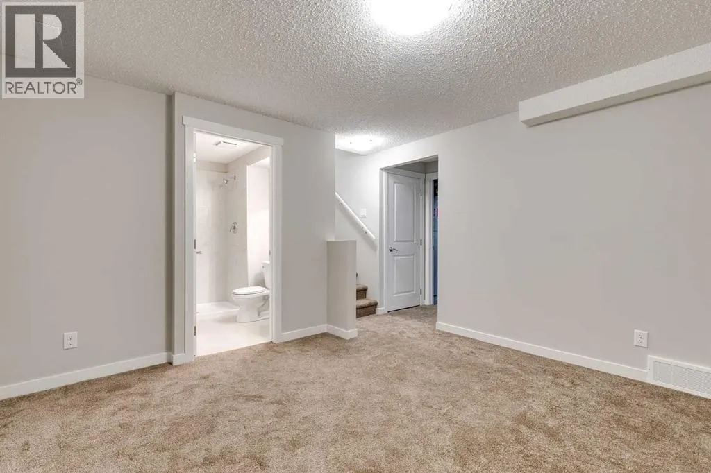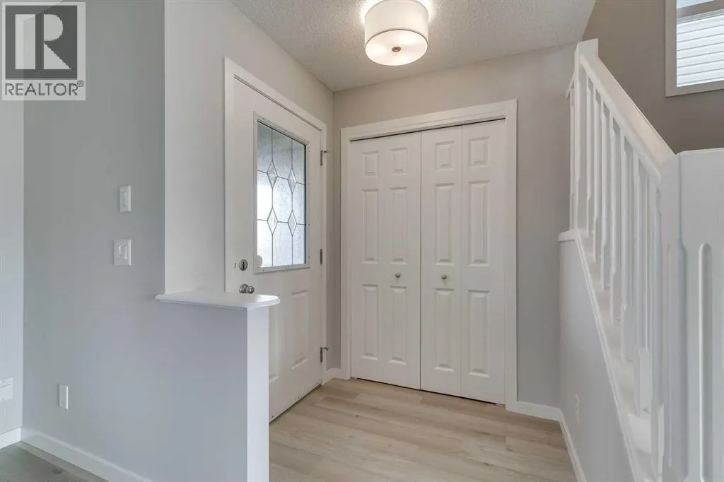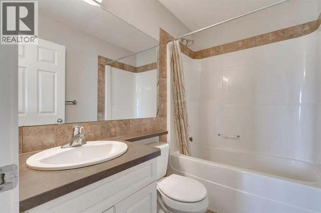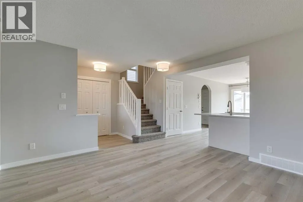 Acroos from a park and close to schools! Welcome to this charming 2-storey in Airdrieâs beloved Reunion community, where everyday comforts meet thoughtful updates. A classic front porch sets the scene for morning coffees or evening lounging, while inside sunlight pours through large windows into the living room, anchored by a cozy gas fireplace. The kitchen is the true heart of the homeâquartz counters gleam against beautiful cream coloured cabinetry, and stainless steel appliances stand ready for your next culinary adventure. The island and breakfast bar offers the perfect perch for taste-testers and storytellers alike, with a sunny dining nook overlooking the south-facing backyard. Upstairs, three inviting bedrooms await, including a serene primary suite with its own private ensuite, while the additional bedrooms share a bright, well-appointed bath. The newly developed fully finished basement extends your living space with a spacious family room, a fourth bedroom, and a full bathâideal for guests, teens, or cozy movie nights. Recent upgrades include new vinyl plank flooring, designer lighting, fresh paint, and a newly built double detached garage. (id:27476)