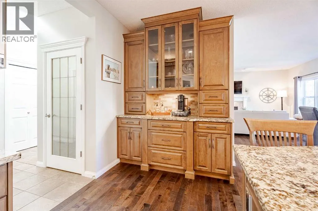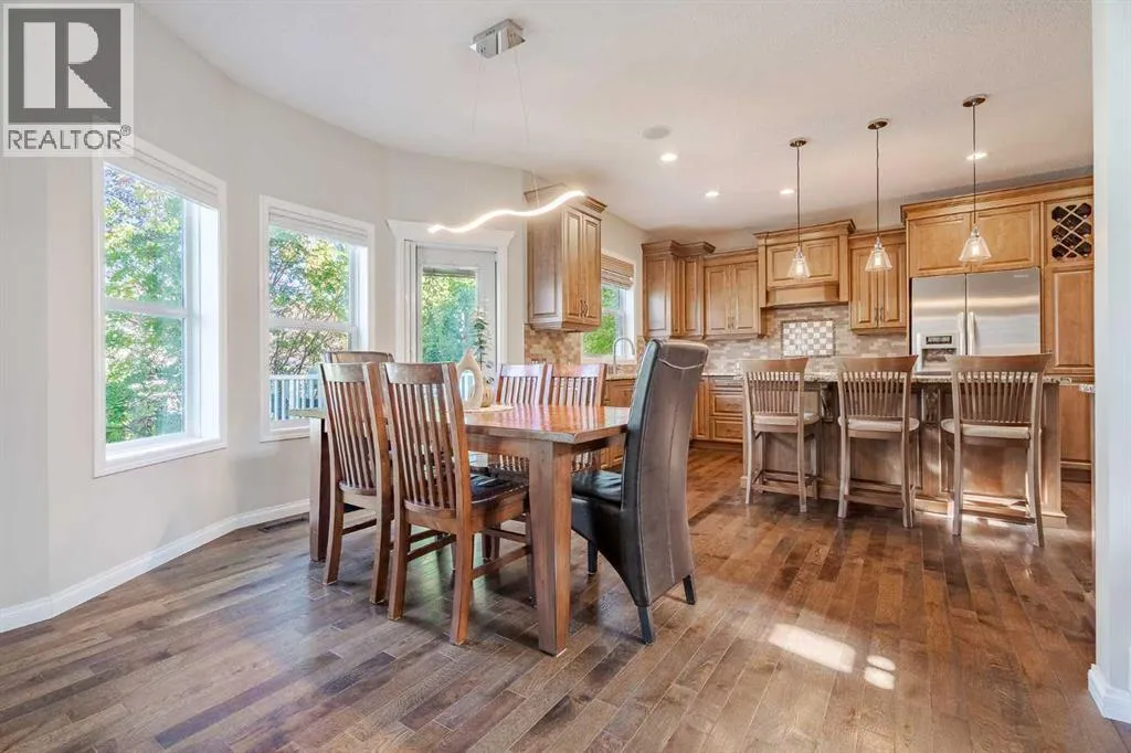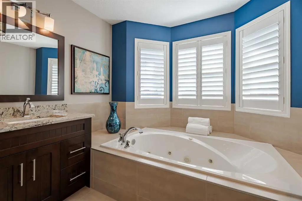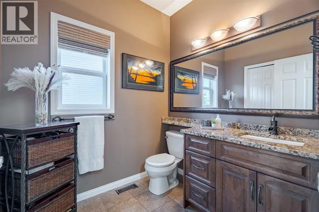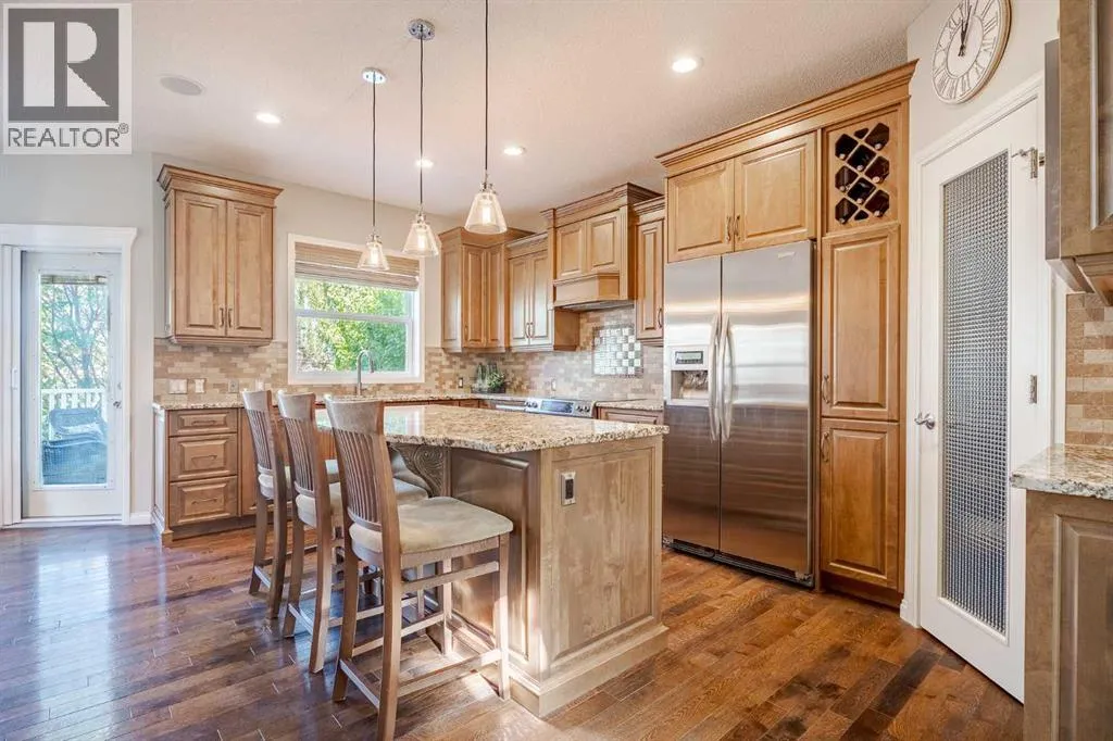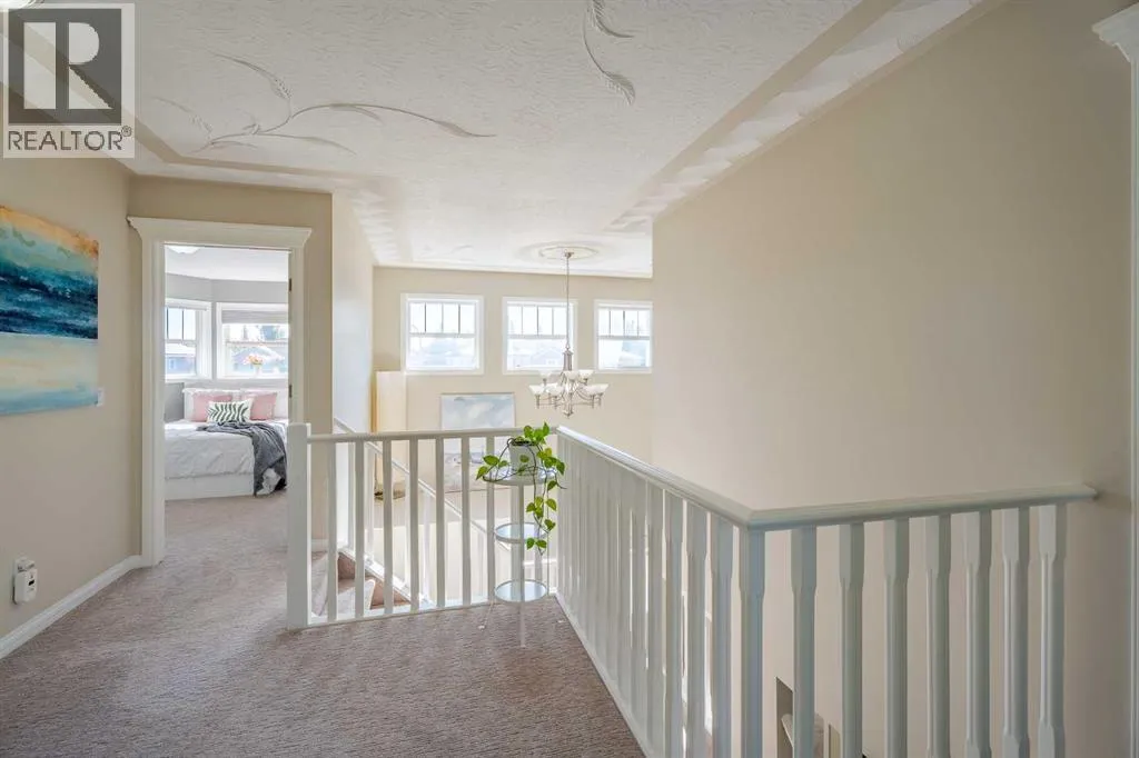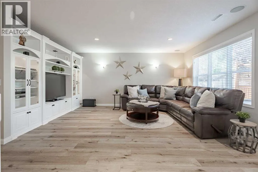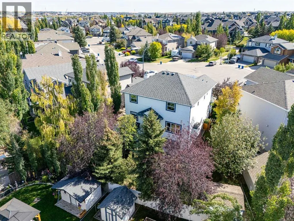 This stunning five-bedroom walkout home truly has it all in the loved SW Airdrie community of Coopers Crossing. Ideal location sitting on quiet cut de sac with immediate access to pathways, close to schools. From the moment you step into the two-storey foyer with its signature sculptured ceiling, youâll feel the quality and care that went into every detail. The designer Layne kitchen features granite counters, rich maple cabinetry with 42â uppers and lighting, and top-of-the-line stainless steel appliances. Built-ins on every floor add timeless style and function. Upstairs, four generous bedrooms including a serene primary suite with a spa-inspired ensuite with a jetted tub, heated tile floors, and large walk-in closet. Comfort meets convenience with central air, in-floor heat in both the garage and walkout basement, designer window coverings throughout, and ultra-durable wood plank flooring on the walkout level and hardwood on the main. Outside, enjoy a stamped concrete patio, beautiful mature landscaping, underground sprinklers, and a fully fenced backyard oasis complete with a large storage shed with lights! An oversized 23.5ft x 21.5ft finished attached garage (did I mention has heated floors?!) rounds out this executive home in Airdrieâs premier community of Coopers Crossing. Don't delay come see this come sweet home today! (id:27476)