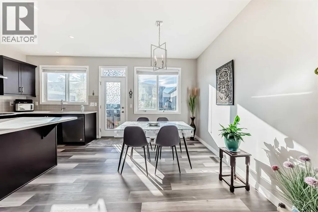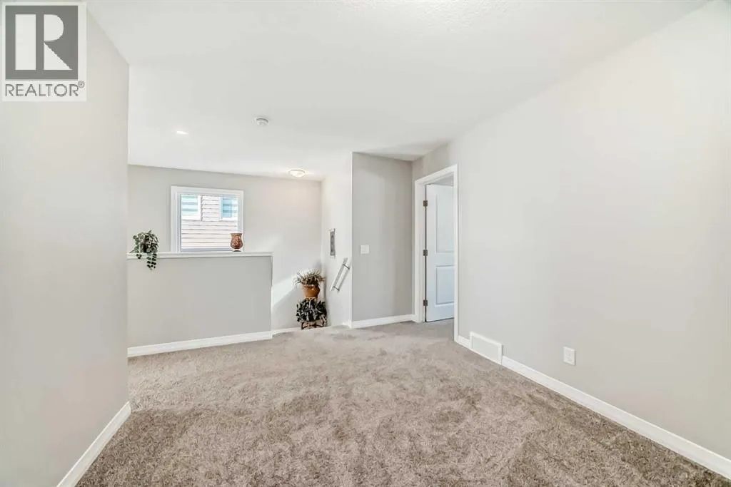 Beautifully maintained semi-detached home in the desirable community of Kings Heights, offering the perfect blend of style, comfort and convenience. Featuring an OPEN-CONCEPT MAIN FLOOR with a bright living room, spacious dining area, and stylish kitchen complete with quartz countertops, breakfast bar, espresso cabinetry and laminate flooring throughout. The dining area opens onto a LARGE WEST-FACING DECK, perfect for summer barbeques and evening sunsets.Upstairs youâll find 3 generously sized bedrooms, including a private primary retreat with a 3-piece ensuite. A versatile bonus room adds space for movie nights or a home office, while the UPPER-LEVEL LAUNDRY and additional 4-piece bathroom make everyday living a breeze. The undeveloped basement awaits your personal touch.The backyard is your own private oasis. Enjoy a FULLY-FENCED, LANDSCAPED, LOW MAINTENANCE BACKYARD surrounded by trees. Additional features of the home include CUSTOM BLINDS THROUGHOUT, SOLAR PANELS, WATER SOFTENER, lots of windows and a SINGLE-ATTACHED GARAGE.Kingâs Heights is a vibrant, family-oriented neighborhood offering endless conveniences. The community offers pathways, playgrounds, dog parks and tranquil ponds. The recently completed 40 Avenue overpass provides direct access to Deerfoot Trail, making commuting easier than ever. Amenities like shopping, dining, and services in Airdrie as well as Cross Iron Mills & Costco are in close proximity. Walking distance to schools. Donât miss this opportunity to get into a move-in ready home. Book your viewing appointment today! (id:27476)