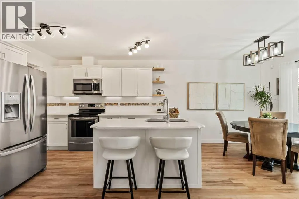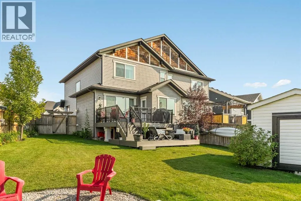 OPEN HOUSE- SATURDAY, NOV 1, 12-3PM. Beautifully renovated with timeless style and a thoughtful layout, this Kings Heights home enjoys one of the largest pie lots in the community backing directly onto a greenspace and pathway. A quaint front porch welcomes guests while offering a quiet spot to enjoy morning coffee. Inside, the open concept main floor combines function and elegance with a neutral colour palette, durable luxury vinyl plank flooring and abundant natural light. The kitchen inspires culinary creativity with crisp white cabinetry, stainless steel appliances, a centre island for casual meals, a walk-through pantry for easy grocery unloading and a coffee bar for everyday convenience. The adjacent dining area with designer lighting flows seamlessly into the inviting living room where a gas fireplace adds cozy ambience. A powder room with a stylish feature wall completes the level. Upstairs, the primary retreat impresses with generous proportions, a walk-in closet and a private 4 pc ensuite. Two additional bedrooms are both bright and spacious, paired with a 4 pc main bath. Laundry on this level adds everyday ease. The finished basement continues the homeâs stylish design, offering a versatile rec room with space for both cozy family movie nights and lively game evenings. A well-appointed wet bar makes entertaining effortless and keeps snacks and drinks close at hand. Also on this level is a generously sized 4th bedroom creating a private retreat for guests, while the beautifully updated 4 pc bathroom showcases a floor to ceiling tile feature wall and modern fixtures that add spa-like sophistication. Outdoor living reaches new heights thanks to the massive pie-shaped yard. A 2-tiered deck provides space to unwind, dine al fresco and barbeque, while a separate firepit area invites long summer evenings under the stars. Lush landscaping, expansive lawn space for kids and pets to play, a storage shed and built-in irrigation further elevate this private outdoor e scape. Completing the property is a front-attached garage with additional driveway parking. Unbeatably located in a family-friendly and highly walkable neighbourhood, this home is surrounded by schools, playgrounds, parks, fountains, pathways and even a timber amphitheatre. Shopping, dining and quick access to the QEII for commuting are only minutes away. This home blends lifestyle, comfort and location into one complete package! (id:27476)