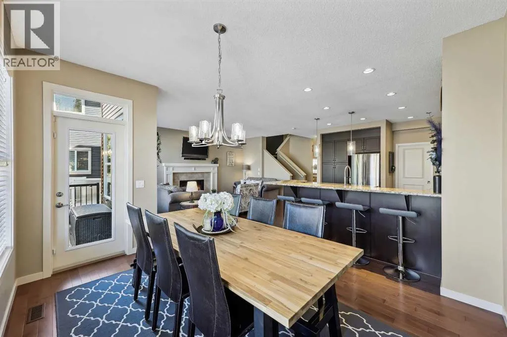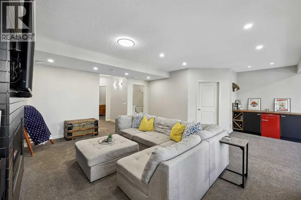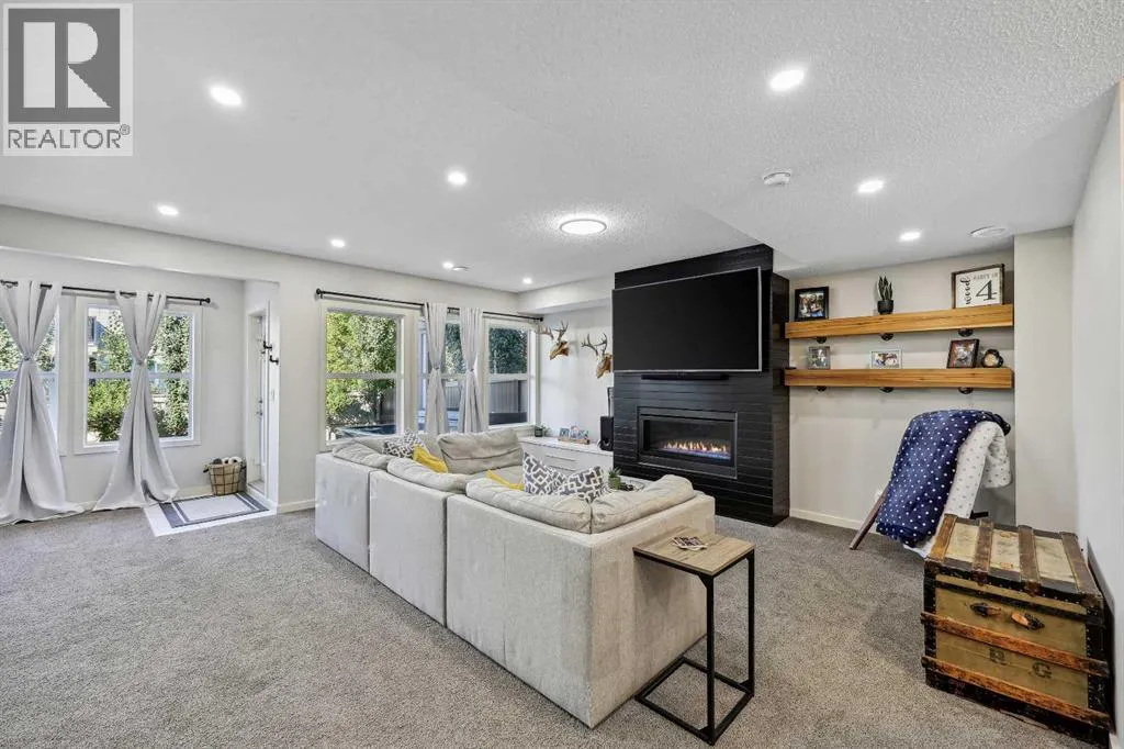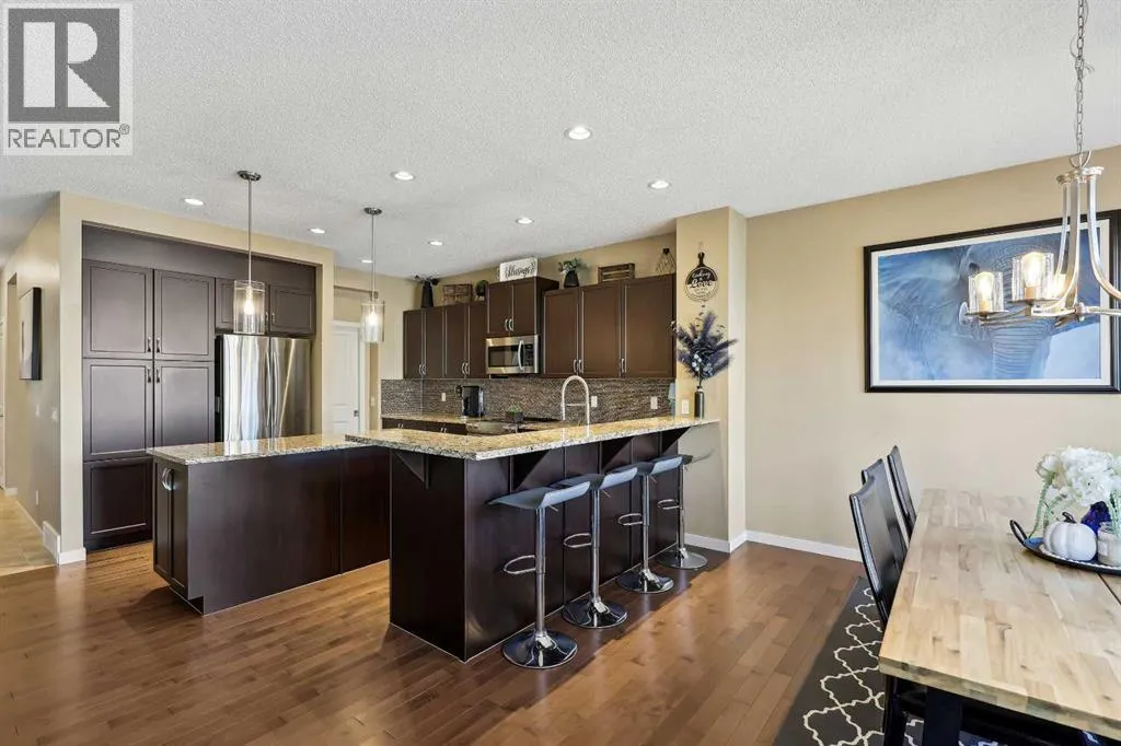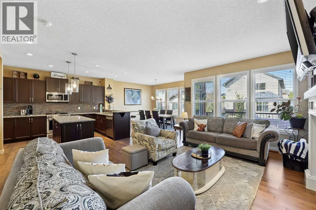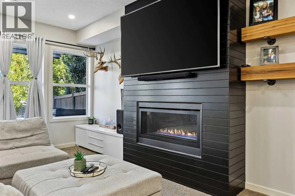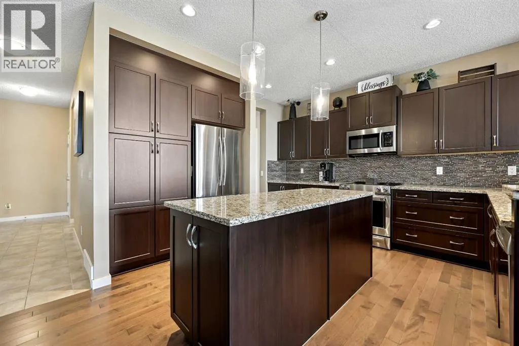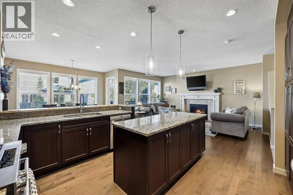 Nestled in the serene community of King Heights, this FULLY FINISHED WALK-OUT home on a quiet CUL-DE-SAC offers both charm and modern convenience. With excellent curb appeal and a large covered front porch, this home welcomes you with a spacious foyer featuring a coat closet and soaring 9' ceilings.The main floor is an entertainer's dream with an open floor plan that boasts plenty of windows, flooding the space with natural light. The baker's dream kitchen is the heart of the home, featuring a huge centre island with ample cupboard space, perfect for rolling out Christmas cookies or pizza dough. An additional raised island with an eating bar, floor-to-ceiling cabinet wall, and abundant counter space make this kitchen both beautiful and functional. Stainless steel appliances, including a newer Frigidaire stove and Bosch dishwasher, complement the space. A walk-through pantry leads to a practical boot room with a broom closet, coat closet, and direct access to the double attached garage with over an sized door. The large dining area is spacious enough to host the entire family during the holidays, with room for 10+ guests. From here, step out onto the quaint rear upper deck, complete with a gas hook-up for a fire table and/or BBQ, perfect for outdoor entertaining.The inviting living room features a modern GAS fireplace with a sleek mantel, creating a cozy atmosphere. The upper level hosts a versatile central bonus room, an office/flex space, a bright and spacious laundry room with shelving, two hallway linen closets, a 4-piece bath with its own linen closet, and two generously sized bedrooms, both with built-in closet organizers. The large primary bedroom is a true retreat, offering his AND hers ALK-IN closets, and a luxurious 5-piece ensuite with a deep soaker tub, walk-in shower, dual sinks, and plenty of counter and cupboard space.The fully finished WALK-OUT basement adds even more living space, including a fourth bedroom with a large closet, a beautifully finis hed 3-piece bath with a floor-to-ceiling tiled walk-in shower and IN-FLOOR HEATING, a family/theater room featuring a shiplap wall with a linear gas fireplace, custom cedar shelving, and a flex/games space. A dry bar with a beverage fridge and upgraded lighting makes this space perfect for gatherings. Step outside to the rear yard, complete with a covered lower deck and mature landscaping, creating a private oasis. The basement also offers a mechanical room with storage and ample additional storage space throughout.With a new roof in 2022, Hunter Douglas Blinds through main and upper floors, and CENTRAL A/C, this turn-key home is just steps from ponds and walking paths, within walking distance to schools and all amenities, including groceries, medical services, and restaurants. Enjoy easy highway access and a 15-minute drive to YYC Airport. Surrounded by great neighbours, this home is ready for you to move in and enjoy! (id:27476)