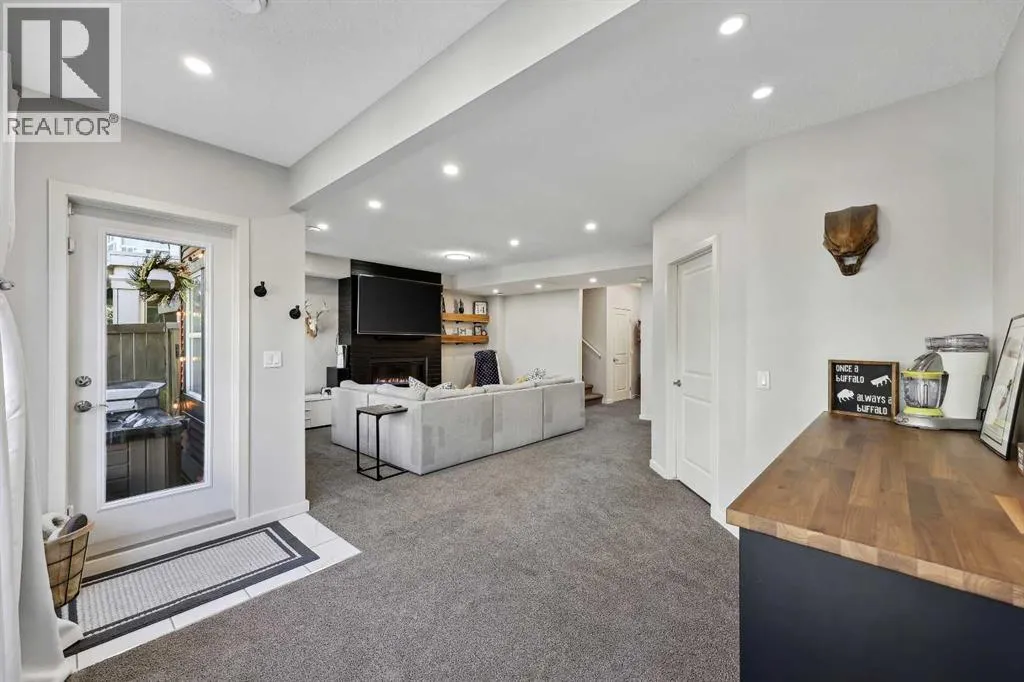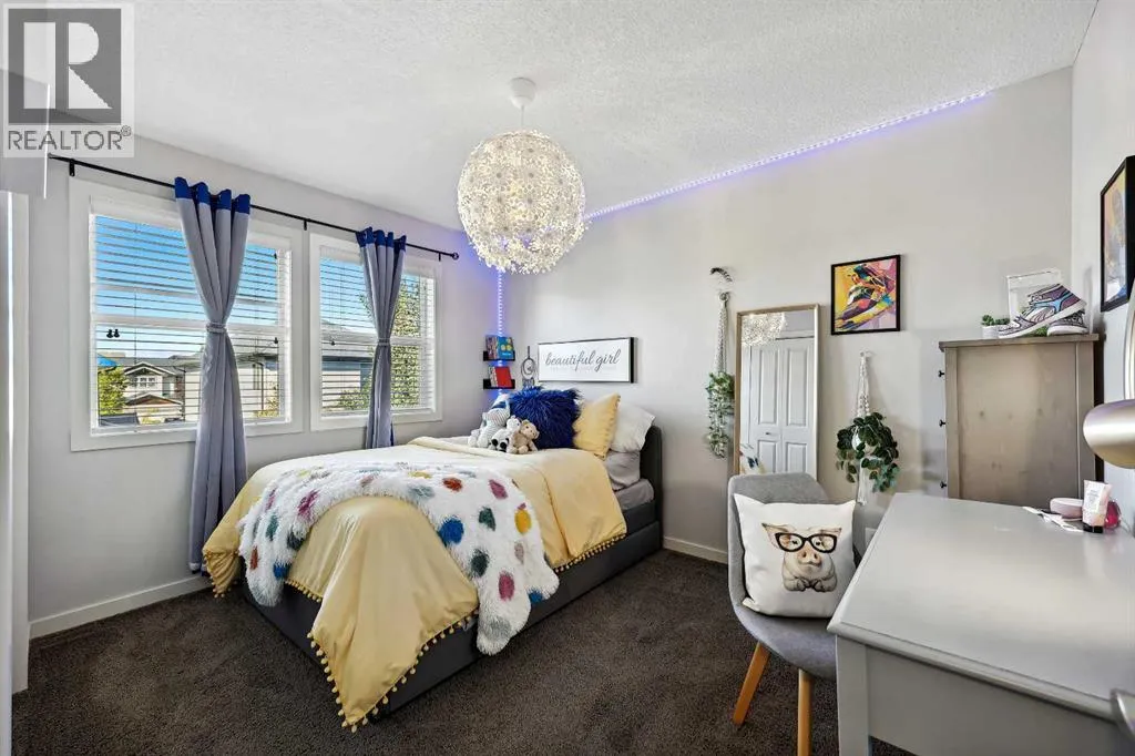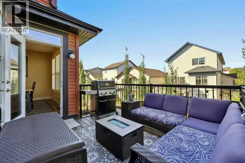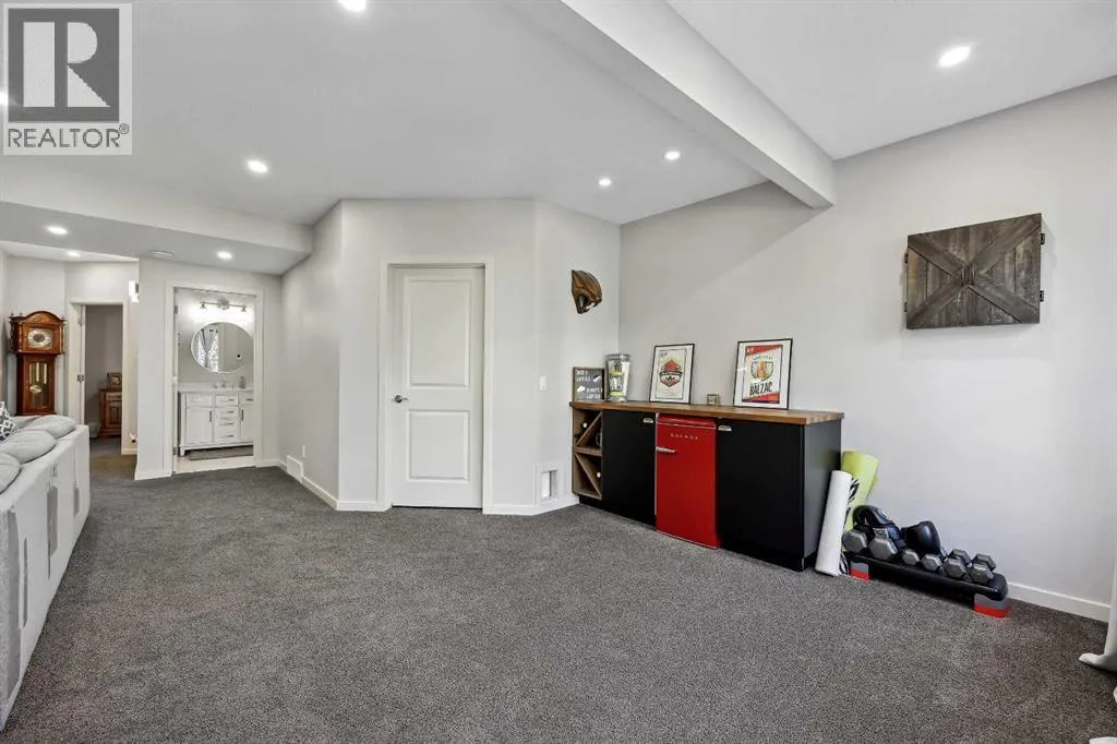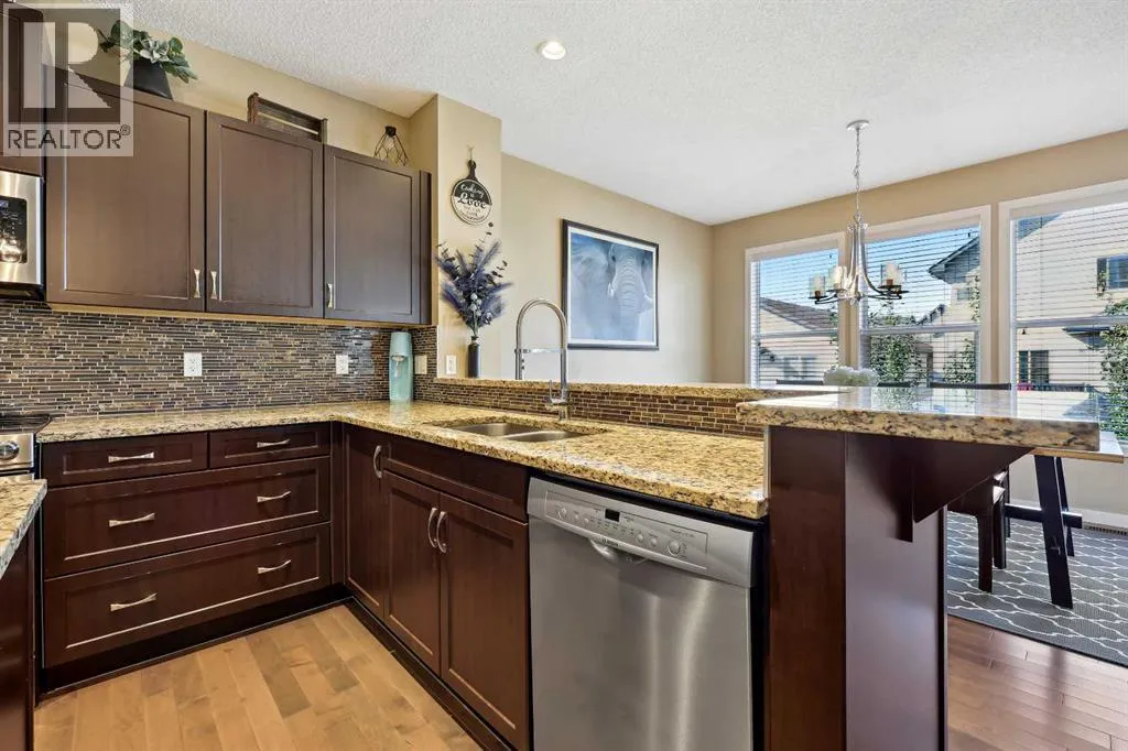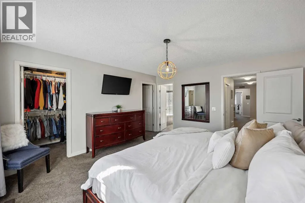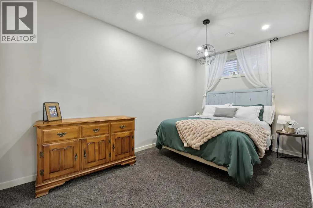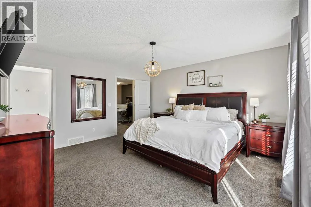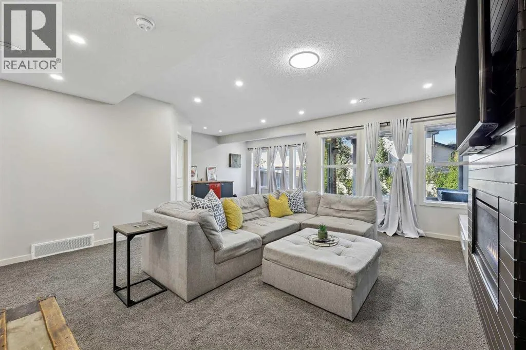 Nestled in the serene community of King Heights, this FULLY FINISHED WALK-OUT home on a quiet CUL-DE-SAC offers both charm and modern convenience. With excellent curb appeal and a large covered front porch, this home welcomes you with a spacious foyer featuring a coat closet and soaring 9' ceilings.The main floor is an entertainer's dream with an open floor plan that boasts plenty of windows, flooding the space with natural light. The baker's dream kitchen is the heart of the home, featuring a huge centre island with ample cupboard space, perfect for rolling out Christmas cookies or pizza dough. An additional raised island with an eating bar, floor-to-ceiling cabinet wall, and abundant counter space make this kitchen both beautiful and functional. Stainless steel appliances, including a newer Frigidaire stove and Bosch dishwasher, complement the space. A walk-through pantry leads to a practical boot room with a broom closet, coat closet, and direct access to the double attached garage with over an sized door. The large dining area is spacious enough to host the entire family during the holidays, with room for 10+ guests. From here, step out onto the quaint rear upper deck, complete with a gas hook-up for a fire table and/or BBQ, perfect for outdoor entertaining.The inviting living room features a modern GAS fireplace with a sleek mantel, creating a cozy atmosphere. The upper level hosts a versatile central bonus room, an office/flex space, a bright and spacious laundry room with shelving, two hallway linen closets, a 4-piece bath with its own linen closet, and two generously sized bedrooms, both with built-in closet organizers. The large primary bedroom is a true retreat, offering his AND hers ALK-IN closets, and a luxurious 5-piece ensuite with a deep soaker tub, walk-in shower, dual sinks, and plenty of counter and cupboard space.The fully finished WALK-OUT basement adds even more living space, including a fourth bedroom with a large closet, a beautifully finis hed 3-piece bath with a floor-to-ceiling tiled walk-in shower and IN-FLOOR HEATING, a family/theater room featuring a shiplap wall with a linear gas fireplace, custom cedar shelving, and a flex/games space. A dry bar with a beverage fridge and upgraded lighting makes this space perfect for gatherings. Step outside to the rear yard, complete with a covered lower deck and mature landscaping, creating a private oasis. The basement also offers a mechanical room with storage and ample additional storage space throughout.With a new roof in 2022, Hunter Douglas Blinds through main and upper floors, and CENTRAL A/C, this turn-key home is just steps from ponds and walking paths, within walking distance to schools and all amenities, including groceries, medical services, and restaurants. Enjoy easy highway access and a 15-minute drive to YYC Airport. Surrounded by great neighbours, this home is ready for you to move in and enjoy! (id:27476)
