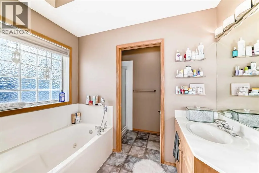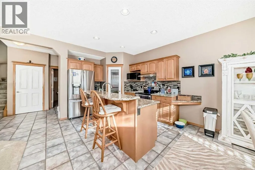 Incredible 2 storey in the family friendly neighbourhood of Thorburn. Highly upgraded and lovingly maintained this fully finished stunner will impress. The main floor is wide open with the kitchen overlooking the living & dining rooms plus the backyard.. There is loads of counterspace and cabinets plus there is a handy corner pantry. The SS appliances, the tiled backsplash, the granite countertops are all newer as is the carpeting throughout. The living room is quite cozy with custom builtin bookshelves and a gas burning fireplace with nice large mantle & tiled surround. The dining area is also a good size~ it will hold any size ding room set. Off the dining room you will find the walkout to the backyard~ a wonderfully warm south exposure with loads of privacy! There is a handy stone RV parking pad, tons of trees & shrubs, a corner pond feature and a large deck which is great for entertaining. On the way to the double attached garage you find the main floor laundry with extra storage & cabinets and a 2 pce powder room. The garage has been updated with a new door, epoxy and Heated Floors plus builtin shelves. Upstairs you will love the Primary bedroom as it is bright, warm and large! It has a walkin closet and a full 4 pce ensuite with deep soaker tub and standup shower. The two spare bedrroms are also a good size and share a full 4 pce main bathroom. Loads of windows and really high ceilings provide an abundance of natural light throughout this home. The lower level is fully finished with the 4th large bedroom, a full 3 pce bathroom that boasts heated floors and a massive rec room that is a great retreat for entertaining friends or maybe a teenagers space! What a great family home in Thorburn~ easy access to Deerfoot, easy walk to all the schools, parks and playgrounds plus all the shopping you could need. (id:27476)