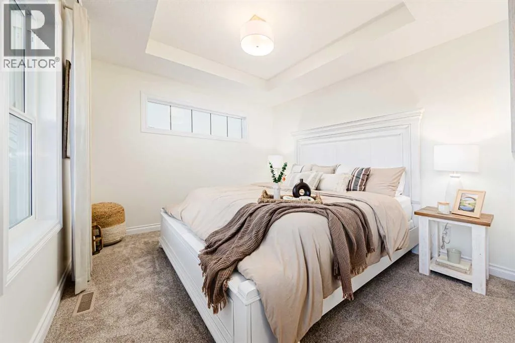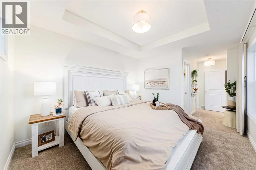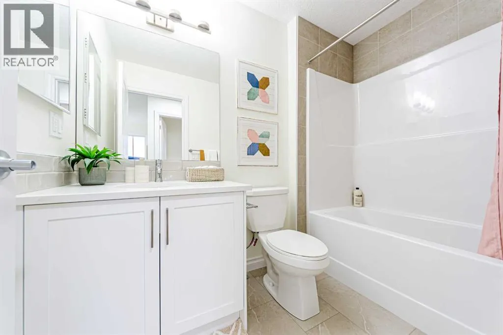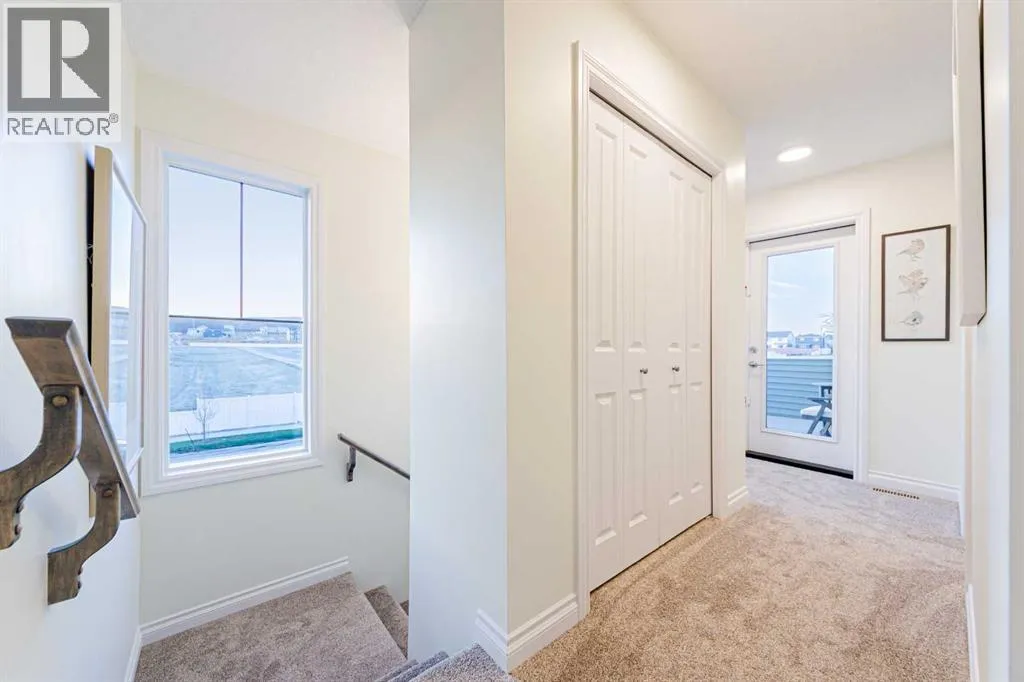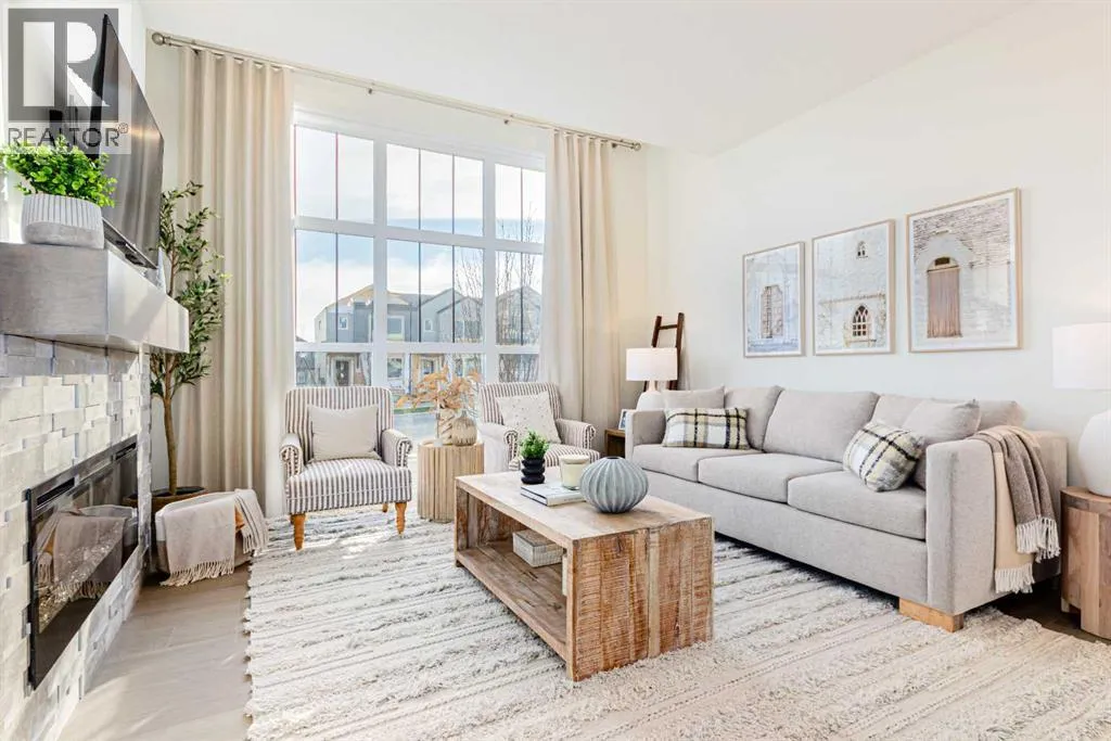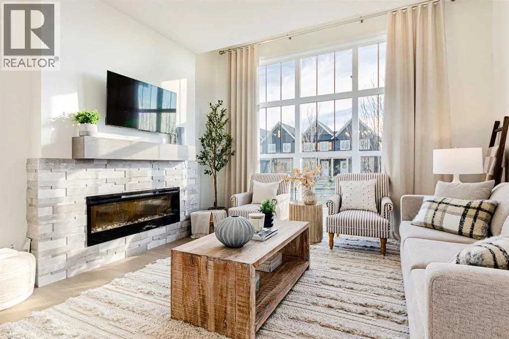 Welcome to the Jasper by Genesis Builders, a beautifully designed townhome with no condo fees in the heart of Bayview. Offering 1,354 sq. ft. of above-grade living space, this home combines modern finishes, functional design, and unique features like a rooftop patio and a 20' x 22' attached double garage. The basement includes 9' ceilings and is ready for your ideas. The main floor offers open-concept living with an inviting layout thatâs both bright and practical. The kitchen is finished with stone countertops, stainless steel appliances, full-height cabinetry, and a large island with seating, flowing into the dining area and living room. A feature fireplace adds warmth and style, making the space perfect for both entertaining and everyday living. A half bath, storage, and direct garage access complete this level. Upstairs, the primary suite includes a walk-in closet and private ensuite with a large tiled shower. Two additional bedrooms, a 4-piece bath, and a conveniently located laundry space complete the upper floor. The rooftop patio above the garage provides a private outdoor retreat for relaxing or entertaining. Bayview is one of Airdrieâs most exciting communities, with pathways, playgrounds, an outdoor amphitheatre, basketball courts, and tennis courts that convert to a skating rink in the winter. With easy access to schools, parks, and the canals, Bayview offers both lifestyle and convenience. *Photos are representative colors and finishes may vary. Area size was calculated by applying the RMS to the blueprints provided by the builder. Similar Jasper model is currently available at 2150 Bayview Drive. Taxes to be assessed. (id:27476)