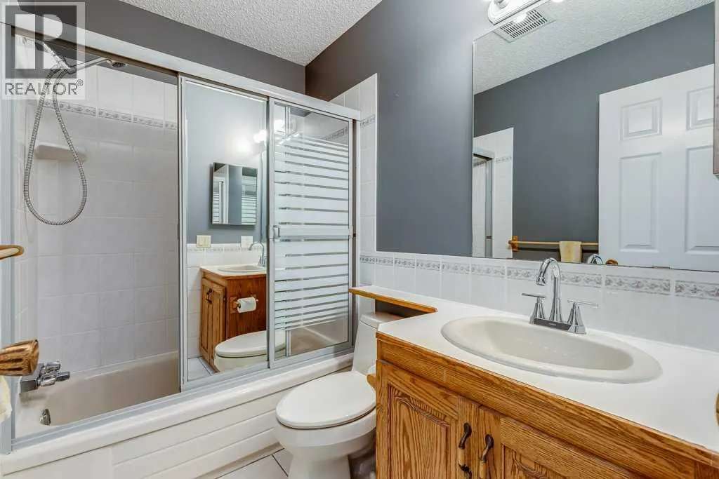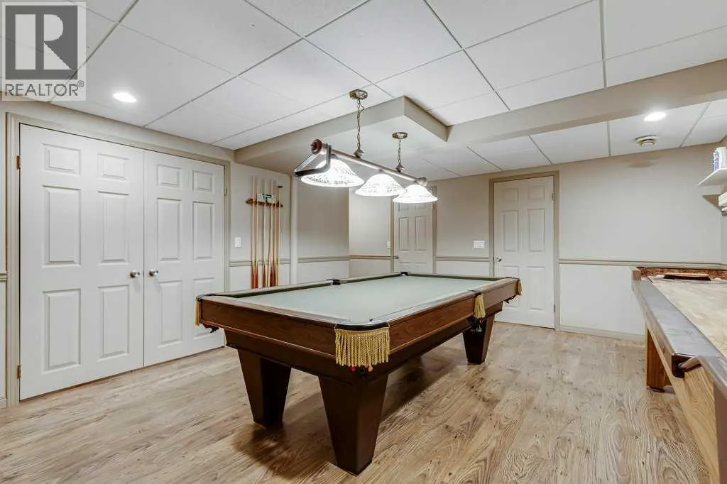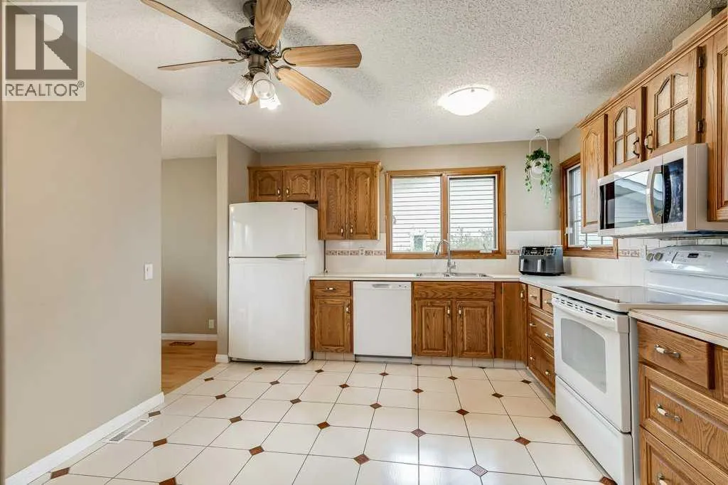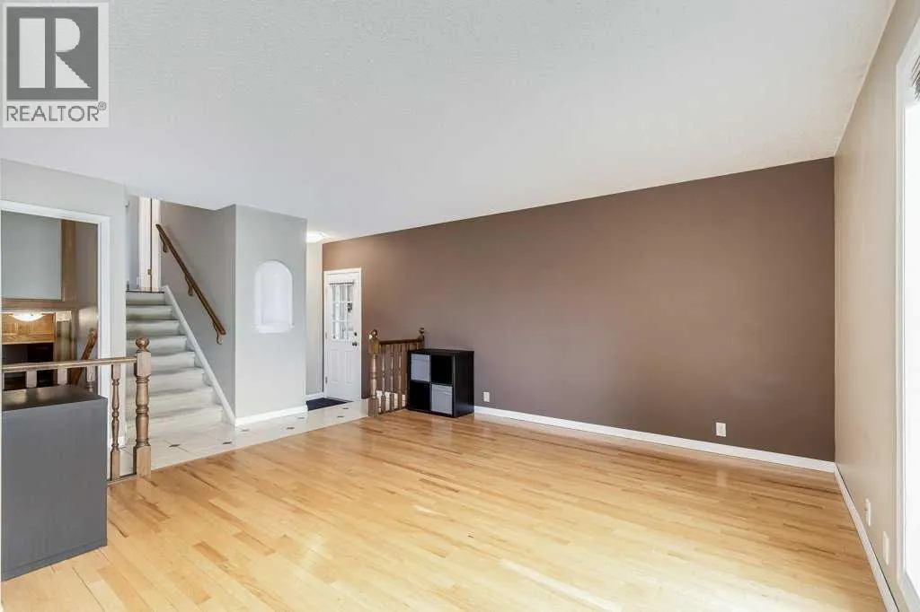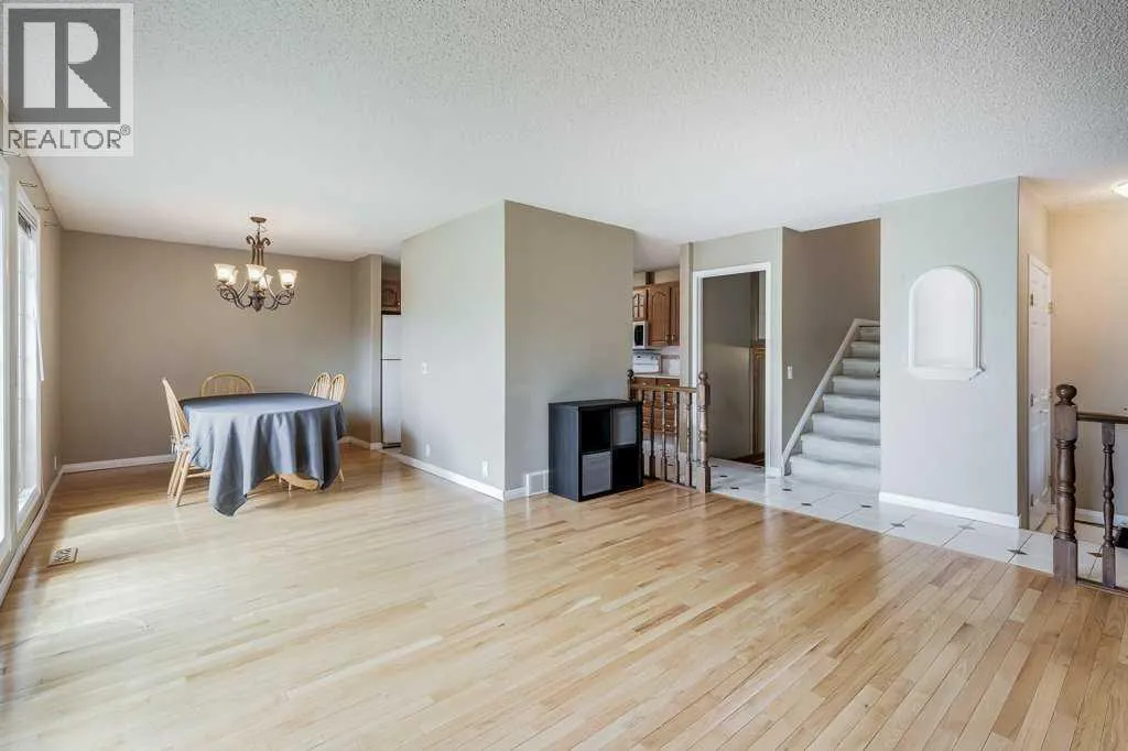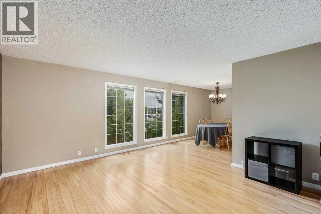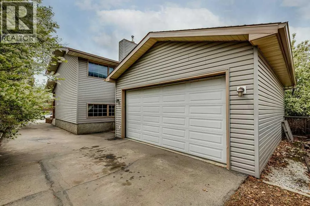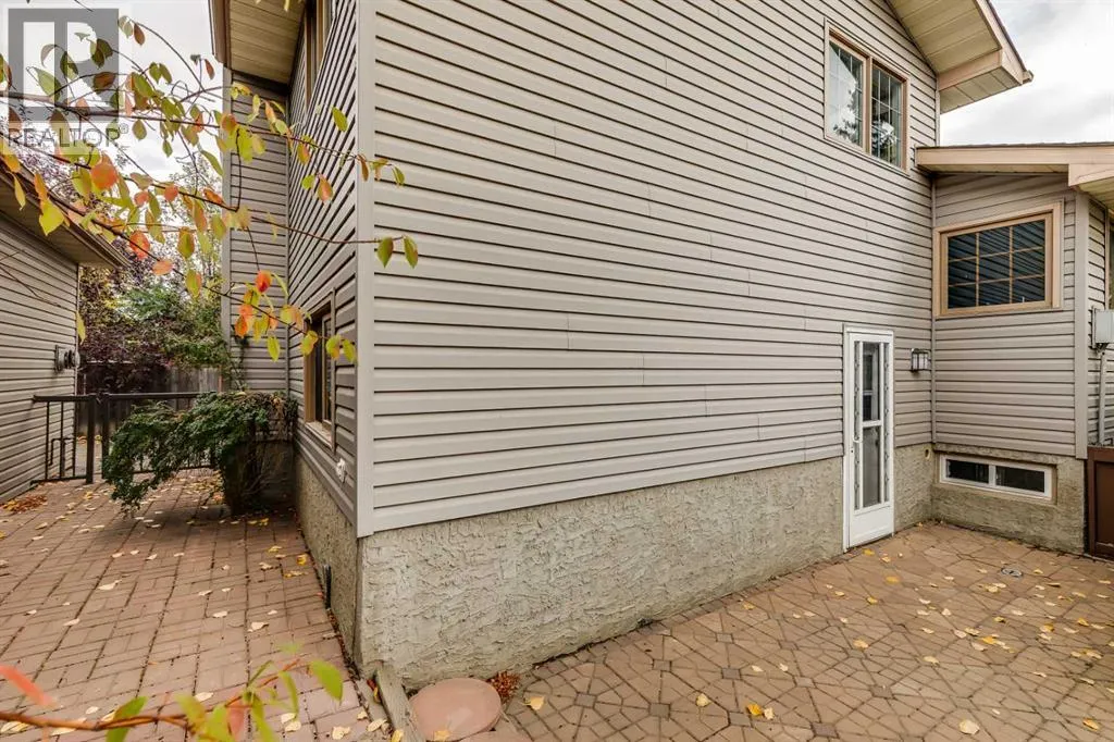 Incredibly located just 2 doors from Nose Creek Park encouraging tranquil walks on the expansive pathway that winds alongside the creek. Want something more urban? This unsurpassable location has the best of both worlds! Walk out your front door in the other direction and bam youâre on Main Street with endless shops, restaurants, services and amenities. Then come home to a private, extremely quiet sanctuary with a heated garage! This charming home is well maintained with many upgrades already completed. The roof shingles, vinyl siding, eaves troughs and downspouts on both the house and garage were replaced in 2015 plus extra insulation was added. New natural gas hot water heater (2018), Telus internet Fibre Drop installed (2019), 2 bathroom fans replaced (2019/2021) and the upper level carpet was replaced with durable laminate in 2 bedrooms and the hallway (2023). Natural light streams into the living and dining rooms from extra south-facing windows illuminating the hardwood floors and creating a bright and airy gathering and entertaining space. The kitchen is well laid out with a plethora of cabinets and drawers plus corner windows for seemingly infinite sunlight. Retreat at the end of the day to the upper level primary bedroom with its own private ensuite, no need to share with the kids! Both additional bedrooms are spacious with easy access to the 4-piece bathroom. Put your feet up and relax in front of the floor-to-ceiling brick encased fireplace in the family room. A separate flex area is great for a home office or study space. French doors lead to the backyard oasis promoting a seamless indoor/outdoor lifestyle. And there is still a fully finished basement with a huge rec room and included billiard table and shuffleboard for friendly games nights with friends and family. Enjoy casual barbeques and time spent unwinding in the backyard privately nestled behind the HEATED double detached garage with an extra long drive for loads of additional parking or an RV. St eps away from the nearly completed Multi-Use and Library Facility. Donât miss your chance at this solid home in an unbeatable location! (id:27476)