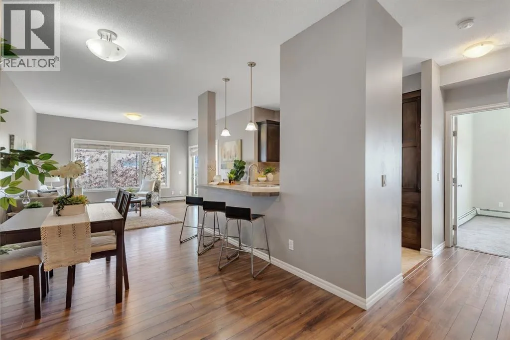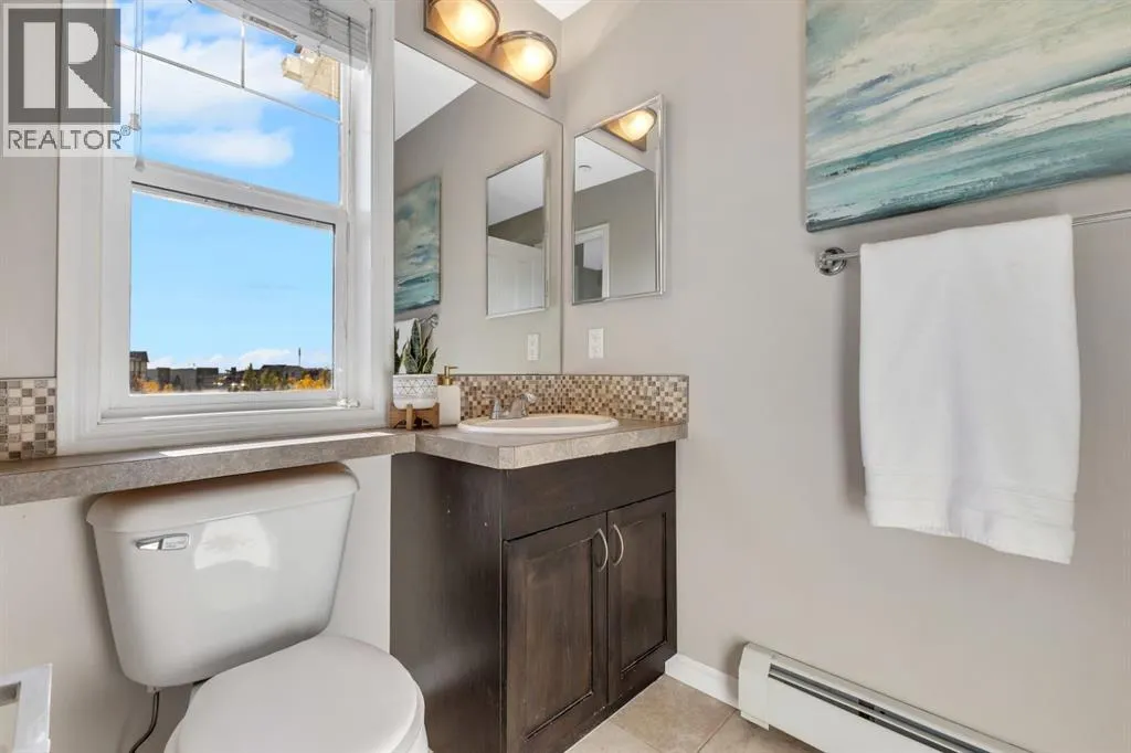Welcome to 4 Kingsland Close SE, a bright and spacious top-floor corner unit in the highly desirable community of King Heights, Airdrie. Perfect for first-time home buyers or savvy investors, this home offers exceptional comfort, privacy, and convenience.Step inside to discover a well-designed open-concept layout featuring a modern kitchen with plenty of cabinetry, stainless steel appliances, and a breakfast bar that flows seamlessly into the dining and living areas â ideal for entertaining or relaxing after a long day.The primary bedroom includes a private ensuite bathroom, while the second bedroom and full guest bath provide flexibility for a roommate, home office, or visiting family.Enjoy peace and quiet with no neighbours above or beside you, and take advantage of your private balcony with a natural gas BBQ hookup, perfect for year-round outdoor grilling. Additional conveniences include an assigned outdoor parking stall and a separate storage unit in the basement, providing ample space for all your extras.Situated in a prime location, youâre just minutes from Kingsview Market, Sierra Springs Shopping Centre, restaurants, parks, schools, and have quick access to the QEII Highway for an easy commute to Calgary.Whether youâre looking for a low-maintenance lifestyle or a turnkey investment property, this home truly checks all the boxes! (id:27476)