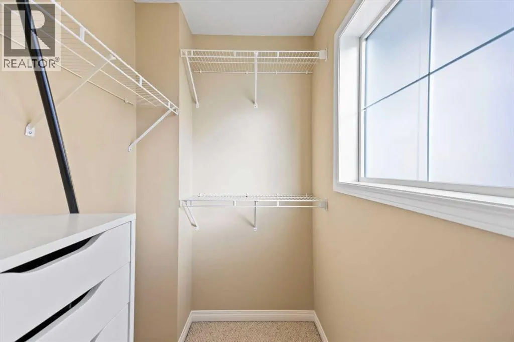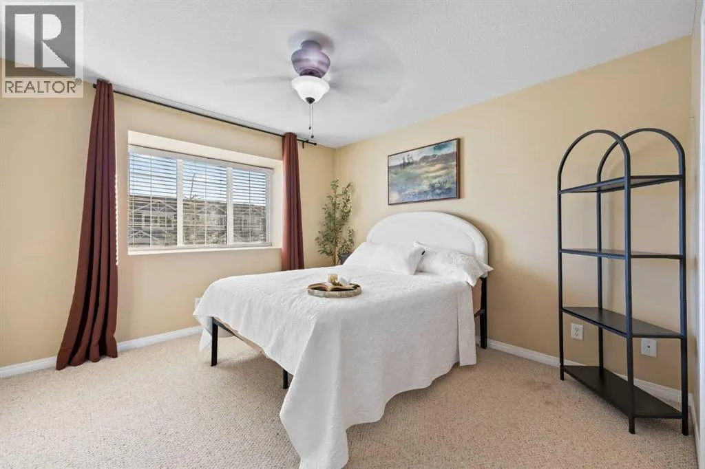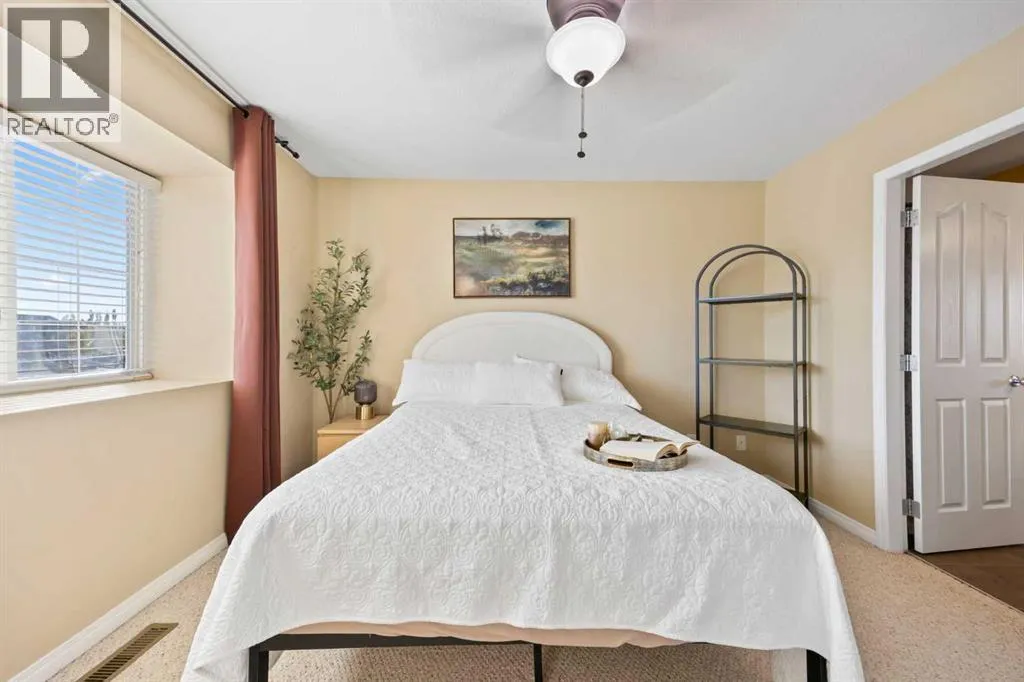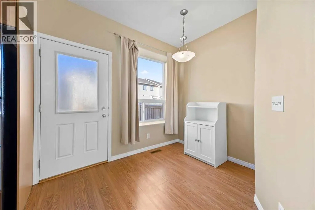 15k Price Reduction!! Welcome to this charming end unit townhouse nestled in the sought-after community of Luxstone in Airdrie. This move-in ready home is perfect for first time buyers, young families, or savvy investors, offering incredible value and thoughtful design throughout. Step onto the welcoming front porch, perfect for morning coffee or relaxing evenings, and into a bright, open concept main floor featuring durable laminate flooring throughout. The spacious living room is bathed in natural light from a large south facing bay window, creating a warm and inviting atmosphere. Flowing seamlessly from the living space is a formal dining area, comfortably fitting a table for four with additional room for a coffee station or storage hutch. At the back of the home, you'll find a functional U-shaped kitchen complete with plenty of counter space, a corner walk-in pantry, and an adjacent breakfast nook, perfect for casual meals or working from home. From here you'll have easy access to the backyard which opens directly onto a peaceful communal green space. Upstairs, the spacious primary bedroom features a bright walk-in closet with a window and direct access via a cheater door to the 4-piece bathroom. Two more well-sized bedrooms and a linen closet complete the upper level. The unfinished basement provides ample opportunity to develop a large rec room, home gym, or office space giving you versatility depending on your lifestyle! Additional highlights include two side-by-side parking stalls right out front and a well-managed complex thatâs just steps from a playground and within walking distance to a convenient plaza with a gas station, 7-Eleven, medical clinic, pharmacy, and multiple food options. Luxstone is a family-friendly, well-established community known for its walkability, parks, and proximity to schools (W.H Croxford High School, St Martin de Porres High School, Nose Creek Elementary School) and shopping. Living in Airdrie means enjoying small town charm wi th big city convenience, just minutes from Calgary and the airport, yet offering a quieter, more relaxed lifestyle. (id:27476)