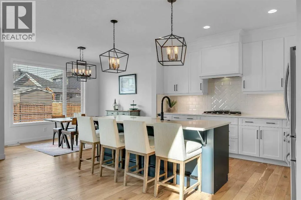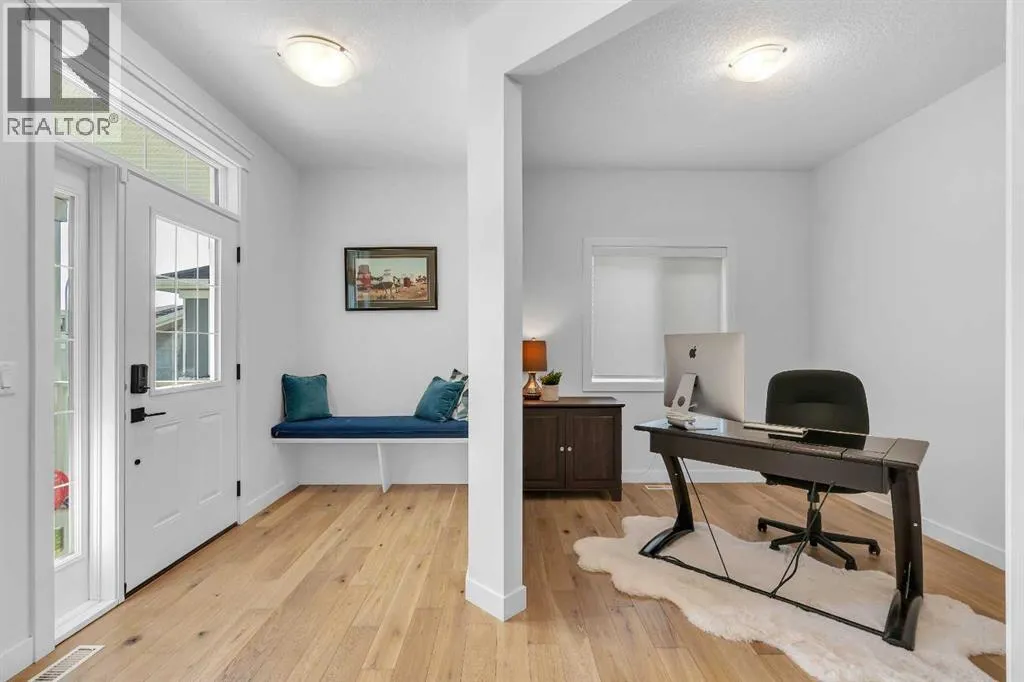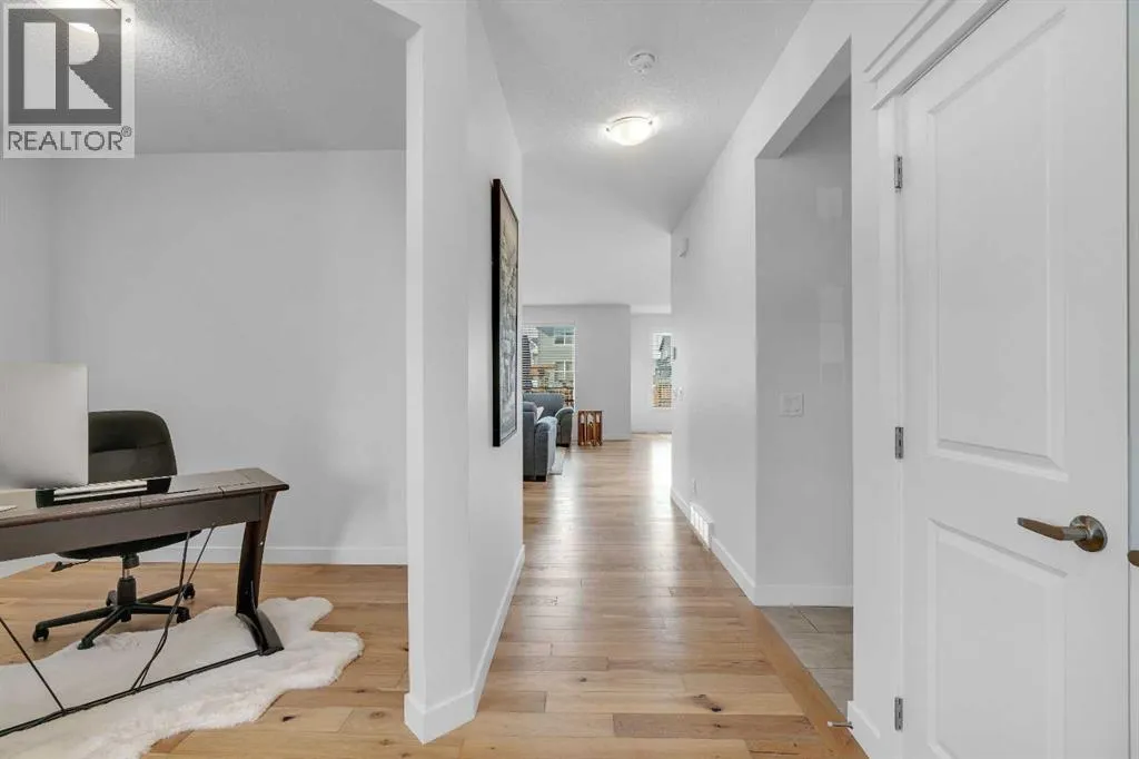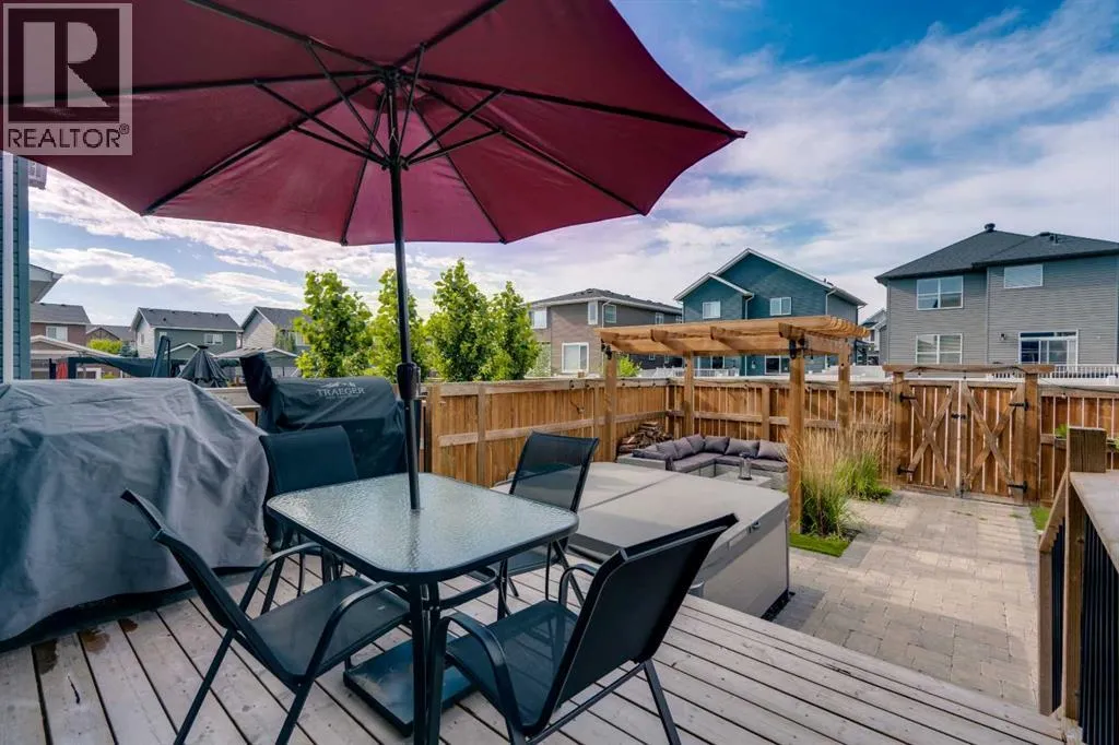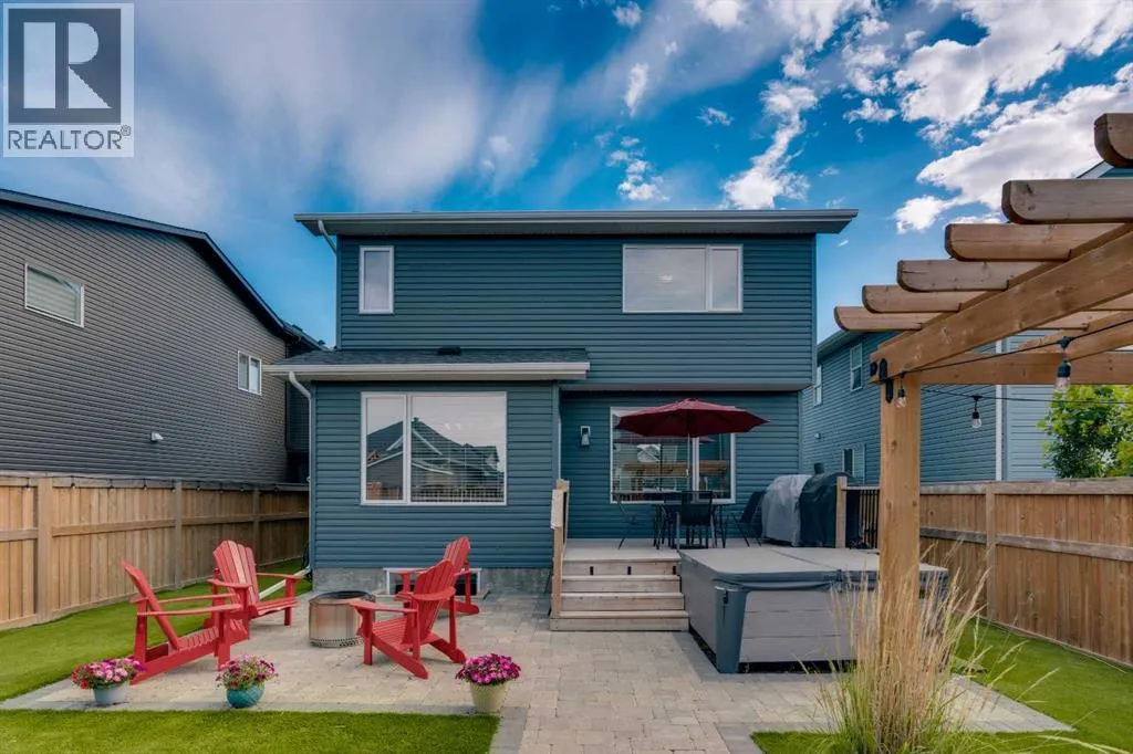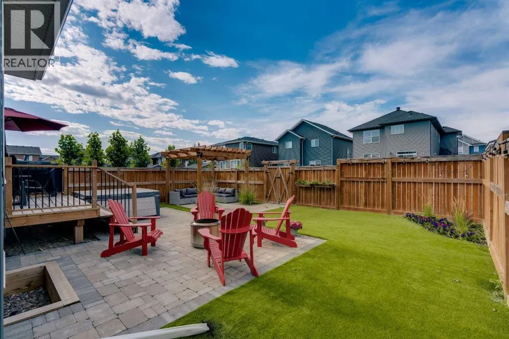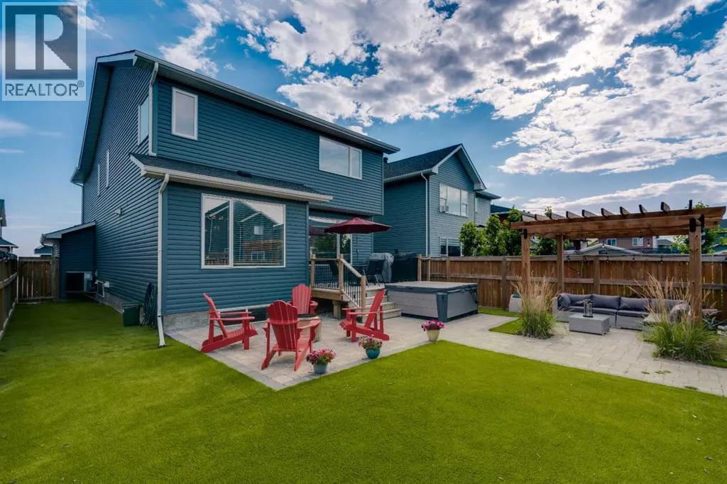 OPEN HOUSE - Saturday November 15, 1:00-3:00 - Step into this beautifully maintained home in Ravenswood, Airdrie, where functionality and comfort come together in over 3,400 sq ft of usable space! From the moment you arrive, the front-facing double attached garage and covered porch set a warm and functional tone. Step inside to a spacious entryway with high ceilings and a warm welcome to the home. Just off the front hall, a private office sits in a quiet alcoveâideal for working from home or managing daily life. Moving further in, the open-concept main floor is bright and inviting, with engineered hardwood flooring running throughout. The living room features a central fireplace with decorative brickwork, offering both warmth and visual appeal, while large windows flood the dining space with natural light and offer clear views of the landscaped backyard. The kitchen is a true highlight, with granite countertops, a large island with seating for entertaining, under-cabinet lighting, updated appliances, and custom ShelfGenie pull-out drawers in every cabinet for effortless organization. A walk-in pantry sits just steps away, keeping everything within easy reach.Upstairs, youâll find a spacious primary retreat complete with a luxurious ensuite featuring a deep soaker tub, tiled walk-in shower, double vanities, and a generous walk-in closet. A large bonus room provides versatile space for relaxing, entertaining, or play. Two additional bedrooms share a stylish 5-piece bathroom with dual sinks and a tub/shower comboâperfect for family or guests. The fully finished basement extends your living space even further with plush carpeting, a wide-open rec area, a built-in bar, an additional room that can serve as a fourth bedroom, gym, or hobby space, and a full bathroom for added convenience. Step outside to a backyard built for enjoyment, with thoughtful landscaping, a pergola providing a designated outdoor lounge area, an included hot tub, and direct access to the paved all ey. Artificial turf in the front and back yard provides convenience and easy maintenance in every season! And yes - central air conditioning keeps the home comfortable year-round.Situated in Ravenswood, this home benefits from a strong sense of community, access to excellent schools, nearby parks and green spaces, and an easy commute to Calgary. Whether you're raising a family or simply looking for a well-connected neighbourhood with modern amenities, Ravenswood offers the perfect place to call home. (id:27476)