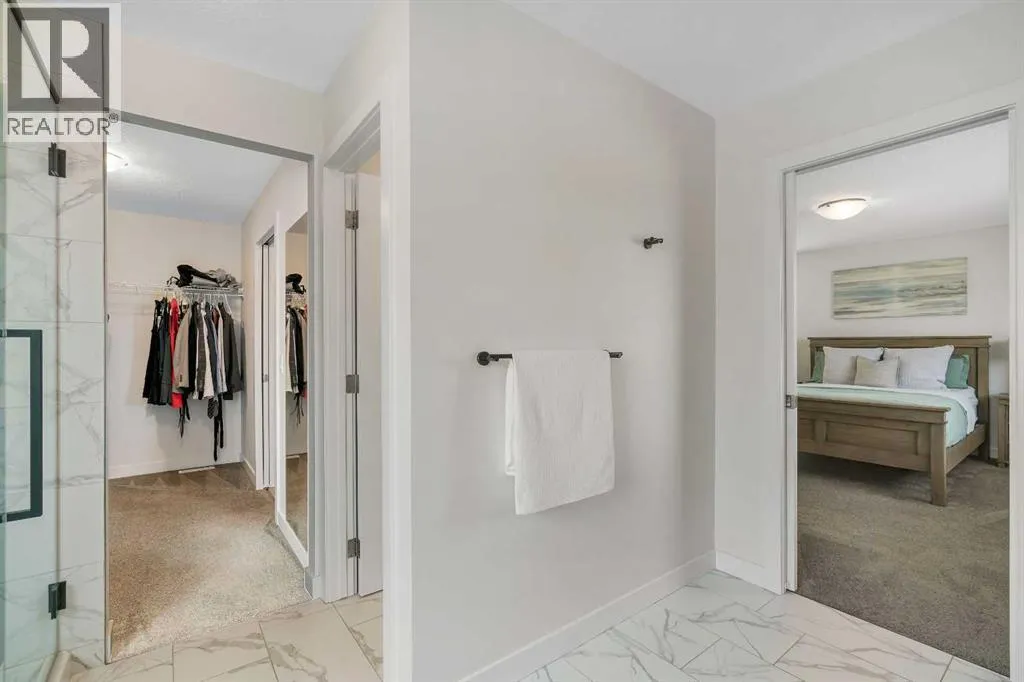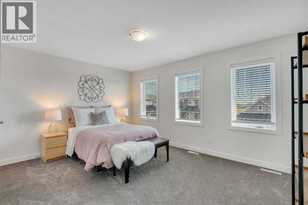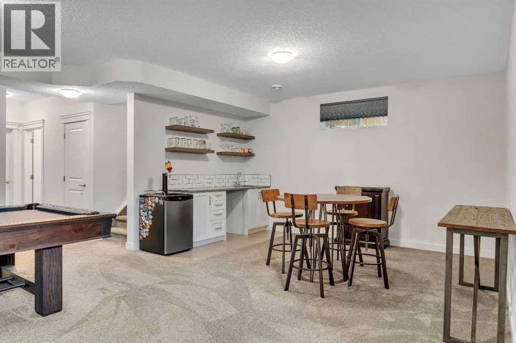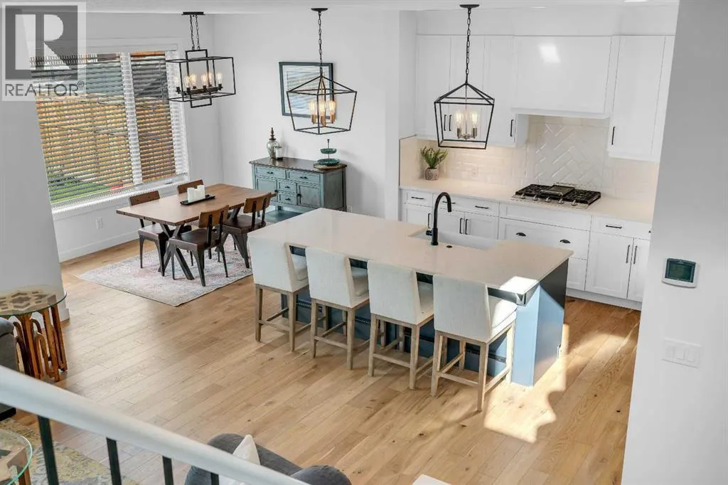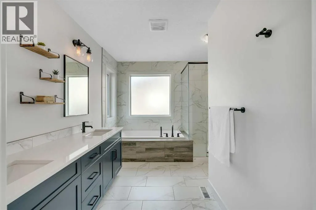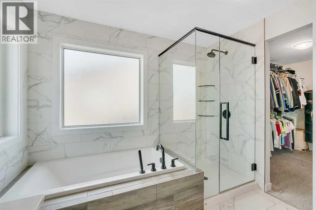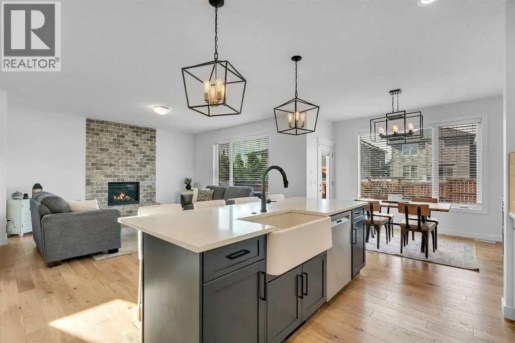 OPEN HOUSE - Saturday November 15, 1:00-3:00 - Step into this beautifully maintained home in Ravenswood, Airdrie, where functionality and comfort come together in over 3,400 sq ft of usable space! From the moment you arrive, the front-facing double attached garage and covered porch set a warm and functional tone. Step inside to a spacious entryway with high ceilings and a warm welcome to the home. Just off the front hall, a private office sits in a quiet alcoveâideal for working from home or managing daily life. Moving further in, the open-concept main floor is bright and inviting, with engineered hardwood flooring running throughout. The living room features a central fireplace with decorative brickwork, offering both warmth and visual appeal, while large windows flood the dining space with natural light and offer clear views of the landscaped backyard. The kitchen is a true highlight, with granite countertops, a large island with seating for entertaining, under-cabinet lighting, updated appliances, and custom ShelfGenie pull-out drawers in every cabinet for effortless organization. A walk-in pantry sits just steps away, keeping everything within easy reach.Upstairs, youâll find a spacious primary retreat complete with a luxurious ensuite featuring a deep soaker tub, tiled walk-in shower, double vanities, and a generous walk-in closet. A large bonus room provides versatile space for relaxing, entertaining, or play. Two additional bedrooms share a stylish 5-piece bathroom with dual sinks and a tub/shower comboâperfect for family or guests. The fully finished basement extends your living space even further with plush carpeting, a wide-open rec area, a built-in bar, an additional room that can serve as a fourth bedroom, gym, or hobby space, and a full bathroom for added convenience. Step outside to a backyard built for enjoyment, with thoughtful landscaping, a pergola providing a designated outdoor lounge area, an included hot tub, and direct access to the paved all ey. Artificial turf in the front and back yard provides convenience and easy maintenance in every season! And yes - central air conditioning keeps the home comfortable year-round.Situated in Ravenswood, this home benefits from a strong sense of community, access to excellent schools, nearby parks and green spaces, and an easy commute to Calgary. Whether you're raising a family or simply looking for a well-connected neighbourhood with modern amenities, Ravenswood offers the perfect place to call home. (id:27476)