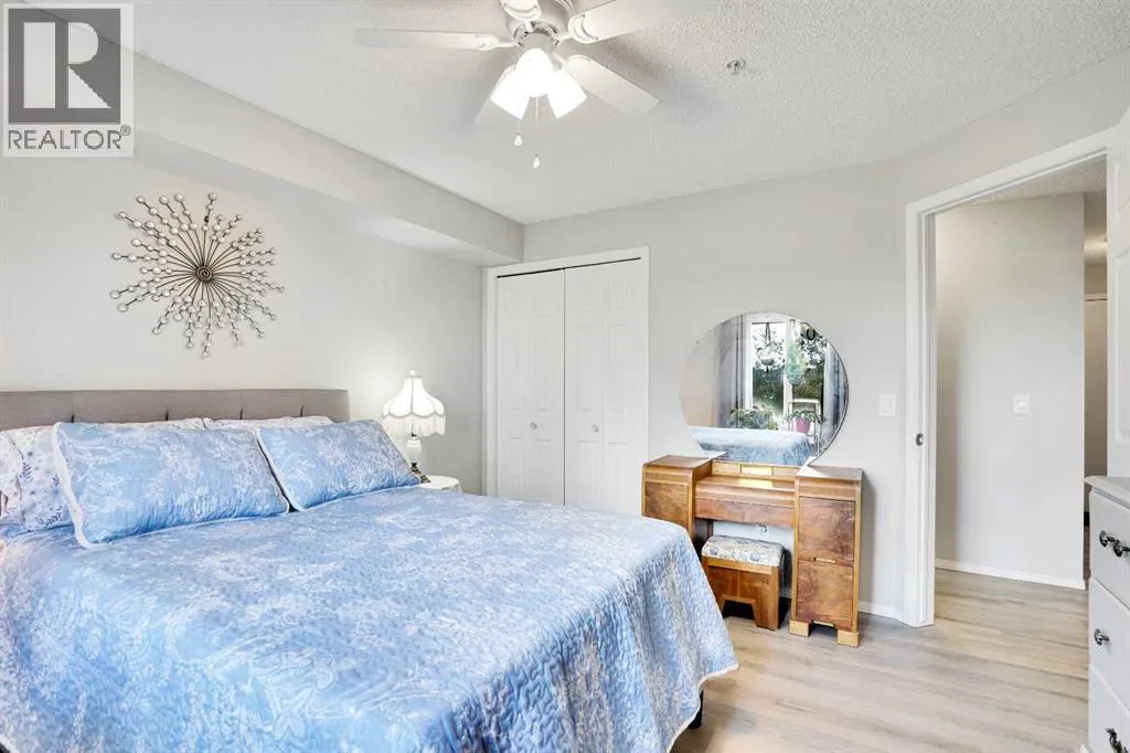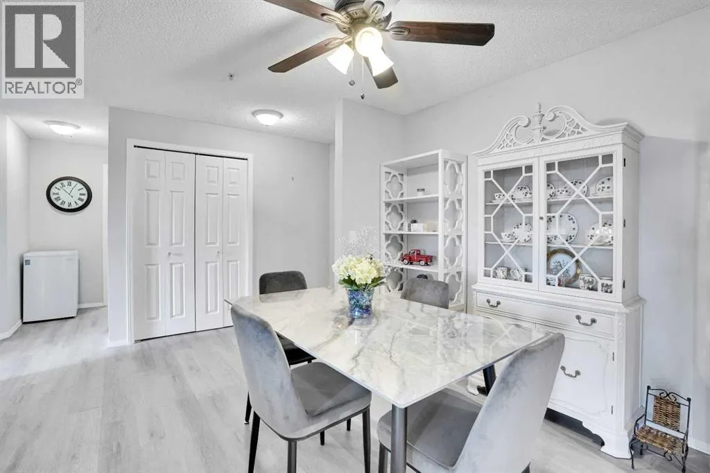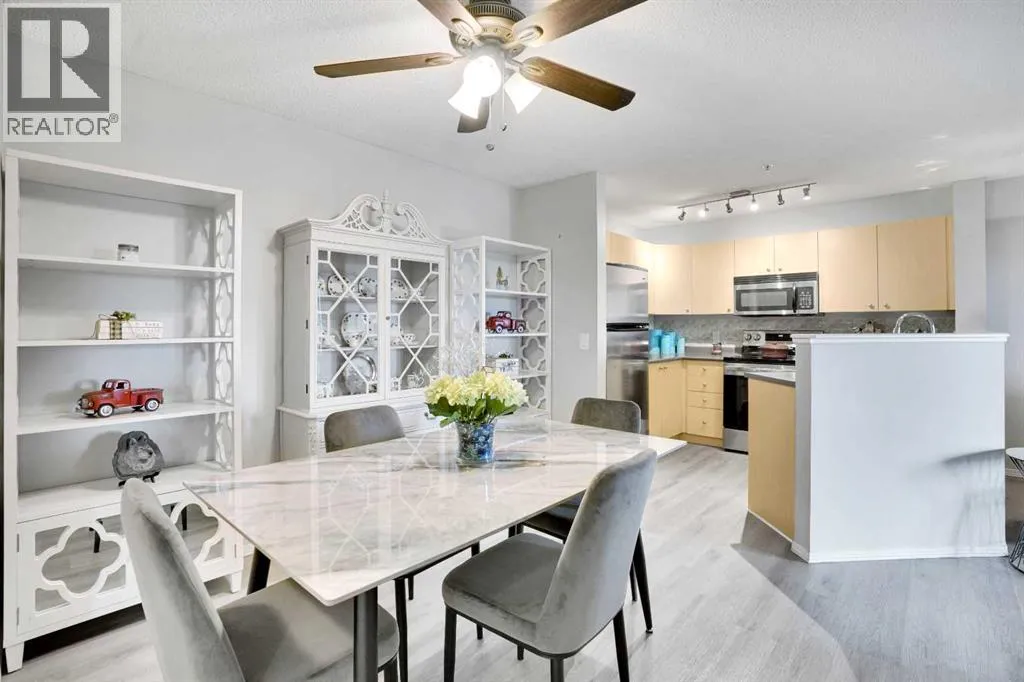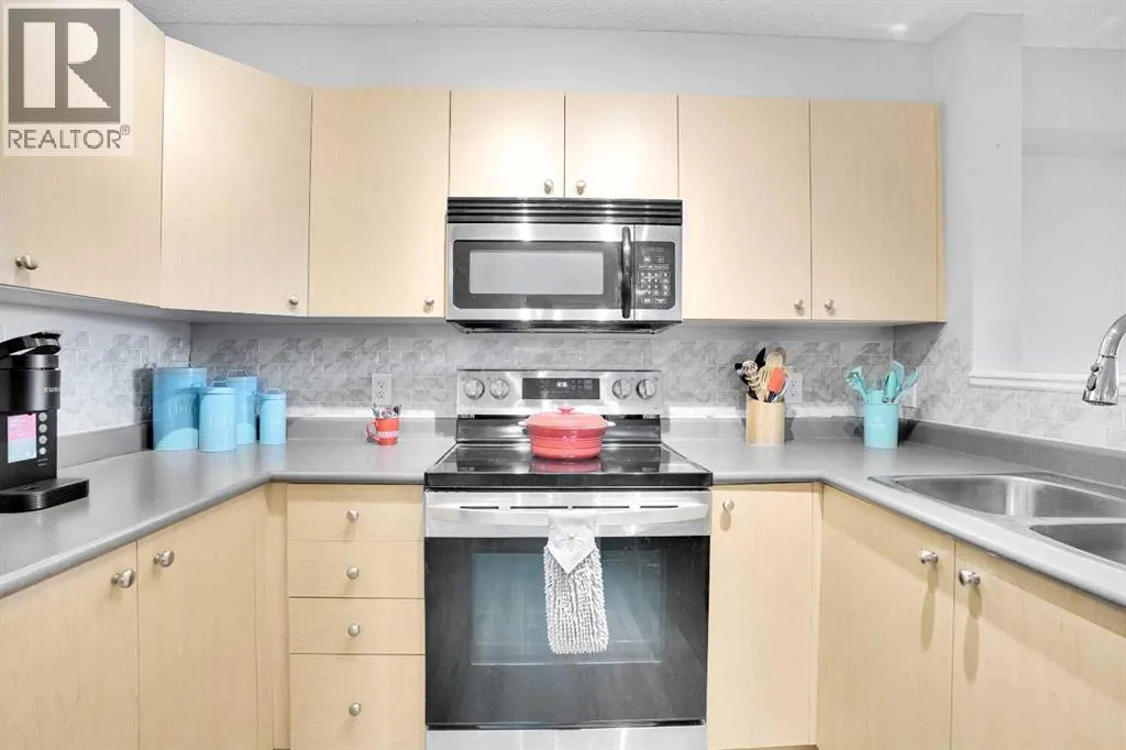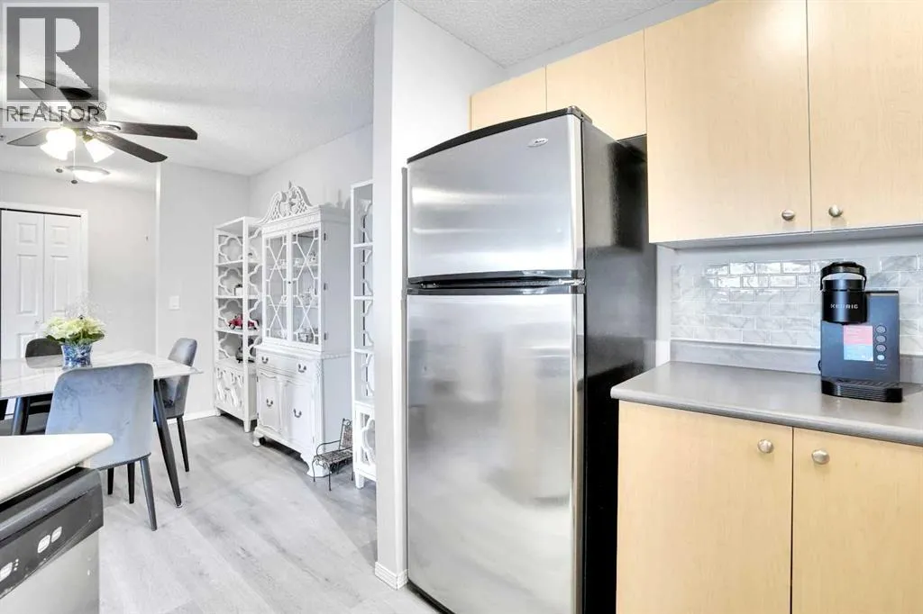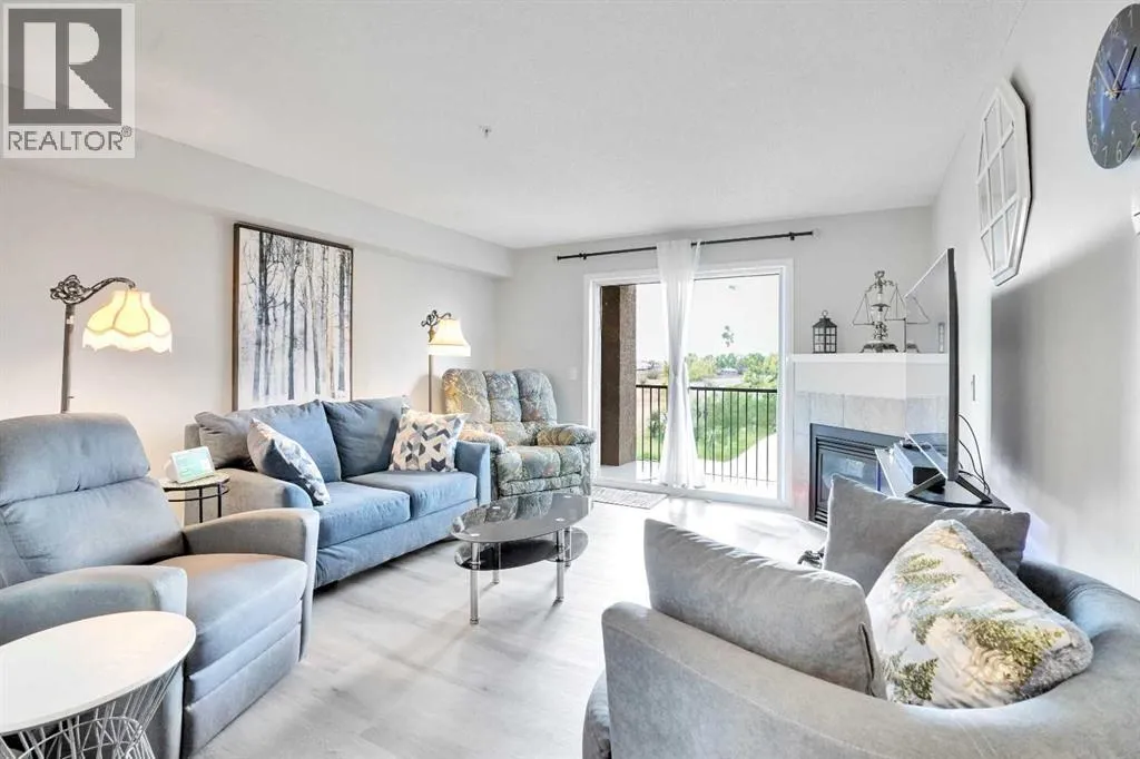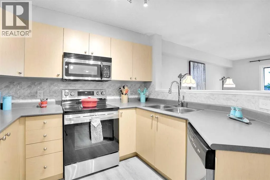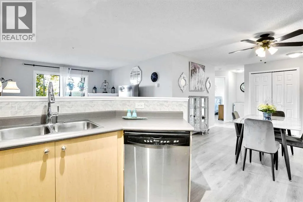 Welcome to this charming two bedroom, one bath home backing onto Iron Horse Park! Imagine enjoying sun filled days on your south facing deck, sipping coffee, or your beverage of choice, while soaking in the peace and quiet of the expansive green space. This home features warm-toned, newer laminate flooring throughout with no transition strips, meaning no trip hazards with a seamless flow from room to room. The spacious foyer offers a large double closet and opens up into the dining room, kitchen, and living room. You'll find a recessed nook perfect for a dining hutch, plus plenty of space for a large table, ideal for family meals. The kitchen is thoughtfully designed with ample storage and counter space for easy meal prep, along with bar-height seating thatâs both functional and perfect for entertaining. The stainless steel appliance package includes a fridge, newer stove, dishwasher, and built-in microwave. The bright and spacious living room features a cozy corner gas fireplace and offers stunning views of Iron Horse Park. Nearly every room in this home overlooks the park, creating a peaceful, relaxing atmosphere.Both the primary and second bedrooms are tucked away from the main living areas for added privacy and also back onto the park, quiet enough to comfortably leave the windows open at night. The four piece main bath is conveniently located nearby. Additional features include an in-suite storage room with front load washer and dryer, and a convenient corner parking stall with plug-in access for colder months. Enjoy easy walks to Sobeys, Tim Hortons, and a variety of other nearby amenities. Condo fees include electricity, heat, water, sewer, landscaping, snow removal, and exterior maintenance. If youâre looking for a private, peaceful home with green space views and walkable convenience, this could be the perfect fit. *Sorry, dogs not allowed* (id:27476)