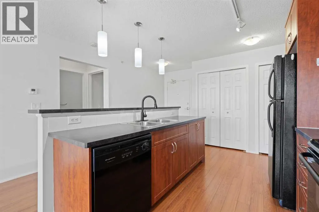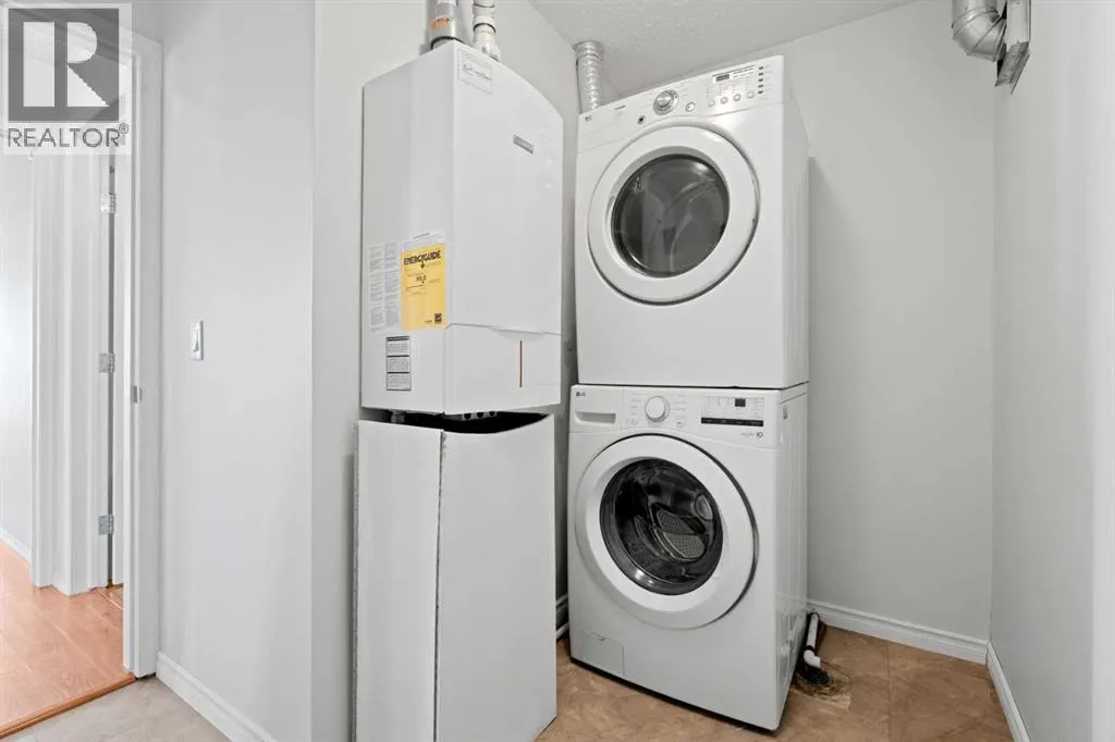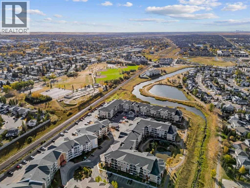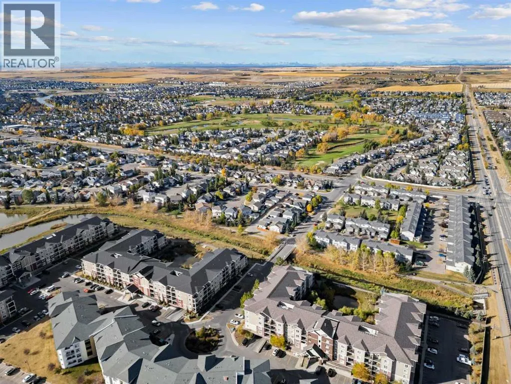 Welcome to this bright and inviting 2-bedroom, 2-bathroom condo in a prime NE corner, top-floor location. With east-facing windows that flood the space with morning light, youâll love starting your day with coffee on the private balcony overlooking the sunrise.Inside, enjoy the comfort of in-floor heating powered by an efficient Bosch boiler control system. The kitchen features a breakfast bar, garburator, and plenty of cabinetryâperfect for both cooking and entertaining. The open-concept layout flows seamlessly into the living and dining area, creating a spacious, airy feel.The Primary bedroom features a walk-in closet, additional closet storage, and a 4-piece ensuite. An additional bedroom on the opposite side of the unit has quick access to a 4-piece hall bathroom.Additional highlights include in-suite laundry with a stacking washer and dryer, underground titled parking, and ample visitor parking (registration required). This non-smoking, no-pet unit has been well cared for and offers a quiet, low-maintenance lifestyle.Conveniently located with easy access to 8th Street, Veterans Blvd, and Hwy 2, youâre just a short walk to walking paths, parks, and public transit. Nearby amenities include Silvercreek Shopping Centre (restaurants and services), Airdrie Gateway (Superstore, Canadian Tire, dining, and more), and Creekside Crossing. Golf enthusiasts will appreciate being just minutes from Woodside Golf Course and driving range.This top-floor home combines comfort, convenience, and lifestyle in one perfect package. (id:27476)