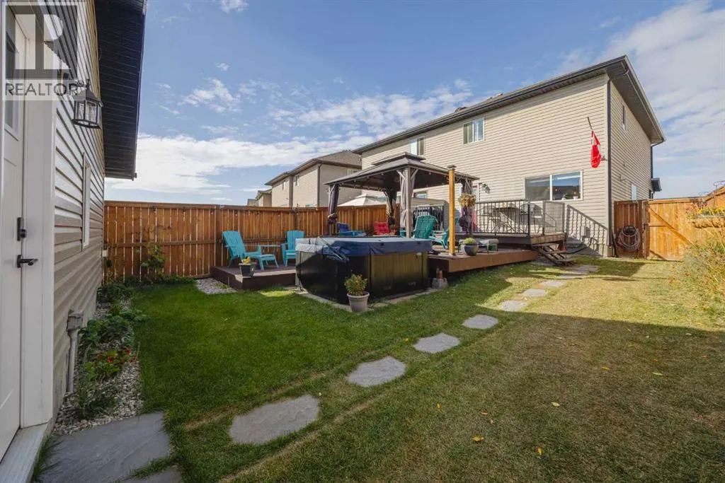 This proudly maintained 3-bedroom home has over 2200 developed square feet and is nestled on one of Luxstoneâs quietest streets. Timeless finishes make you feel comforted while extensive use of solid surface flooring keeps things stylish and easy to keep clean. The open-concept main floor is perfect for family living and entertaining guests. Upstairs, you'll find a spacious master suite complete with a walk-in closet and private ensuite, two more generous bedrooms also with walk-in closets, and a main bath that's oversized to help keep the peace! Downstairs, the fully finished lower level offers incredible flexibility. Enjoy a massive family room, the dedicated home gym that easily becomes a 4th bedroom or home office, the dog wash room that can also be a half bath as the toilet is already roughed-in, and so much storage you wonât believe it! Step outside to your sun-drenched, south-facing backyard thatâs larger than most and built for fun! Enjoy the huge deck, hot tub, gazebo, gas firepit, and plenty of grassy space for the kids. And the double garage means no more windshield scraping in winter. All this, AND it's located close to parks, pathways, a dog park, schools, restaurants, and just minutes to Highway 2 and major shopping. You deserve to live this well! Book your viewing today! (id:27476)