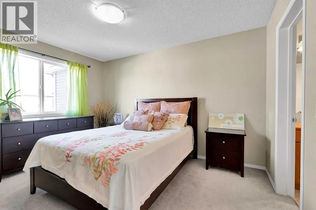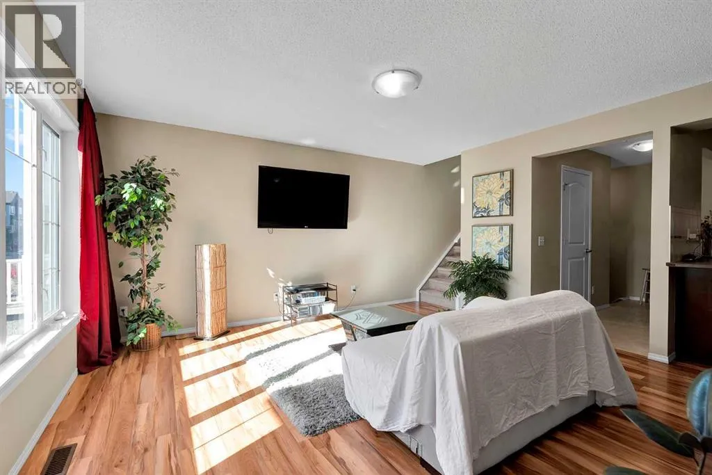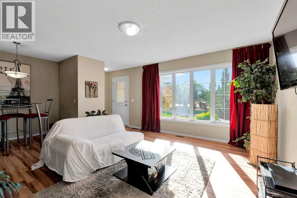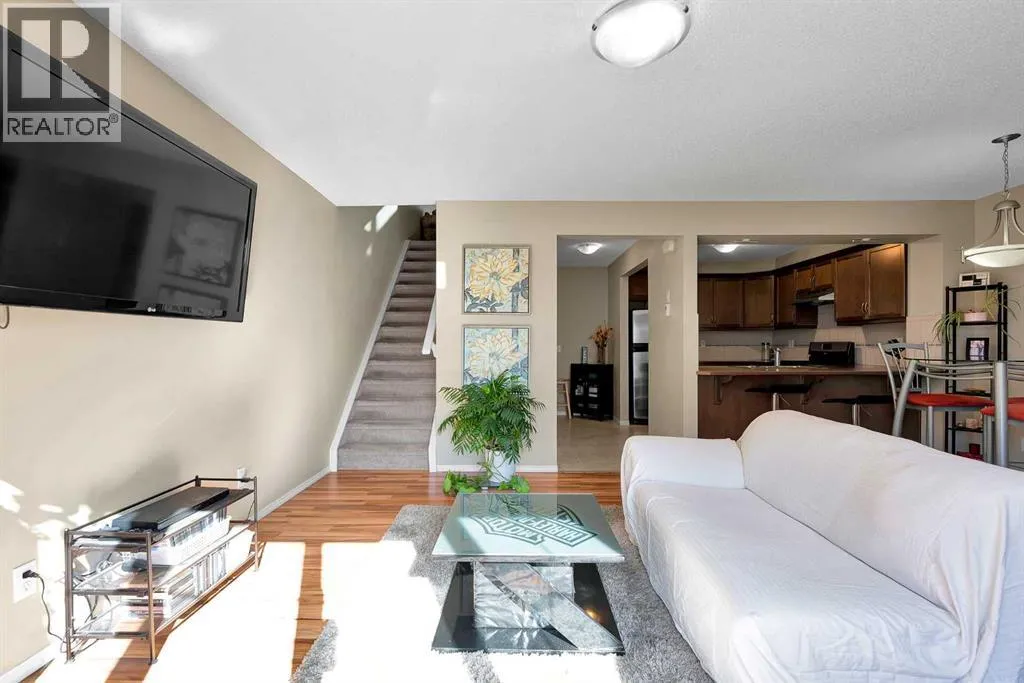 **OPEN HOUSE SUNDAY NOV 16 FROM 12-3** Spacious Townhome Across from the Park â Double Garage & Bonus Room with Balcony. Welcome to this bright and inviting 3-bedroom, 3-bathroom townhouse ideally situated across from a beautiful park. Featuring a double attached garage and thoughtful layout, this home offers the perfect balance of comfort and convenience. The main floor features an open-concept living space with laminate flooring, a stylish kitchen equipped with a breakfast bar, and ample storage throughout. Upstairs, a versatile bonus room opens to a large balcony with a gas line for your BBQâperfect for entertaining or enjoying your morning coffee. All three bedrooms are generously sized, and the high-efficiency furnace ensures year-round comfort. The basement half bath is already roughed in, offering the potential to create a full bathroom if desired. Enjoy relaxing on your south-facing front patio, or take advantage of the unbeatable location steps from schools, parks, walking paths, transit, and shopping, with easy access to Calgary for commuters. Donât miss out, schedule your private showing today. (id:27476)