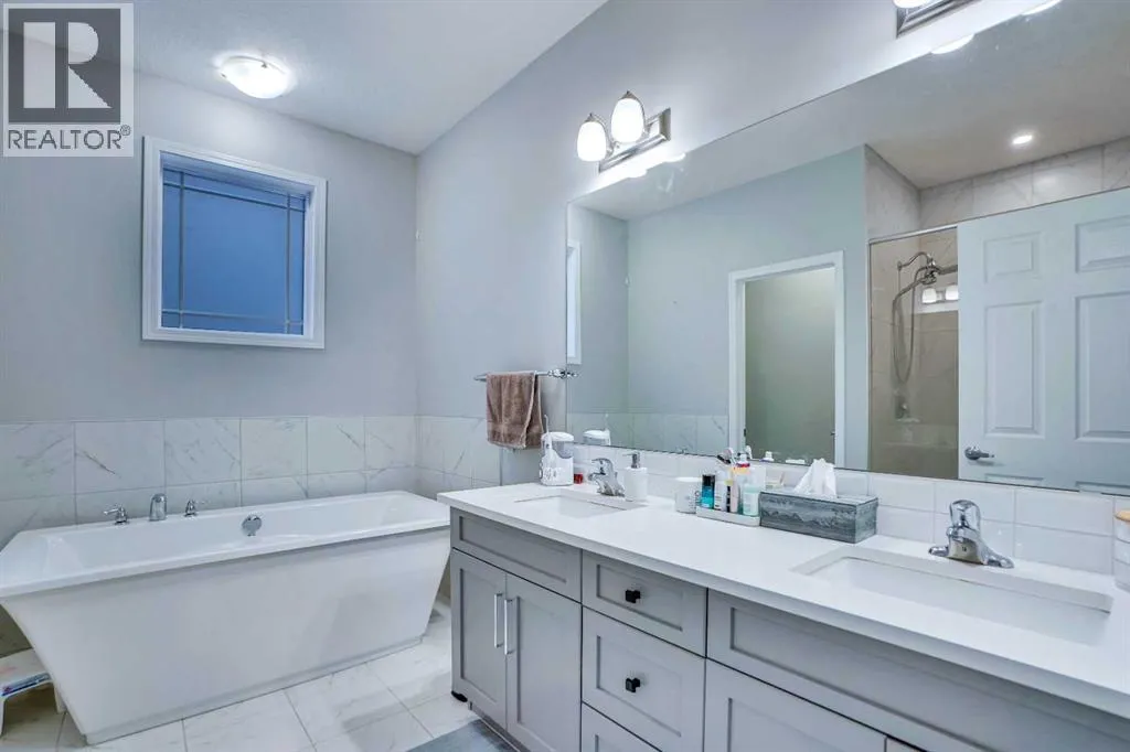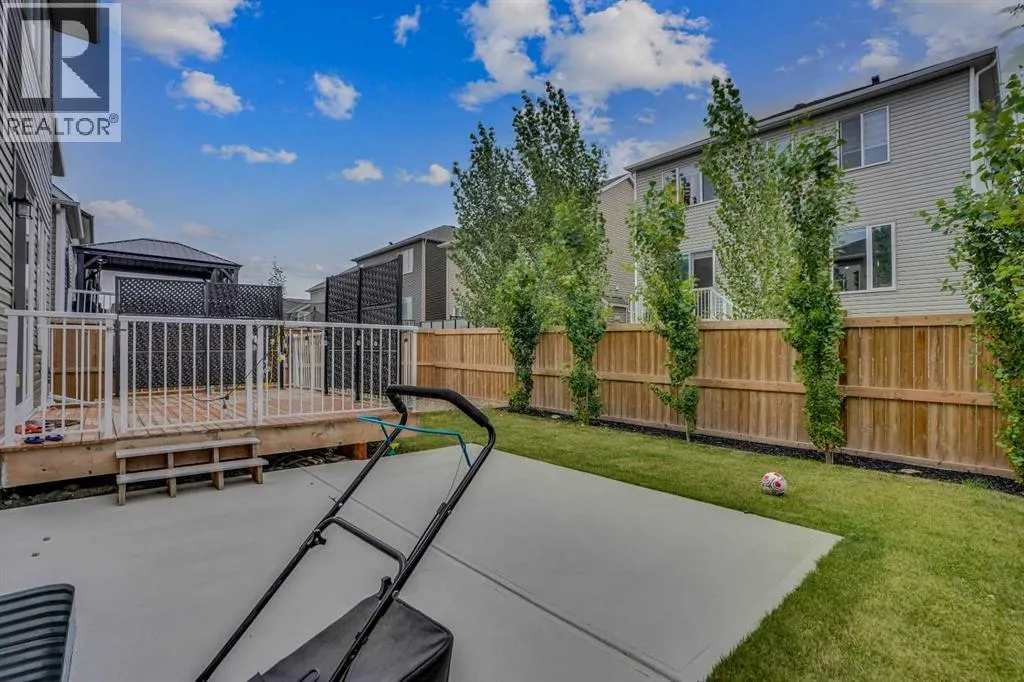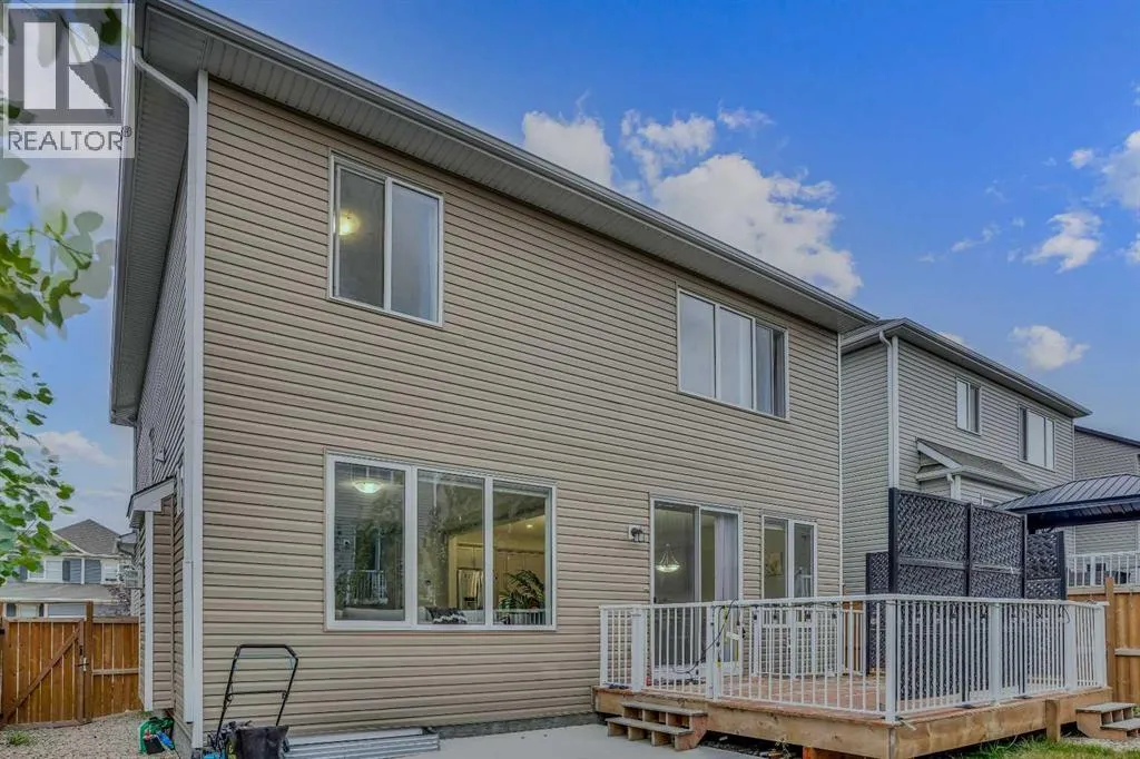 GORGEOUS 2167 SQUARE FEET TWO STOREY DETACHED HOME WITH DOUBLE FRONT ATTACHED GARAGE, SITUATED ON NICE WIDER LOT AND HAS VERY OPEN AND SPACIOUS FLOOR PLAN ! HUGE LIVING ROOM WITH FIRE PLACE, BEAUTIFUL KITCHEN WITH ISLAND, NICE CABINETRY, DINING AREA, 9 FEET CEILINGS, UPPER FLOOR HAS 3 GOOD SIZE BEDROOMS AND NICE BONUS ROOM, CENTRAL AIR CONDITONER, GREAT LOCATION, FENCED, DECK , LOTS OF UPGRADES, 10 MINUTES DRIVE FROM CROSS IRON SHOPPING CENTRE, VERY EASY AND QUICK ACCESS TO CALGARY, CLOSE TO AMENITIES ! (id:27476)