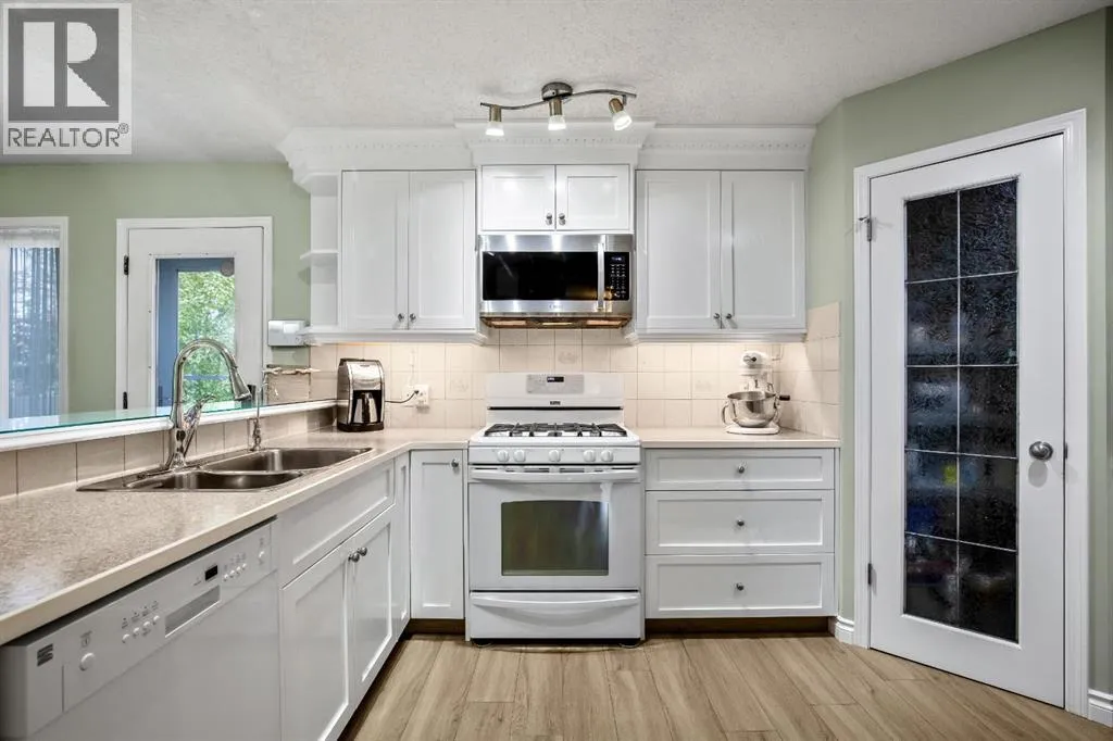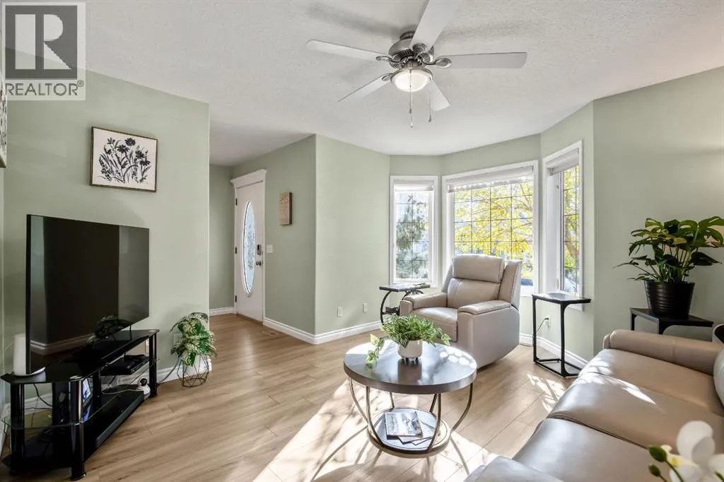 This move-in ready home is situated on a quiet street in the highly sought after family friendly neighborhood of Luxstone. As you approach you will notice the welcoming front porch and the pride of ownership including new siding, new shingles and almost all new windows (Completed in 2015). This well thought out layout offers gleaming vinyl plank flooring throughout and over 1850 developed sq ft. The front living room is a focal point and is flooded with natural light. A spacious âu shapedâ kitchen is situated at the back of the home with timeless white cabinets that reach all the way to the ceiling, under cabinet lights, plenty of storage due to the corner pantry, a gas stove, and sink which looks onto the large dining room. Making it easy to entertain and connect. Off the bright dining room is direct access to your low maintenance outdoor oasis. Including a spacious deck, gorgeous stamped concrete patio, mature trees, garden boxes and an OVERSIZED 22x24 HEATED GARAGE! There is a convenient main level laundry room, and powder room tucked away for privacy. Upstairs you will find two well sized bedrooms each with walk in closets, and one with hard surface flooring. The oversized windows, in the primary draw in a ton of natural light, there is also plenty of storage with his and her closets. The oversized main bath has a separate shower, expansive vanity and relaxing soaker tub. The lower level is fully finished with a rec/game area, built in cabinets, and an additional living room. This updated home also offers fresh paint, all new flooring including stain resistant polyester carpet (2020), a newer high efficiency furnace (2020), hot water on demand (2023), as well as the comforts of air conditioning(2020). Perfectly situated close to schools, shopping, restaurants, and just a quick 5-minute drive to Deerfoot for an effortless commute. This home offers tremendous value, schedule your private showing or view the virtual tour today. (id:27476)