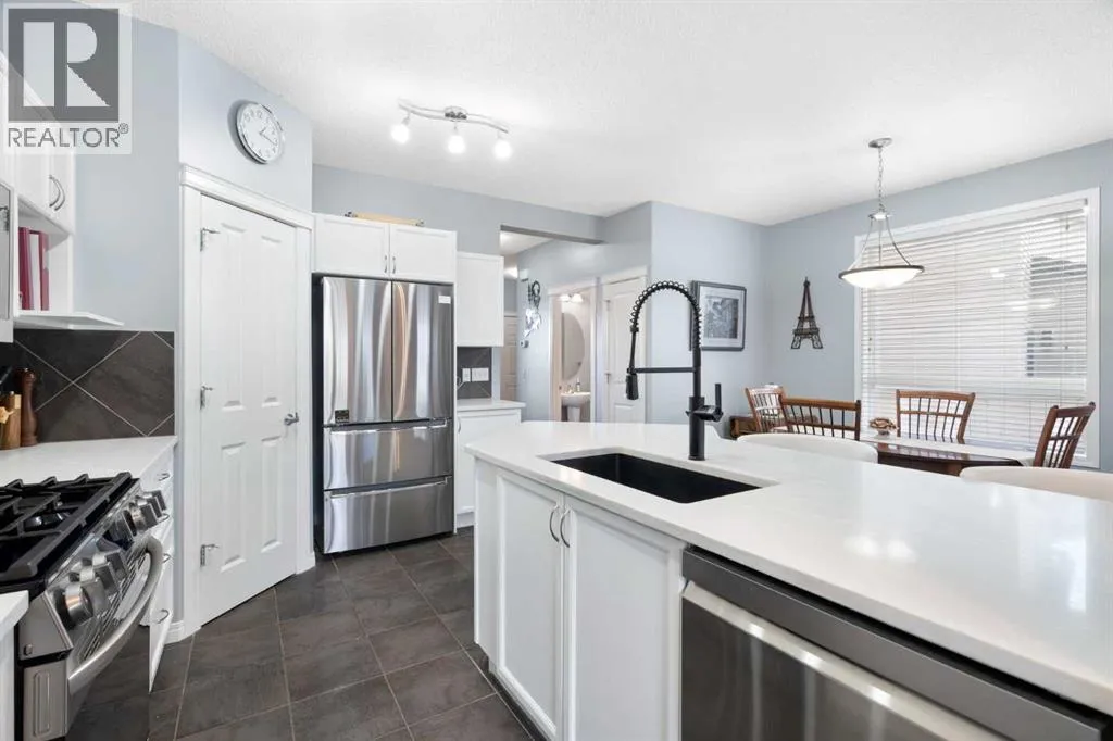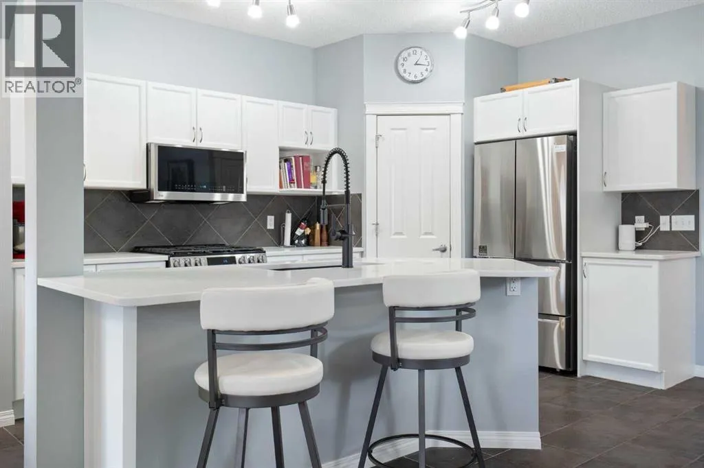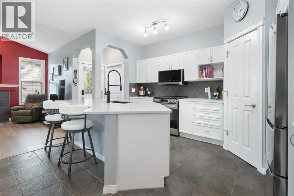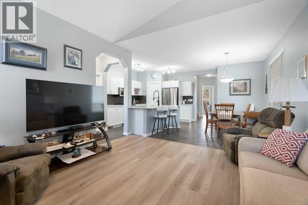 **OPEN HOUSE** Sat, Oct 18th 11am-1pm & Sun, Oct 19th 1-3pm** Get ready to fall in love with 157 Morningside Gardens! Located on a spacious pie-shaped lot on a quiet, family-friendly street, this home offers both style and comfort, with recent upgrades that make it move-in ready. Just steps from a playground and several schools, it's perfect for growing families!Exciting new updates include a full kitchen appliance upgrade (fridge, stove, microwave, and dishwasher) and a brand-new kitchen tap, all completed in 2024. Youâll also love the fresh luxury vinyl plank flooring in the living room and front office, along with beautifully stained decks and fence in summer 2023. The entire home has been freshly painted in 2024, and upgraded keypad door locks offer modern convenience.Step onto the east-facing front veranda, where you can enjoy your morning coffee as the sun rises. Inside, the open-concept main floor features soaring vaulted ceilings, a cozy gas fireplace, and large windows that fill the space with natural light. The kitchen is a chefâs delight, with a recently upgraded island & quartz countertops, an eating bar, ample counter space, cabinet storage, and a walk-in corner pantry featuring a built-in spice rack. The dining room is perfect for hosting family dinners and get-togethers.A spacious office/den on the main floor is ideal for remote work or can be easily converted into an additional bedroom.Upstairs, the generous master suite offers a private ensuite and a walk-in closet, while two more large bedrooms, a 4-piece bathroom, and a laundry area provide ultimate convenience. The bright, sunny basement is a blank canvas, ready for your custom touch, with room for another bedroom, bathroom, and a large rec room.The massive backyard is perfect for summer BBQs (with a BBQ gas line!), featuring a private deck, a double detached garage, a storage shed, RV parking, or garden space â and still plenty of room to play! This home has everything you need to start the next chapter of your life! (id:27476)