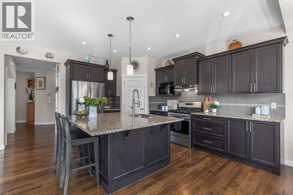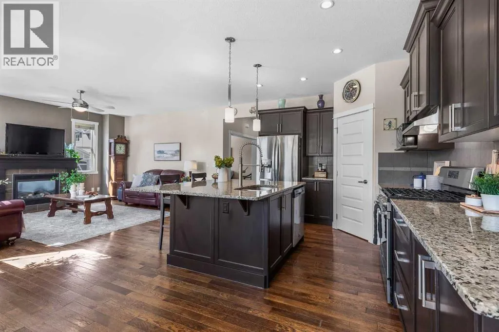 5 BEDROOMS, 4 BATHS, OVER 3500 SQFT of DEVELOPED SPACE, CORNER LOT, RV PARKING, MAIN FLOOR DEN, AMAZING MASTER BEDROOM RETREAT! You will find all of this and more in 362 Williamstown Green. Set on a quiet corner lot in Williamstown, one of Airdrie's Most Sought-After Communities, this spacious and beautifully maintained home offers over 3,500 sq ft of developed living space, thoughtful upgrades, and a backyard built for making memories. Whether you're looking for room to grow, space to entertain, or simply a home that checks every boxâthis one delivers.As you enter, youâre welcomed by a bright, private front foyerâa rare design that keeps the main living space tucked away from the front door for added privacy. Off the foyer is a mudroom with built-in storage leading to the double attached garage, and a convenient powder room discreetly located for guests. A large formal dining room offers versatilityâideal for hosting dinners or creating a work-from-home space.The heart of the home is the open-concept main floor, featuring rich hardwood flooring, a sunny living room with cozy gas fireplace, and a bright breakfast nook framed by windows. The chef-inspired kitchen offers granite countertops, a large central island with storage, gas range, upgraded fridge with water and ice, ample cabinetry, and a corner pantryâperfect for busy family life and entertaining alike.Upstairs, you'll find a vaulted bonus room that makes a great play area or secondary family room, plus three spacious secondary bedrooms, a full four-piece bathroom, and a convenient upper laundry room with additional storage. The primary retreat is a standout, with vaulted ceilings, a built-in window bench, walk-in closet, and a spa-like five-piece ensuite featuring a tiled shower, deep soaker tub, dual sinks, and plenty of natural light.The professionally finished basement expands your living space with a huge rec room, fifth bedroom, four-piece bathroom, dedicated fitness area, and loads of storage âideal for families needing that extra space.Step outside to enjoy the fully landscaped backyard oasis with a stone patio, built-in garden beds, perennial flower garden, a large storage shed, and a gated RV/trailer parking padâa rare and valuable feature!Other highlights include fresh exterior paint, a meticulously maintained property overall, and pride of ownership throughout.Just a 5-minute walk to Herons Crossing School (Kâ9), close to additional schools and parks, and located very close to the Williamstown Nature Reserve with its scenic pathways that meander through the community and connect the many playgrounds. With easy access to shopping, dining, and Veterans Boulevard for commuting, this home offers the complete lifestyle package in one of Airdrieâs most family-friendly communities. (id:27476)