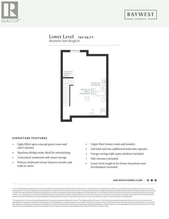 PRICE IMPROVEMENT ALERT - Meet THE BASILâa stunning 1,872 SQ.FT. home offering 3 BEDROOMS and 2.5 BATHROOMS, situated on a spacious 3,348 SQ.FT. lot with a East-facing backyard. Estimated move-in is set for January 2026, giving you plenty of time to plan your next chapter. Built by BAYWEST HOMES, a trusted name since 1985, this home offers solid construction, innovative design, and comes with both a 10-YEAR ALBERTA NEW HOME WARRANTY and a one-year builder warranty for added peace of mind.Step inside to a welcoming entryway and a tucked-away powder room before being wowed by the showstopper kitchen! This chefâs dream features 42-inch WHITE cabinets extending to the ceiling with crown molding & under-cabinet lighting, a built-in microwave, gas range, upgraded appliances, and a chimney hood fan with tile work reaching to the ceiling. Quartz countertops, a Silgranite under-mount sink, and an upgraded faucet combine beauty with functionality. The island cabinets are a beautiful taupe colour. Youâll also love the 4-bin pullout system for waste, recycling, and compostâno more unsightly garbage cans!A spacious pantry sits across from the island with eat-up bar, and the mudroom provides both extra pantry space and a tucked-away area for your familyâs coats and shoes.Designed with entertaining in mind, the open-concept great room and dining area feature oversized windows and a sliding glass door overlooking the backyard. Other notable upgrades include 9-foot basement ceilings, a side entrance, modern upgraded railings, and energy-efficient triple-pane windows to keep things cozy year-round.Now, letâs talk about the primary bedroomâa peaceful retreat featuring a generous walk-in closet and a luxurious en-suite with double sinks and a spacious shower. Upstairs also includes a bonus room, a laundry room with extra storage, two well-sized secondary bedrooms, and a large main bathroom upgraded with dual sinksâno more morning battles between siblings!Ready to make your move?THE BASIL in Sawgrass Park is waiting to welcome you home to a vibrant community featuring expansive green spaces, peaceful wetlands, scenic parks, and exciting plans for a new school and recreational amenities. Developed by Hopewell, itâs the perfect place to relax, play, and create lasting memories. Sawgrass Park is quickly shaping up to be absolutely stunning and getting in now means being one of the first to call this community home. Getting in first means incredible value and your pick of the best lots on the best streets! This home is one of those must see homes on a fantastic lot on a quiet street! Don't miss it!This home is currently under construction. Please contact the listing agent to arrange a showing. PLEASE NOTE THE PHOTOS ARE NOT OF THIS EXACT HOME. PHOTOS SHOW A HOME THAT IS THE SAME MODEL BUT IN ANOTHER COMMUNITY. See photos for a look at the COSTAL colour board for this home. (id:27476)