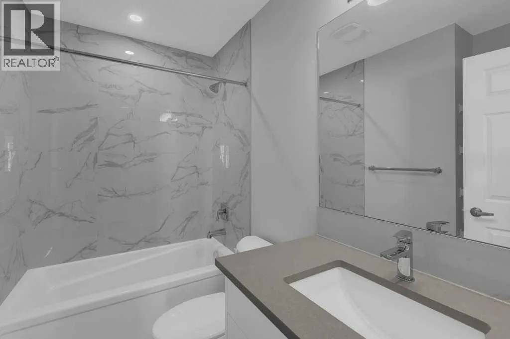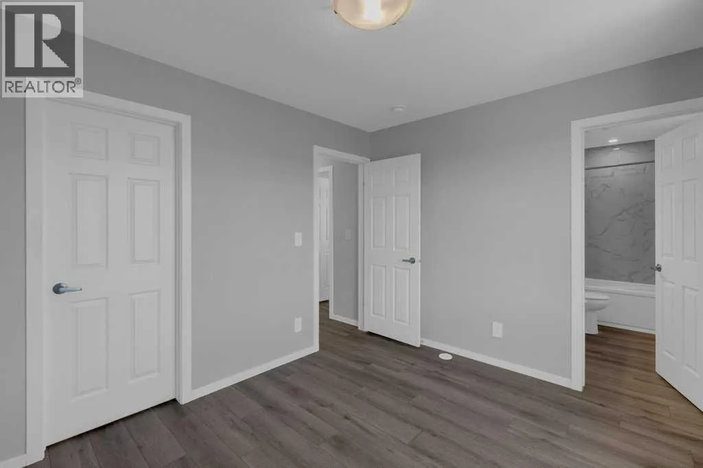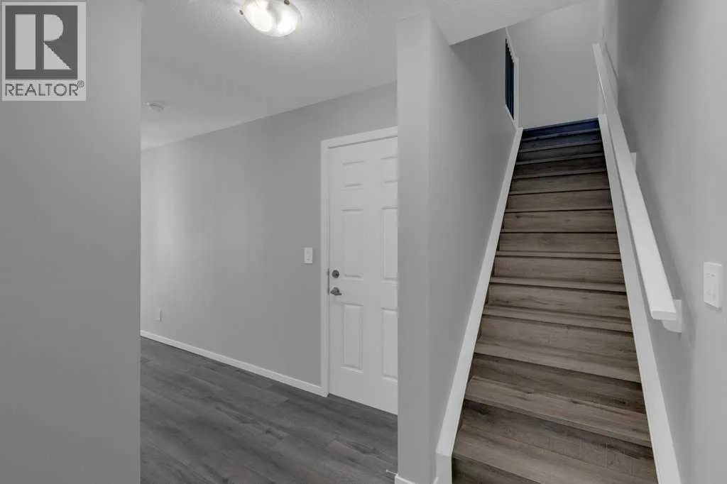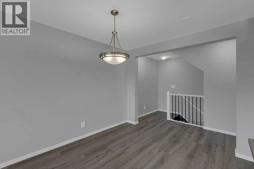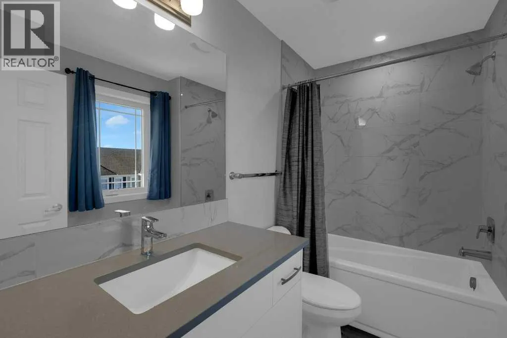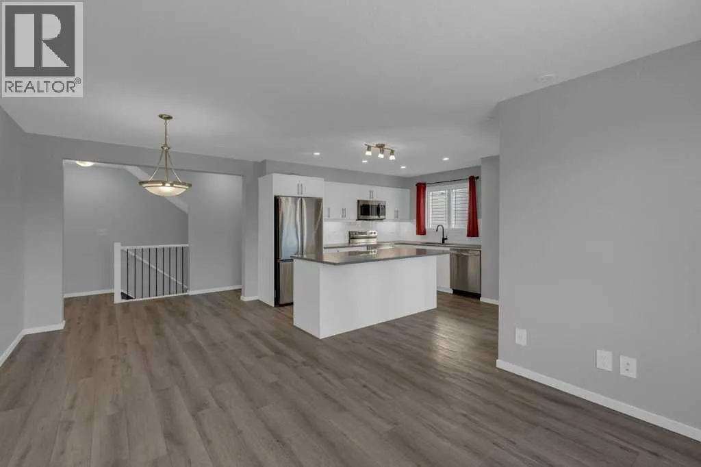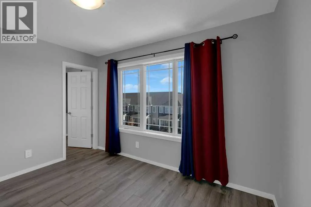 Modern End-Unit in Windsong!Set on a sunny corner in Windsong, this townhome blends contemporary finishes with a smart three-level layout and a single attached garage. Offering 3 bedrooms and 2.5 baths, and lots of living space, this home is move-in ready.The ground level welcomes you with a bright foyer and a large utility/storage room, and access to your own single attached garage. Upstairs on the second level, you will fall in love with the natural light that pours into the open, airy main floor, anchored by a sleek kitchen featuring quartz countertops and an oversized island with seating. A convenient 2-piece powder room sits nearby. Dine inside or step out from the dining area to a spacious southwest-facing balcony, perfect for evening sun. The generous living room easily accommodates a sectional and media setup, framed by big windows.On the top level, youâll find two comfortable bedrooms, a laundry room, and an upgraded 4-piece bath. The private primary suite includes a walk-in closet and its own 4-piece ensuite. Additional highlights include luxury vinyl plank flooring, upgraded finishes throughout, a single attached garage, and a small front yard, great for pets.The location checks every box: steps to playgrounds, pathways, and a pond, with shopping, restaurants, schools, transit, and parks close by. Commuters will appreciate quick access to Highway 2 and the short drive into Calgary. (id:27476)