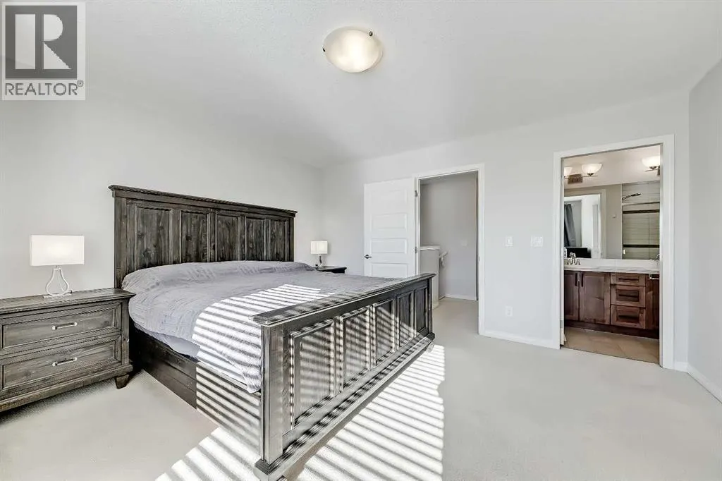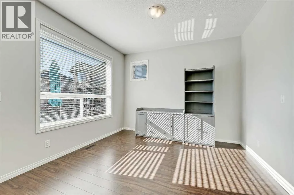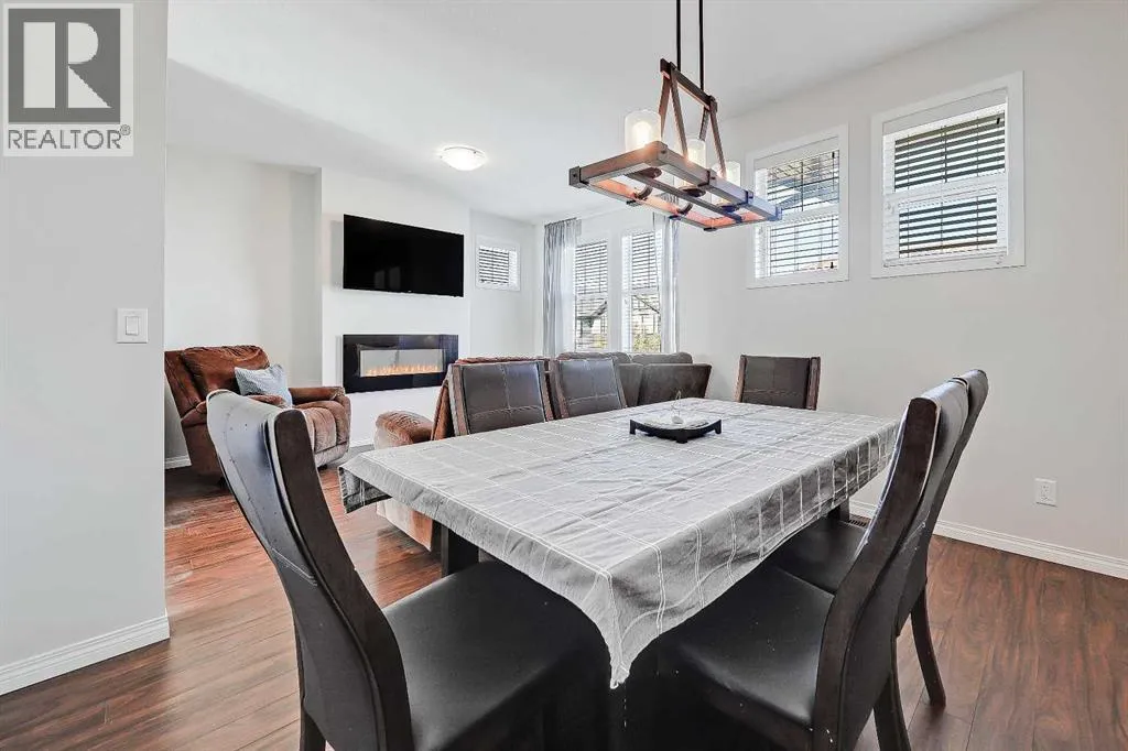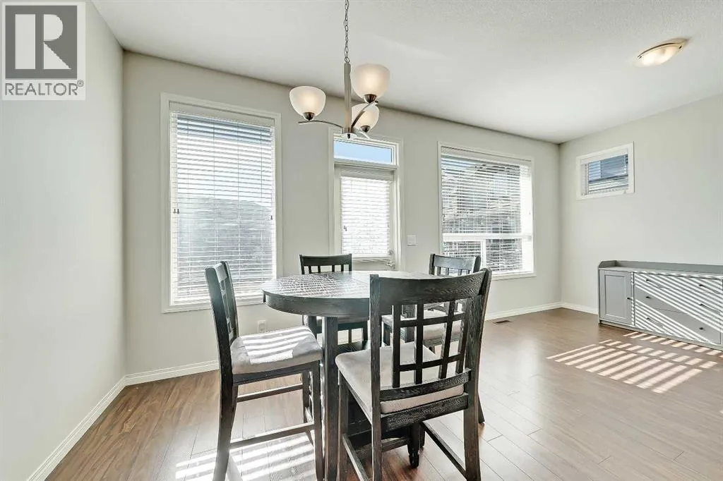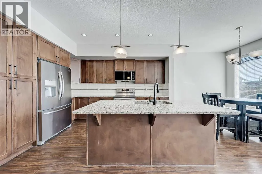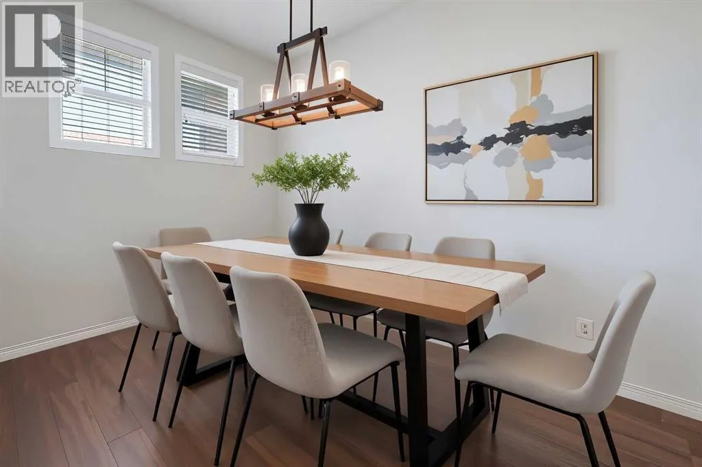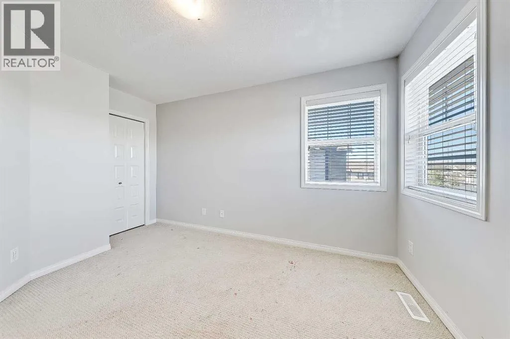 BRIGHT END UNIT | DOUBLE GARAGE | FINISHED WALKOUT BASEMENT | SCHOOL & NATURE PRESERVE STEPS AWAY! This spacious end unit in the family and pet-friendly Bridges at Williamstown complex offers an exceptional location with a south-facing balcony and enclosed yard that overlook the central courtyard. This property also provides easy access to an absolute abundance of amenities including playgrounds, parks, pathways, sports fields, Herons Crossing School just steps away, direct access to Williamstown Nose Creek Preserve right from the complex and close proximity to Reunion Pond, Woodside Golf Course and the shops, services, restaurants and retail along Veterans Boulevard.As you enter the property you will discover a main floor designed for both comfort and functionality. The spacious front foyer welcomes you with a large closet and easy access to the main and lower walkout levels of the home. Wide plank laminate floors flow throughout, enhancing the open-concept layout. The well-appointed kitchen offers rich cabinetry, stainless steel appliances, a pantry closet, ample granite countertop space, island with sit up breakfast bar, nook and a stylish stacked tile backsplash. The main living room is connected to the designated dining room and is warm and welcoming with bright windows and an attractive electric fireplace, perfect for relaxing evenings or gathering with friends. The main floor is completed with a half bathroom and a functional flex space that is ideal as a sitting room, reading area or computer station and provides direct access to the balcony. Upstairs, the home continues to impress, the spacious primary bedroom is a true retreat offering room for a king-sized bed, a generous walk-in closet and a 4-piece ensuite with a double vanity and a fully tiled shower. There are 2 additional bedrooms that offer size and versatility - ideal for kids/teens or a home office. Finishing off the upper level is a 4-piece bathroom with a large vanity and full tub/show er combination and a convenient laundry closet. The fully finished lower walkout level is as versatile as it is welcoming. It can easily serve as a 4th bedroom with a separate entrance and dedicated bathroom, or as a multi-use space for a home theatre or games room. Highlights include a modern 3-piece bathroom with in-floor heating, privacy door separating the space and oversized windows. From this level, youâll also find access to the utility room and the attached double garage.The outdoor living areas are outstanding with a sunny, south-facing raised balcony on the main level that overlooks the courtyard and a good-sized lower concrete patio and fenced yard off the lower level, perfect for sipping your morning coffee or just relaxing and enjoying the space. Additional features include 9â ceilings on the main level, new stove and over the range microwave (2024), new paint (2025), large driveway with room for 2 vehicles, ample visitor parking close to the unit and more. Welcome Home. (id:27476)