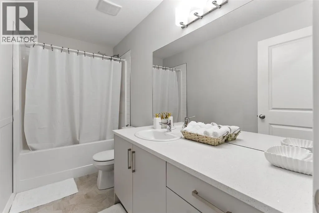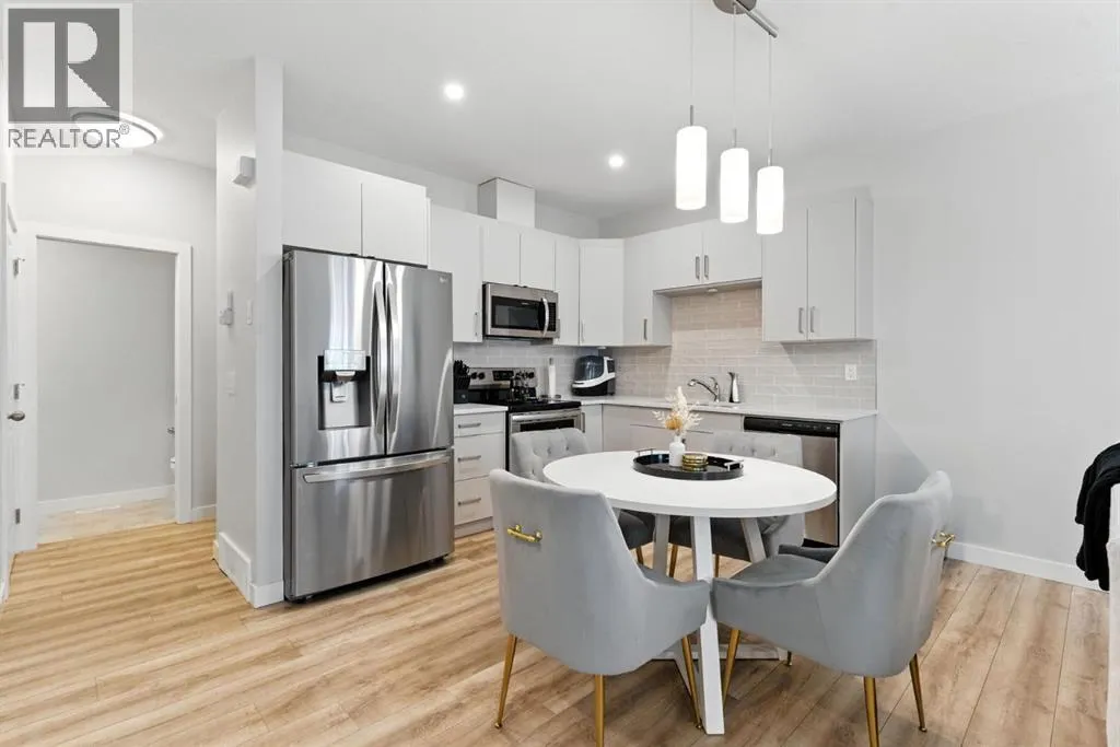 Discover modern living in this beautifully maintained 2 bedroom, 2.5 bathroom stacked townhouse in Airdrieâs sought-after Canals community. With 1,082 sq. ft. of thoughtfully designed space, this home offers an open-concept main floor with durable vinyl plank flooring, a bright living area, and a sleek, contemporary kitchen perfect for everyday living and entertaining. A convenient mudroom off the entrance leads to the attached garage, while a main floor powder room adds guest-friendly functionality. Upstairs, enjoy cozy carpeting, upper-level laundry, and two spacious bedrooms, including a private primary suite with a walk-in closet and 4-piece ensuite. A second full bathroom provides added convenience, and the undeveloped basement offers endless potential for a home office, gym, or extra storage. Perfectly located along 8th Street SW, youâre just minutes from shopping, dining, schools, parks, and scenic walking paths along the canals. Whether you're a first-time buyer, downsizer, or simply looking for low-maintenance living in a vibrant neighbourhood, this move-in-ready home is full of comfort, style, and everyday convenience. (id:27476)