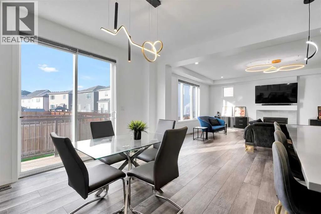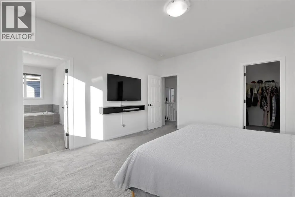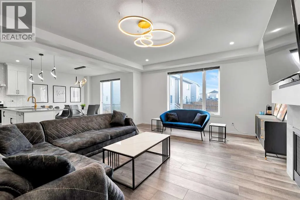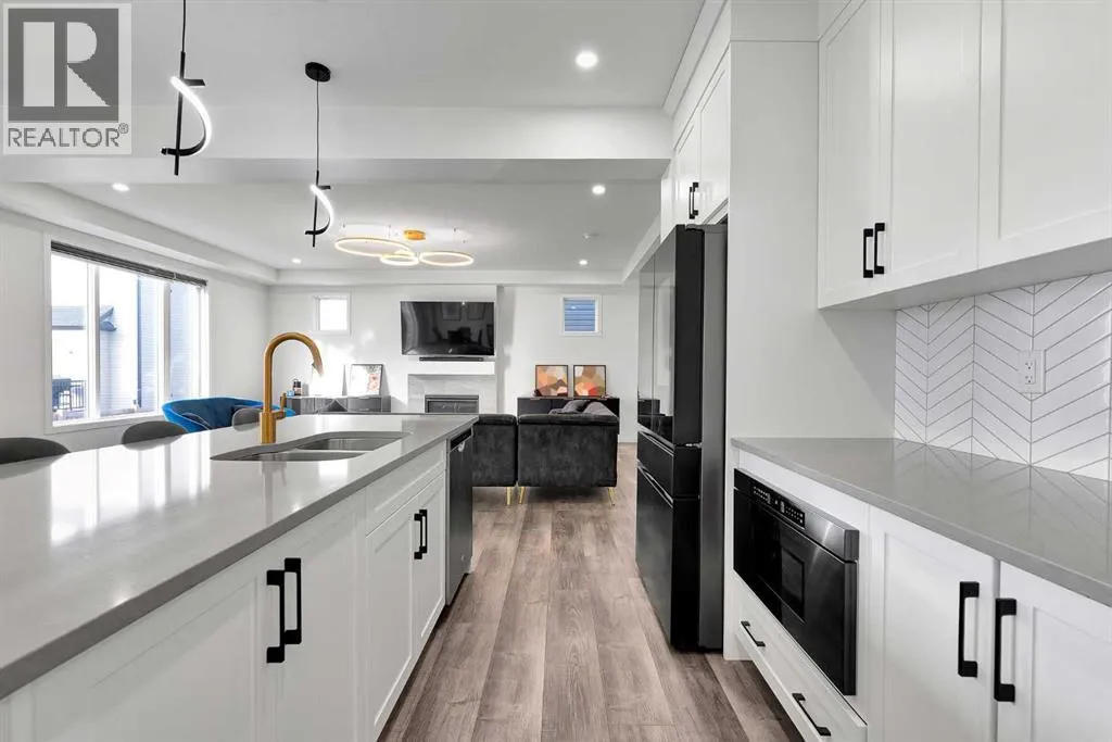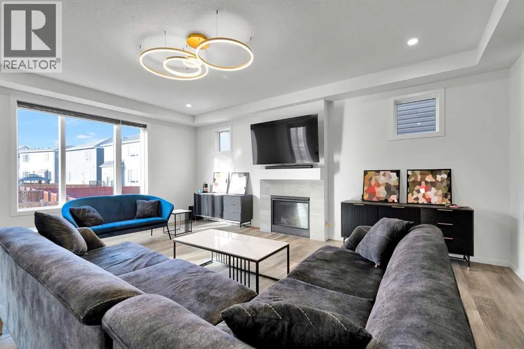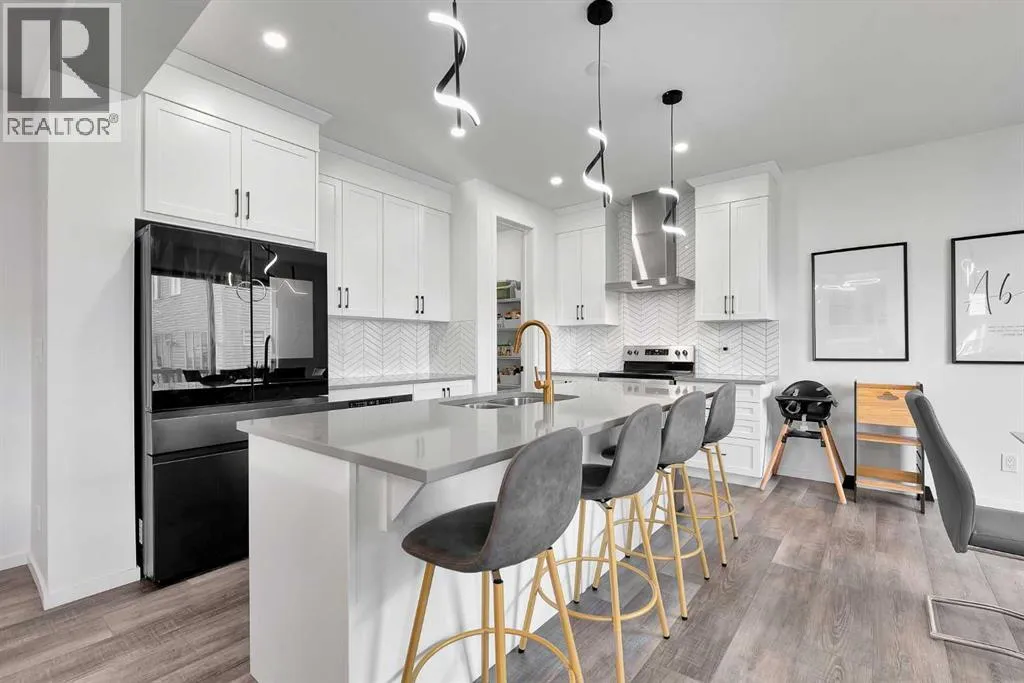 MODERN FAMILY HOME IN SOUGHT-AFTER SOUTHWINDS! BUILT IN 2021 | WEST-FACING BACKYARD | AIR-CONDITIONING | STEPS TO PARKS, SCHOOLS & SHOPPINGWelcome to this MODERN DETACHED HOME offering 2,409 SQ.FT. of beautifully finished living space plus a 777 SQ.FT. unfinished basement, ready for your personal touch! Designed with todayâs family in mind, this home combines style, comfort, and convenience in one of Airdrieâs most popular communities.Step inside and be greeted by a bright, open-concept main floor featuring 9FT CEILINGS and VINYL PLANK FLOORING. The stunning kitchen impresses with QUARTZ COUNTERTOPS, a HERRINGBONE TILE BACKSPLASH, BLACK STAINLESS STEEL SMART FRIDGE, WALK-IN PANTRY, and a large ISLAND WITH SEATINGâperfect for casual dining. The spacious living room with TRAY CEILING centers around a TILED GAS FIREPLACE WITH A MODERN MANTEL, while the adjacent dining area features PATIO DOORS TO THE DECK -ideal for BBQs and A SUNNY WEST-FACING BACKYARD. Upstairs, the BONUS ROOM with 14FT VAULTED CEILINGS and FRENCH DOORS TO A PRIVATE BALCONY offers the perfect space for family movie nights or kids play area. The PRIMARY SUITE is a true retreat with a WALK-IN CLOSET and a SPA-INSPIRED ENSUITE featuring a SOAKER TUB, DOUBLE VANITY, and OVERSIZED SHOWER. Two additional spacious bedrooms, a full family bathroom, and a large linen closet complete the upper level.The UNFINISHED BASEMENT (insulated, with egress windows and bathroom rough-in) provides endless potential for future development. Additional highlights include CENTRAL AIR-CONDITIONING and an ATTACHED DOUBLE GARAGE.Located in the FAMILY-FRIENDLY COMMUNITY OF SOUTHWINDS, this home is within walking distance to PARKS, PATHWAYS, SHOPPING, AND TRANSIT. The PICKLEBALL COURTS & PUMP TRACK are just minutes away. And the NEW SOUTH WINDSONG Kâ9 SCHOOL is opening Fall 2027. With easy access to Calgary and only 10 minutes to Stoney Trail, this location truly has it all!Donât miss your chance to own this MODERN, MOVE -IN READY HOME IN A PRIME LOCATION â book your showing today and see why this could be the smart move for you! (id:27476)