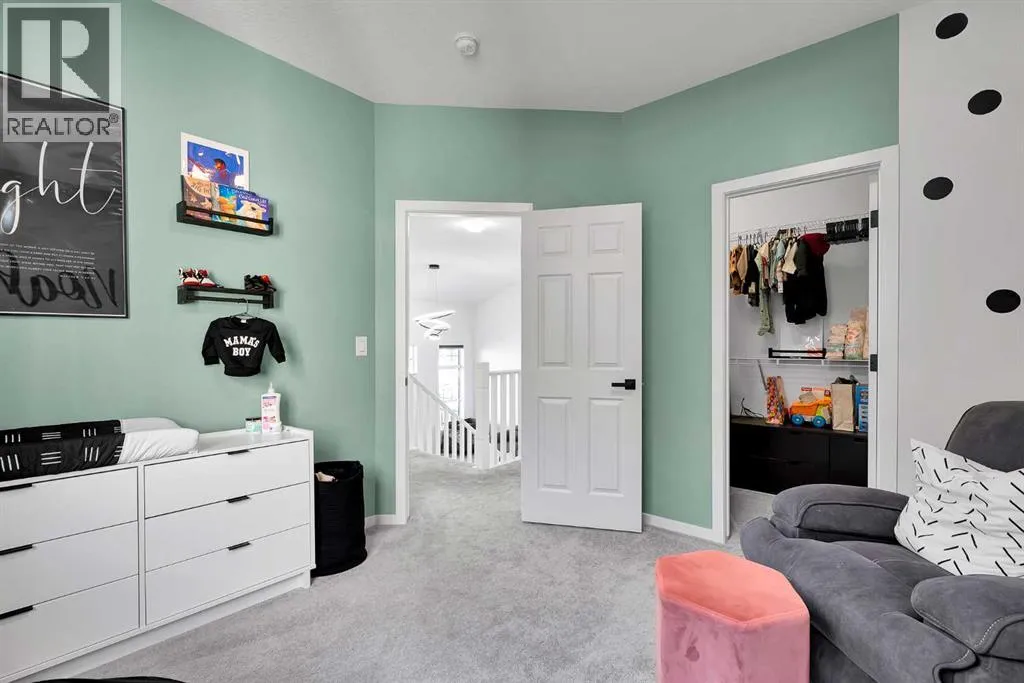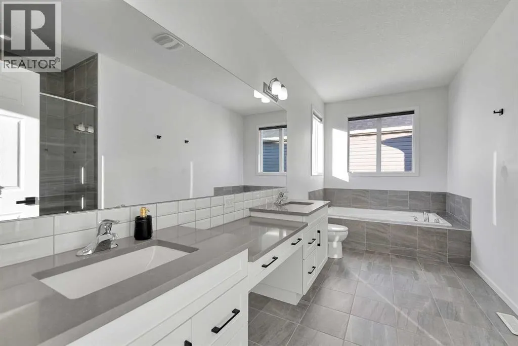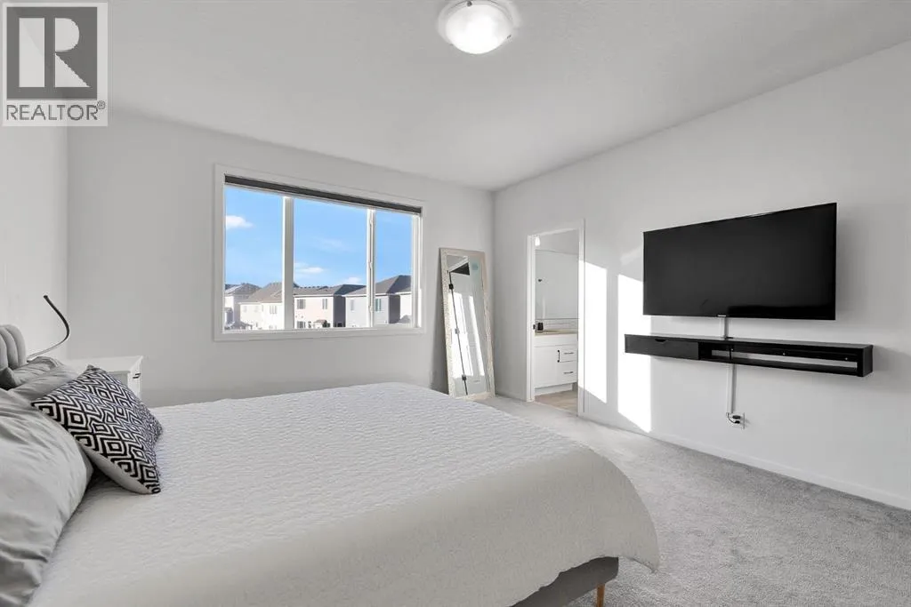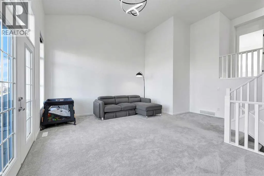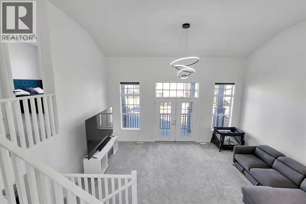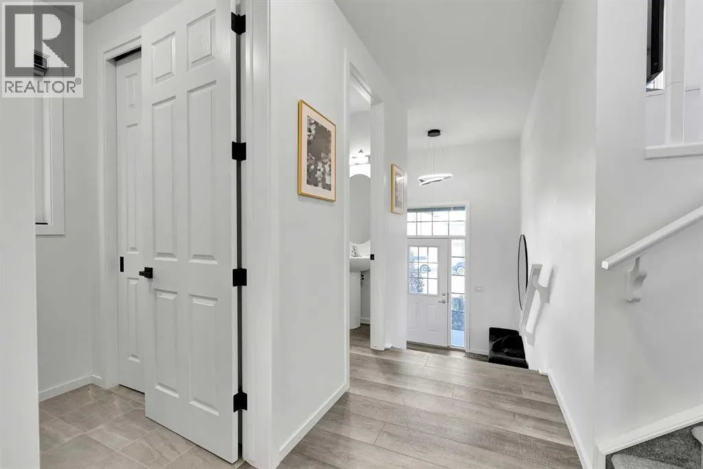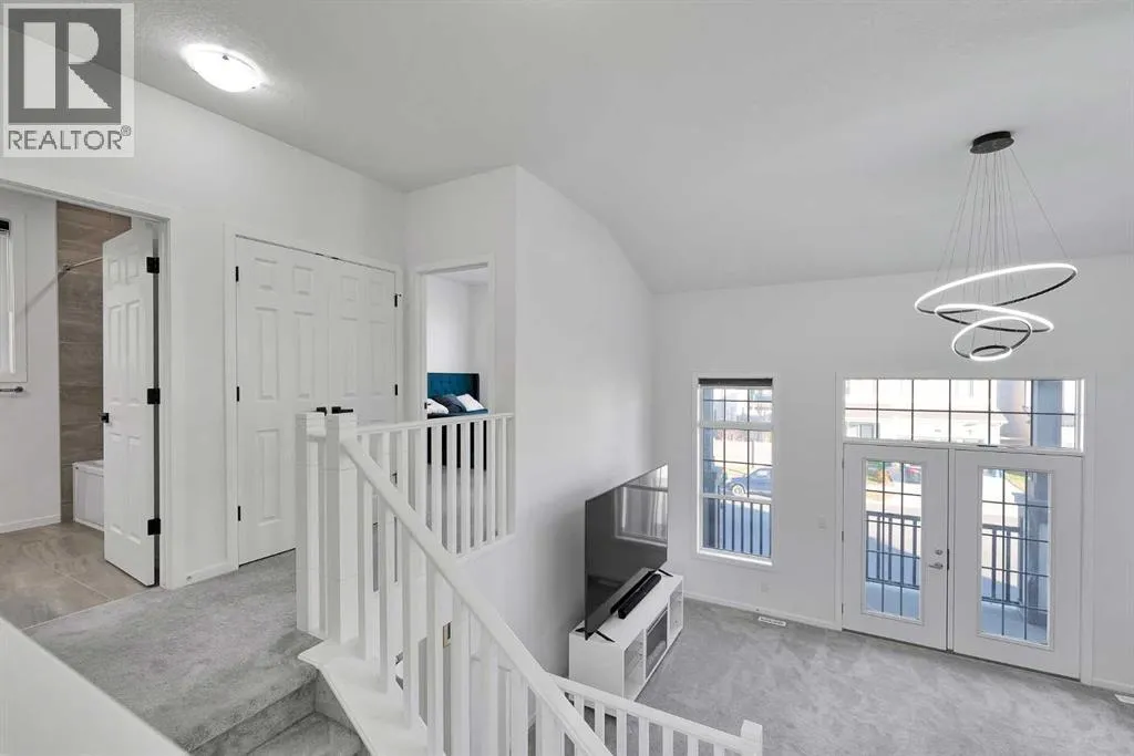 MODERN FAMILY HOME IN SOUGHT-AFTER SOUTHWINDS! BUILT IN 2021 | WEST-FACING BACKYARD | AIR-CONDITIONING | STEPS TO PARKS, SCHOOLS & SHOPPINGWelcome to this MODERN DETACHED HOME offering 2,409 SQ.FT. of beautifully finished living space plus a 777 SQ.FT. unfinished basement, ready for your personal touch! Designed with todayâs family in mind, this home combines style, comfort, and convenience in one of Airdrieâs most popular communities.Step inside and be greeted by a bright, open-concept main floor featuring 9FT CEILINGS and VINYL PLANK FLOORING. The stunning kitchen impresses with QUARTZ COUNTERTOPS, a HERRINGBONE TILE BACKSPLASH, BLACK STAINLESS STEEL SMART FRIDGE, WALK-IN PANTRY, and a large ISLAND WITH SEATINGâperfect for casual dining. The spacious living room with TRAY CEILING centers around a TILED GAS FIREPLACE WITH A MODERN MANTEL, while the adjacent dining area features PATIO DOORS TO THE DECK -ideal for BBQs and A SUNNY WEST-FACING BACKYARD. Upstairs, the BONUS ROOM with 14FT VAULTED CEILINGS and FRENCH DOORS TO A PRIVATE BALCONY offers the perfect space for family movie nights or kids play area. The PRIMARY SUITE is a true retreat with a WALK-IN CLOSET and a SPA-INSPIRED ENSUITE featuring a SOAKER TUB, DOUBLE VANITY, and OVERSIZED SHOWER. Two additional spacious bedrooms, a full family bathroom, and a large linen closet complete the upper level.The UNFINISHED BASEMENT (insulated, with egress windows and bathroom rough-in) provides endless potential for future development. Additional highlights include CENTRAL AIR-CONDITIONING and an ATTACHED DOUBLE GARAGE.Located in the FAMILY-FRIENDLY COMMUNITY OF SOUTHWINDS, this home is within walking distance to PARKS, PATHWAYS, SHOPPING, AND TRANSIT. The PICKLEBALL COURTS & PUMP TRACK are just minutes away. And the NEW SOUTH WINDSONG Kâ9 SCHOOL is opening Fall 2027. With easy access to Calgary and only 10 minutes to Stoney Trail, this location truly has it all!Donât miss your chance to own this MODERN, MOVE -IN READY HOME IN A PRIME LOCATION â book your showing today and see why this could be the smart move for you! (id:27476)