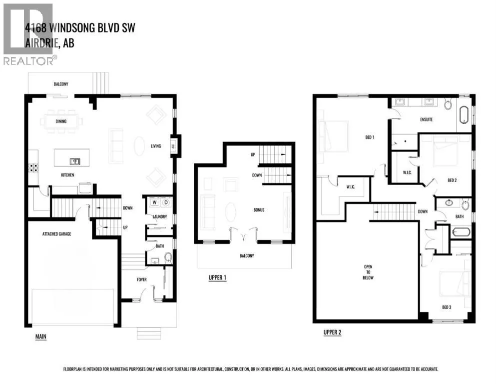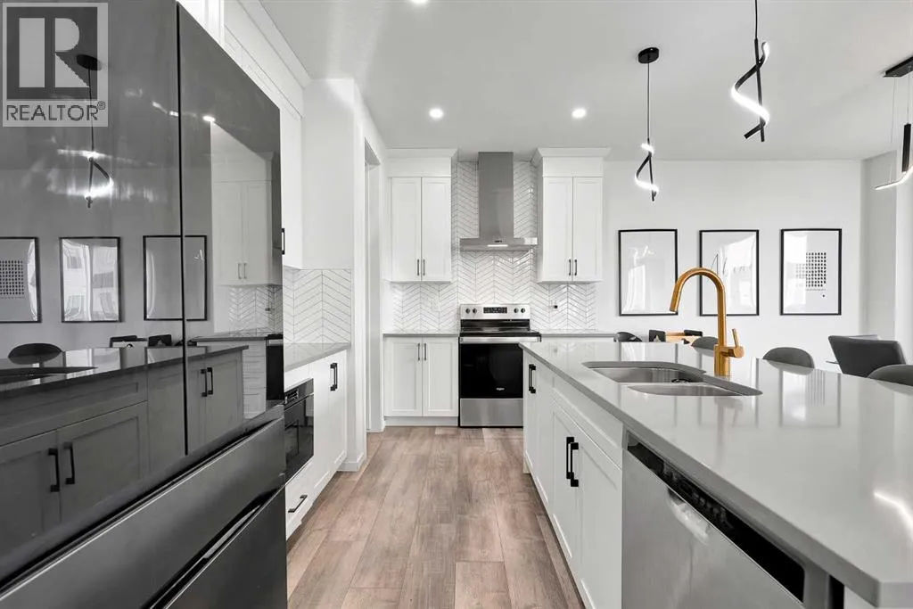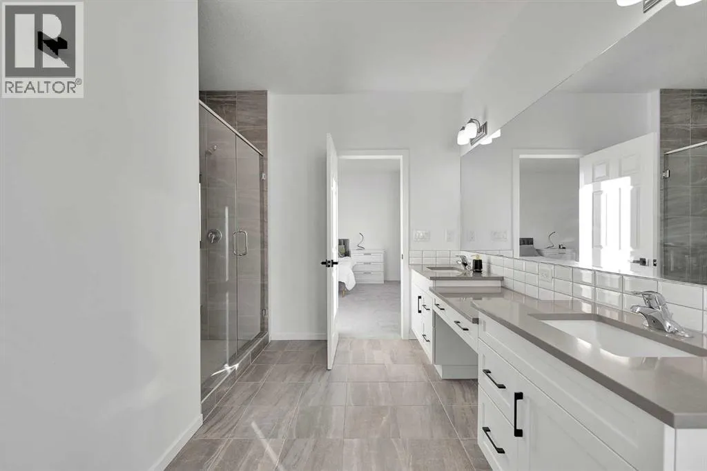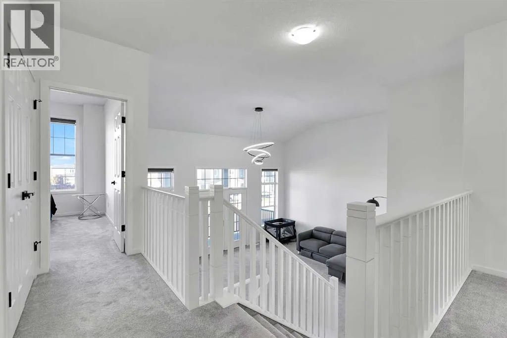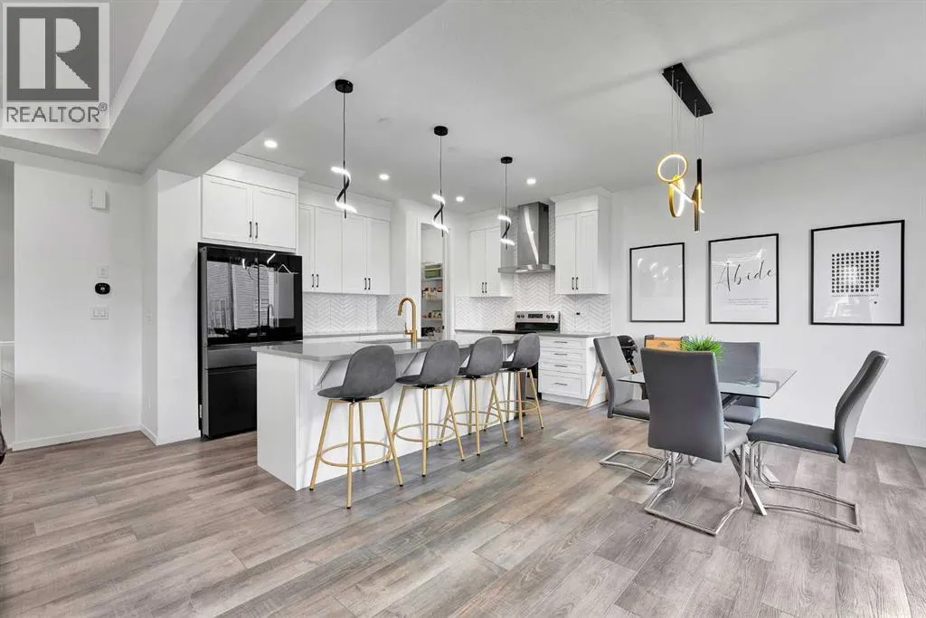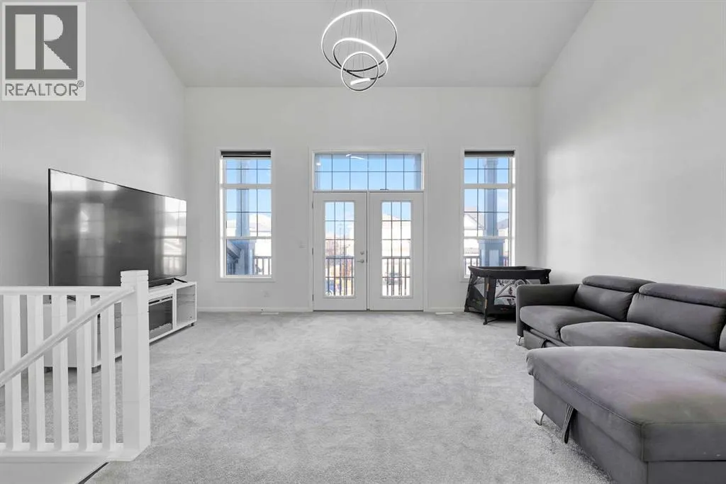MODERN FAMILY HOME IN SOUGHT-AFTER SOUTHWINDS! BUILT IN 2021 | WEST-FACING BACKYARD | AIR-CONDITIONING | STEPS TO PARKS, SCHOOLS & SHOPPINGWelcome to this MODERN DETACHED HOME offering 2,409 SQ.FT. of beautifully finished living space plus a 777 SQ.FT. unfinished basement, ready for your personal touch! Designed with todayâs family in mind, this home combines style, comfort, and convenience in one of Airdrieâs most popular communities.Step inside and be greeted by a bright, open-concept main floor featuring 9FT CEILINGS and VINYL PLANK FLOORING. The stunning kitchen impresses with QUARTZ COUNTERTOPS, a HERRINGBONE TILE BACKSPLASH, BLACK STAINLESS STEEL SMART FRIDGE, WALK-IN PANTRY, and a large ISLAND WITH SEATINGâperfect for casual dining. The spacious living room with TRAY CEILING centers around a TILED GAS FIREPLACE WITH A MODERN MANTEL, while the adjacent dining area features PATIO DOORS TO THE DECK -ideal for BBQs and A SUNNY WEST-FACING BACKYARD. Upstairs, the BONUS ROOM with 14FT VAULTED CEILINGS and FRENCH DOORS TO A PRIVATE BALCONY offers the perfect space for family movie nights or kids play area. The PRIMARY SUITE is a true retreat with a WALK-IN CLOSET and a SPA-INSPIRED ENSUITE featuring a SOAKER TUB, DOUBLE VANITY, and OVERSIZED SHOWER. Two additional spacious bedrooms, a full family bathroom, and a large linen closet complete the upper level.The UNFINISHED BASEMENT (insulated, with egress windows and bathroom rough-in) provides endless potential for future development. Additional highlights include CENTRAL AIR-CONDITIONING and an ATTACHED DOUBLE GARAGE.Located in the FAMILY-FRIENDLY COMMUNITY OF SOUTHWINDS, this home is within walking distance to PARKS, PATHWAYS, SHOPPING, AND TRANSIT. The PICKLEBALL COURTS & PUMP TRACK are just minutes away. And the NEW SOUTH WINDSONG Kâ9 SCHOOL is opening Fall 2027. With easy access to Calgary and only 10 minutes to Stoney Trail, this location truly has it all!Donât miss your chance to own this MODERN, MOVE -IN READY HOME IN A PRIME LOCATION â book your showing today and see why this could be the smart move for you! (id:27476)