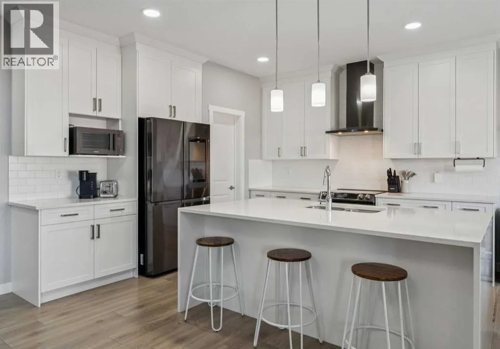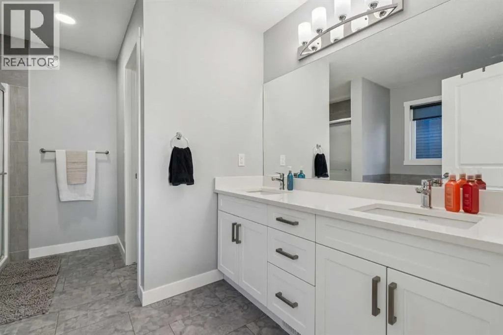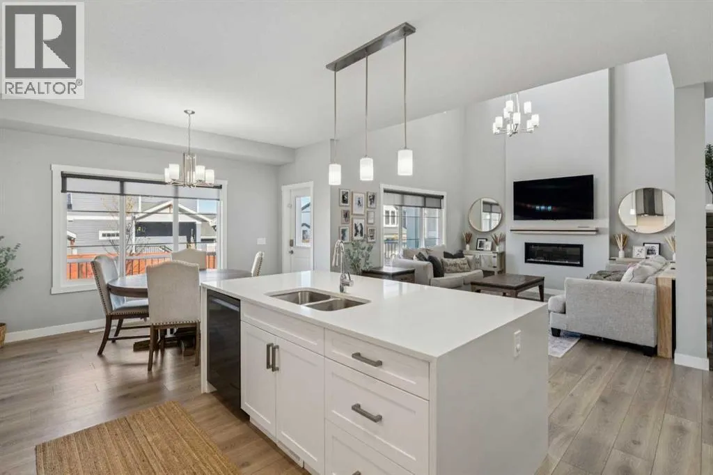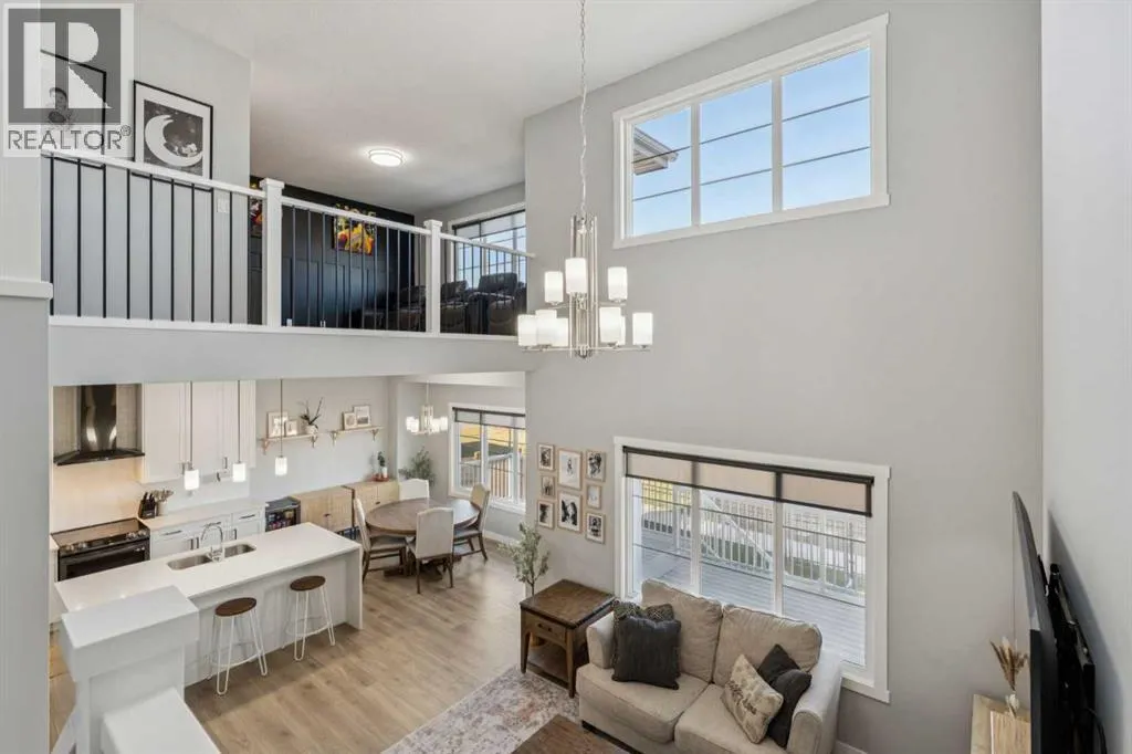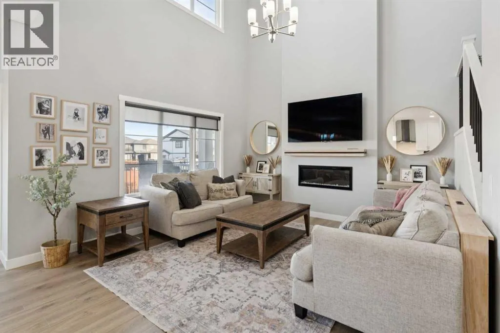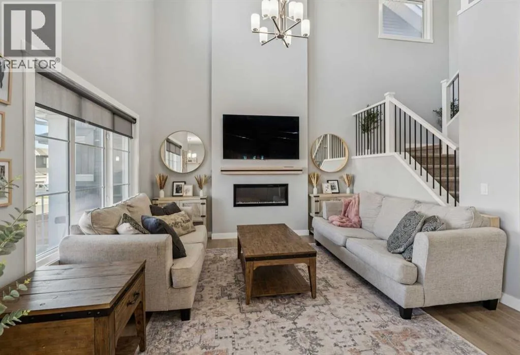 Welcome to this beautifully designed two-storey home in the desirable community of Cobblestone Creekâwhere style, function, and thoughtful design come together.Step inside to an inviting OPEN-CONCEPT main floor featuring a chef-inspired kitchen that is a showstopper with WATERFALL QUARTZ COUNTERTOPS on the ISLAND with a BREAKFAST BAR, an INDUCTION RANGE, sleek hood fan, BUILT-IN MICROWAVE, and a WALK-THROUGH PANTRY connecting seamlessly to the mudroom. The mudroom offers a BUILT-IN BENCH and convenient access to the TRIPLE ATTACHED GARAGE, complete with an EV CHARGER, SIDE ENTRANCE, and a handy BIN STORAGE SYSTEM. The living room impresses with soaring OPEN-TO-BELOW CEILINGS, an OPEN RAILING, and an ELECTRIC FIREPLACE with a MANTLE, creating a stunning focal point for family gatherings. A dedicated OFFICE on the main floor, is perfect for remote work or homework space. Upstairs, youâll find a bright BONUS ROOM accented with BOARD and BATTEN detailing, along with two spacious kidsâ bedrooms featuring the same custom touch. All bathrooms showcase QUARTZ COUNTERTOPS, adding a touch of luxury throughout. The laundry room is conveniently located upstairs.The primary bedroom is a serene retreat with a 5-piece ENSUITE featuring DOUBLE SINKS, a SOAKING TUB and a STAND ALONE SHOWER. The WALK-IN CLOSET that offers TWO-TIERED SHELVING and a WINDOW for natural lightâa rare and thoughtful upgrade.The UNFINISHED BASEMENT includes a BATHROOM ROUGH-IN, ready for your future development. Outside, enjoy the TWO-TIER COMPOSITE DECK, PARTIALLY COVERED for all-weather entertaining, overlooking TWO-TIERED LANDSCAPING with ARTIFICIAL TURF and a PAVED PATHWAY and GREEN SPACE behindâoffering privacy and easy outdoor living.This home blends modern comfort, designer details, and practical upgrades in one of Airdrieâs fastest-growing communities. (id:27476)