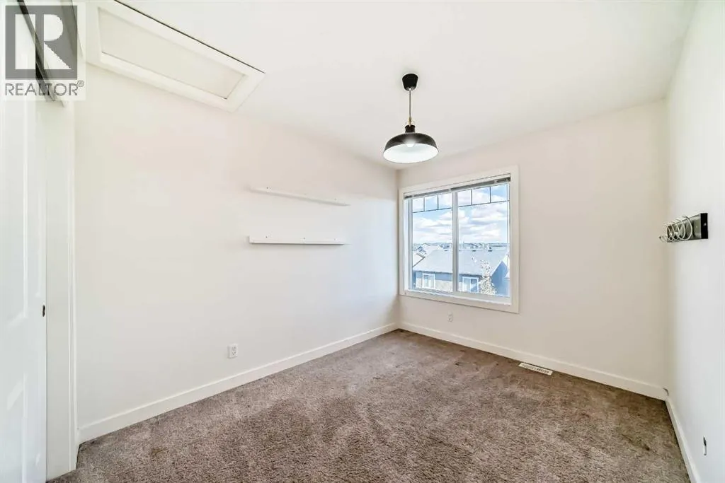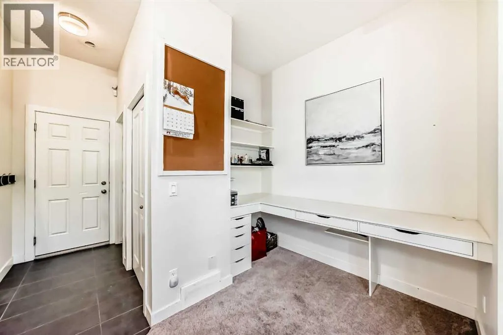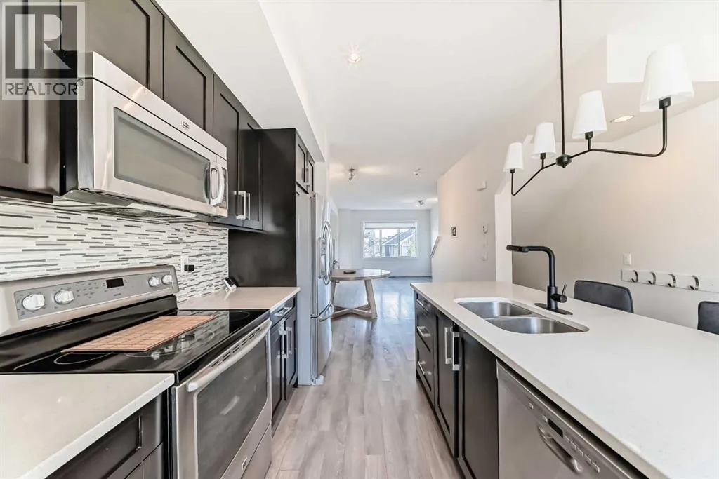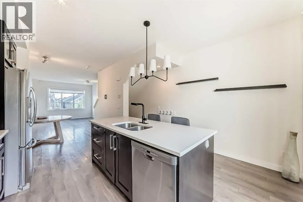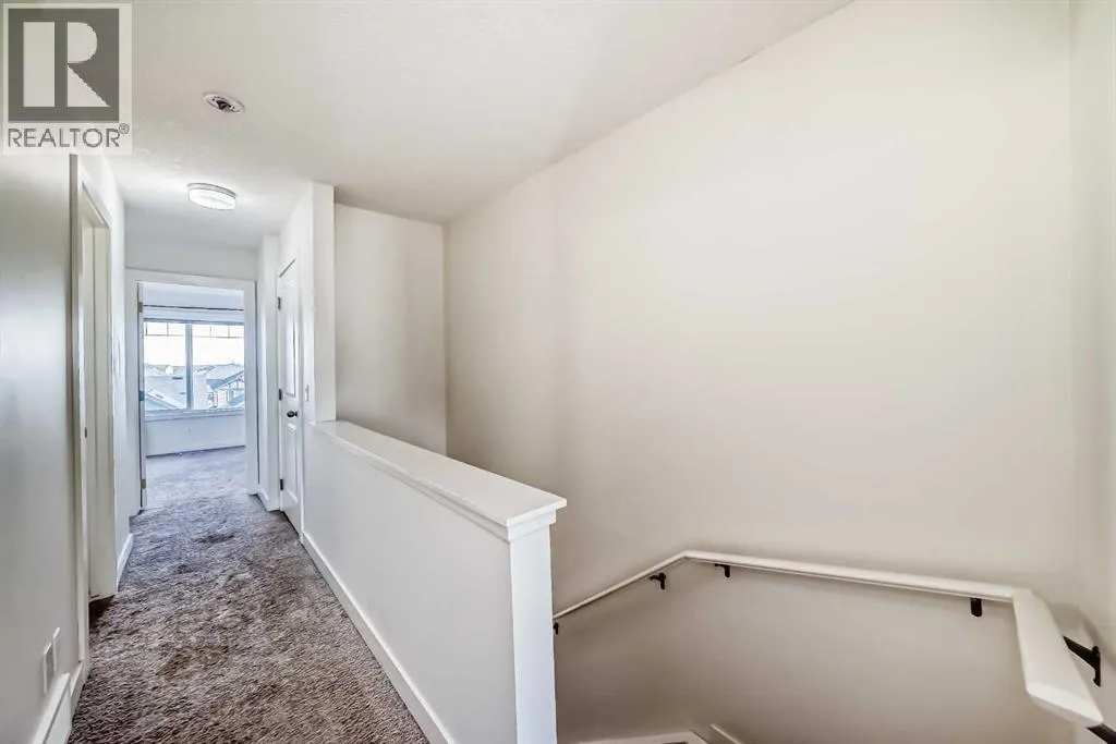 The ground floor entrance near garage leads to fabulous office workspace with built in desk and shelving. Entrance foyer with large closet and access to 2 pc bath, as well as inside entrance to garage where you will find the furnace/mechanical room. Carpeted stairs lead up to a beautiful open, spacious full of natural light main living area. There is a beautiful accent wall in dining and living room plus almost full width windows which floods the room with natural light. Kitchen features lots of rich dark natural wood cabinetry which highlights the gorgeous white quartz countertops and island. Gleaming stainless steel appliances complete your dream kitchen. Sliding patio doors lead to a balcony with enough room for the whole family. The upper level has 3 spacious bedrooms including a primary bedroom with a 3 piece ensuite and 2 double clothes closets. The upper level laundry room with stackable washer/dryer is a real step saver. Front yard is a fenced and private mini oasis with low maintenance landscaping with trees and bushes providing almost total privacy. Call your favourite Realtor to view this great family home. (id:27476)