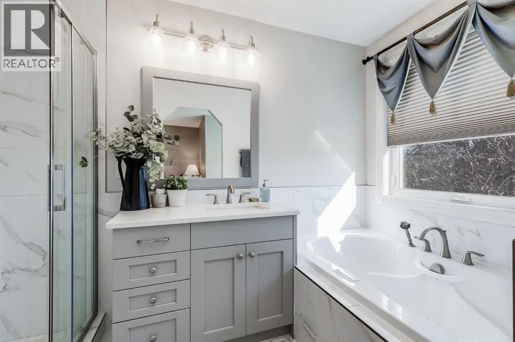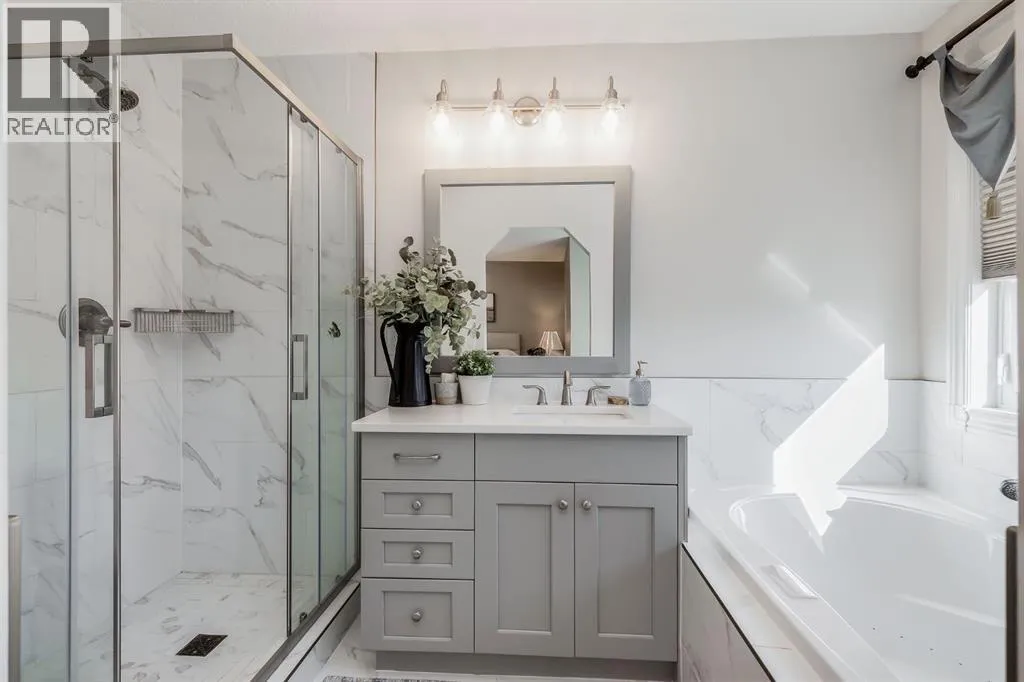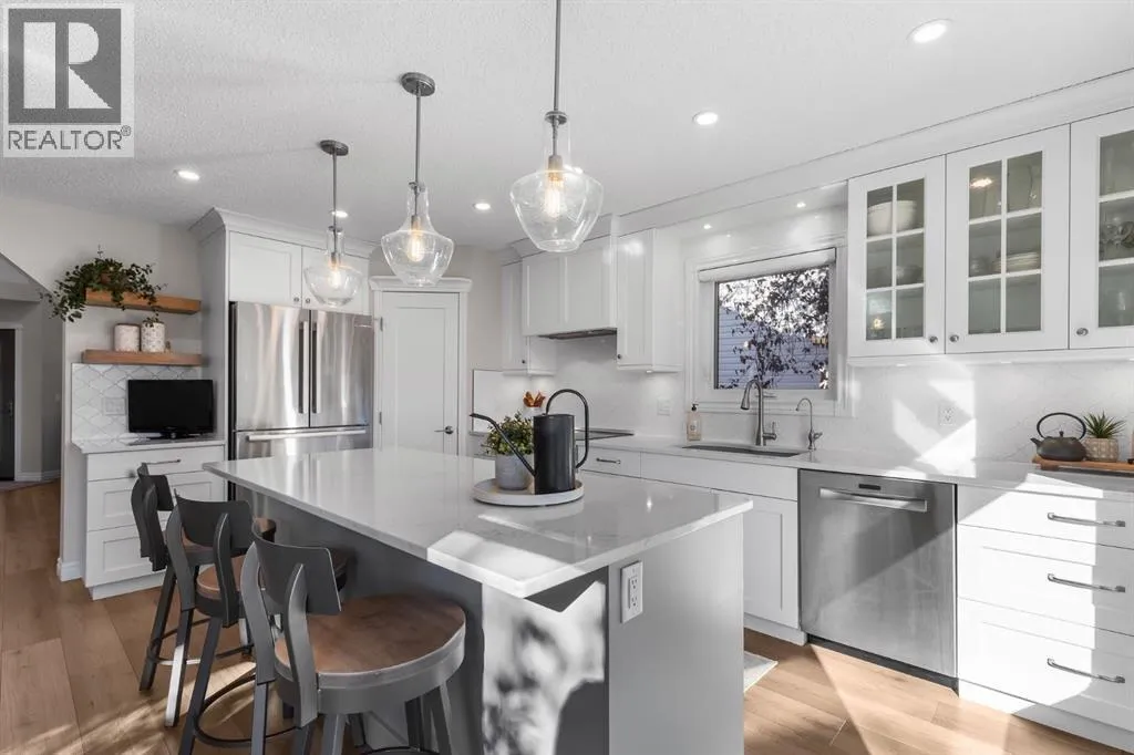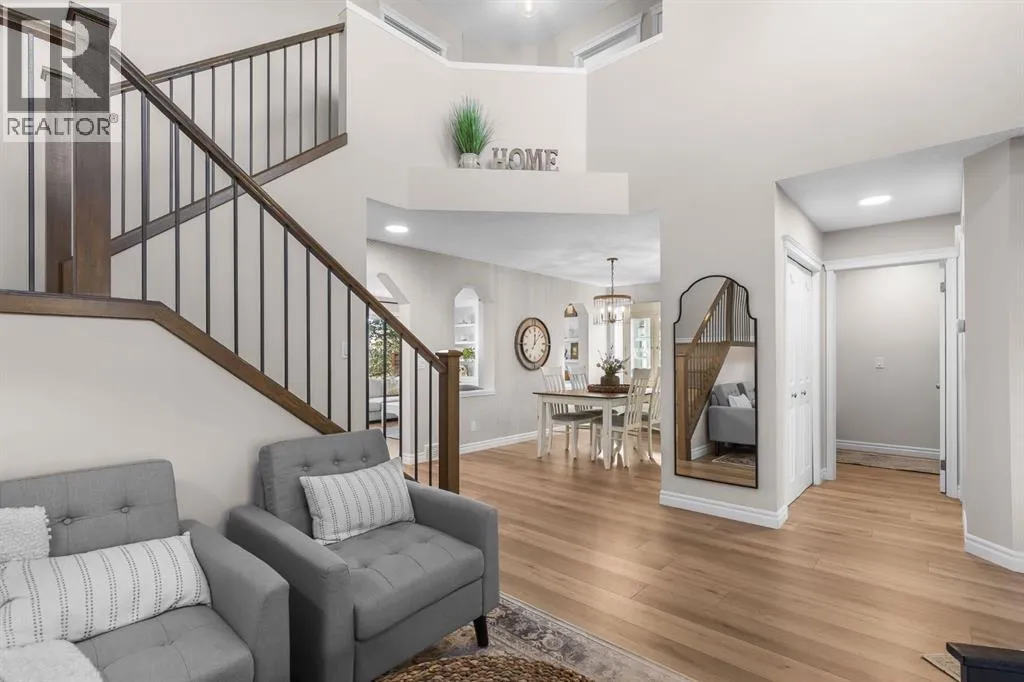 Price Adjustment Nov 6th ** This EXCEPTIONAL Home was Stunningly Updated with incredible care and attention to every detail, and BACKS ONTO WOODSIDE GOLF COURSE which provides beautiful views for you to enjoy year round. When you arrive you are welcomed by the Front Porch with New Exterior Door, and will be impressed with the Cathedral Ceilings with Extra Windows in the Foyer and Spacious Front Living Room making it an inviting space. The Engineerer Hardwood Flooring leads you to a Large Dining Room, and expands to the Family Room that Features a Built in Wall Unit that surrounds the Fireplace, an incredible Picture Window for you to enjoy the views of the Golf Course, and the elegant touch of Upgraded Electric Blinds. The Gorgeous Dream Kitchen features EKKO Kitchen Cabinetry with Crown Mouldings that includes a Lifetime Warranty, an abundance of Pot and Pan Drawers, Corner Pantry, Modern Lighting with Potlights, Stainless Steel Appliances with Induction Stove, Backsplash Tiling, Quartz Countertops, a Great Island with lots of storage and extra seating, and another Large Window for you to enjoy the views while you cook. The Main Level also has a Mudroom with Cabinetry, and a Half Bath. The lovely Staircase with Metal Railing leads to the Upper Level that features a Large Primary Bedroom that can fit a King Suite, a Walk in Closet, Sitting Area to enjoy a book, and the Updated Oasis Ensuite with New Vanity, Glass Shower and Air Jetted Jacuzzi Tub. Two Additional Spacious Bedrooms and a Full Bathroom complete the upper level. The Lower Level has a Huge Recreation Room with a Fireplace and Luxury Vinyl Plank Flooring, the 4th Bedroom with large walk in closet, and 3 pc Bathroom. This amazing Home includes: TRIPLE PANE WINDOWS, Upgraded Lighting throughout, High Efficiency Furnace (2015), Reverse Osmosis System, Water Softener, Underground Sprinklers, Air Conditioning, Singles (2023), and Exterior Doors. The Yard has been lovingly tended and cared for with many perenni als and shrubs, a rebuilt 2 Tiered Deck for you to enjoy the yard and views (2018), and an established Apple tree. The Garage has been insulated and drywalled. This Incredible Home is located close to the Golf Course that has excellent Dining, Schools, Transportation, and has easy access to QE2. Come and see this Beauty and Make it Yours. (id:27476)