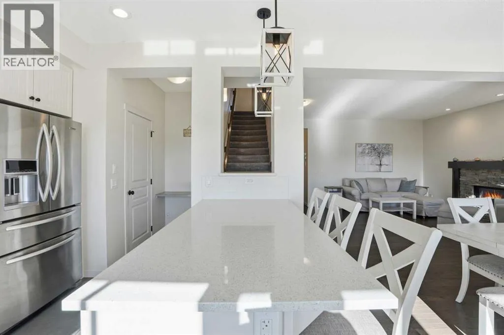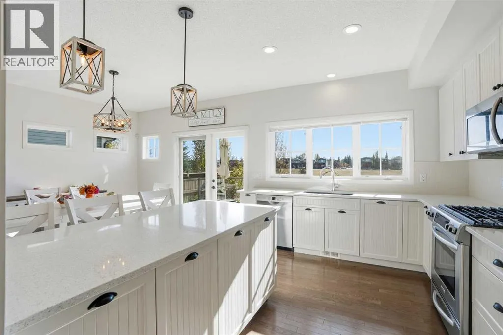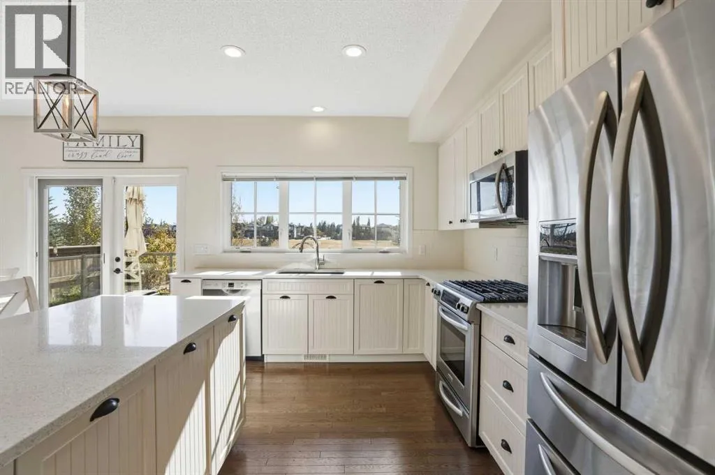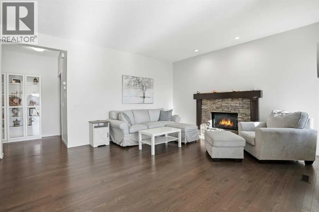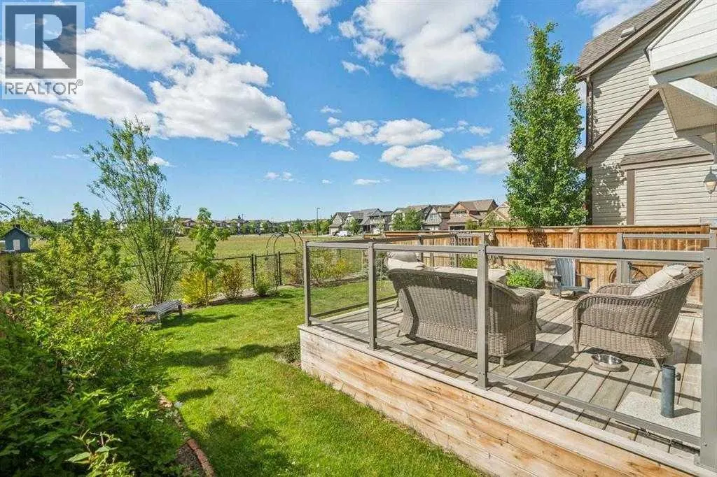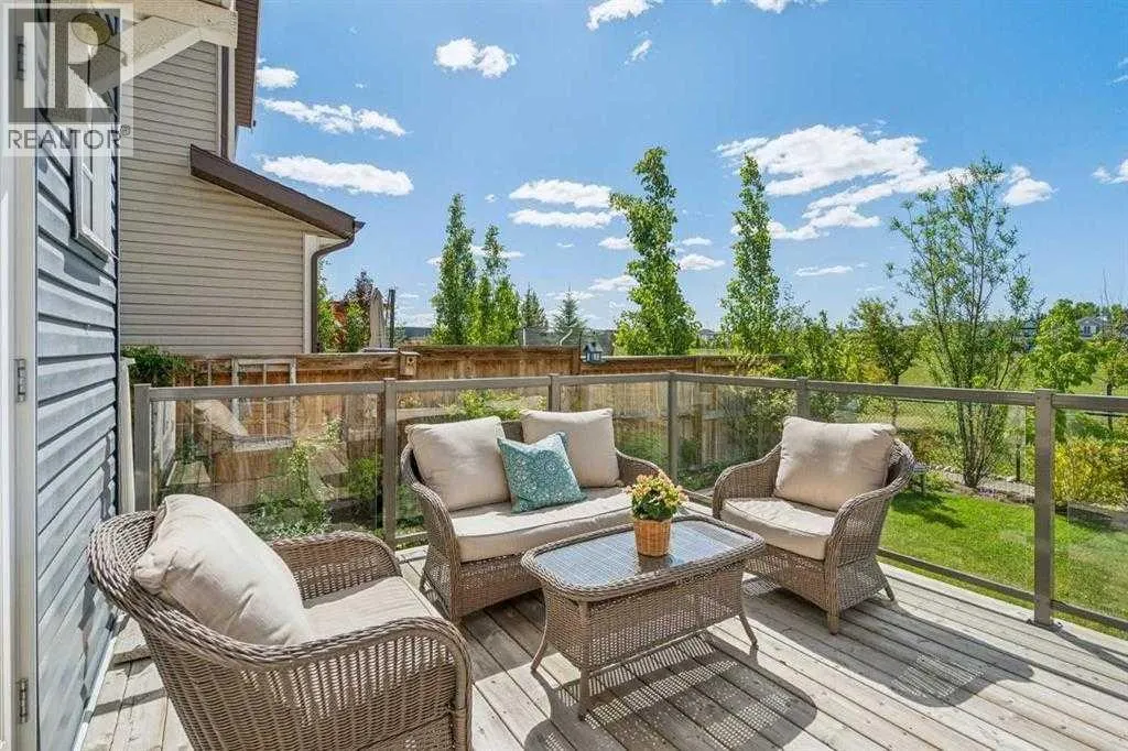 Welcome to this beautifully maintained 3-bedroom, 2.5-bathroom home backs onto green field, next to the school in the heart of Reunion, Airdrie. Offering over 2,150 sq. ft. of bright, inviting living space plus a versatile bonus/flex room, this home truly stands out for its thoughtful layout and pride of ownership. Step inside to a spacious entryway and rich hardwood floors that flow seamlessly throughout the main level. The open-concept design creates an airy, connected feel, while south-facing windows fill the home with natural light all day long. On cooler evenings, unwind by the cozy gas fireplace in the generous living room. The chefâs kitchen is a perfect hub for family gatherings and entertaining, featuring a gas stove, stainless steel appliances, ample counter space, and a large island with breakfast bar. A spacious mudroom with built-in lockers keeps everything organized as you come and go. Upstairs, a bright bonus room offers flexibility for a family retreat, play area, or home office. The primary suite overlooks the backyard and includes a walk-in closet and spa-like ensuite. Two additional bedrooms, a full bath, and convenient upper-floor laundry complete the level. The bright, unfinished basement is ready for your ideasâwhether you envision a rec room, home gym, or additional living space, the possibilities are endless. Outside, enjoy the south-facing, fully landscaped, and fenced backyard, complete with a spacious deck and backs onto plenty of green space for play or relaxation. With Herons Crossing (Kâ8) School just across the back field, plus parks, playgrounds, and shopping nearby, this home perfectly blends comfort and convenience. Additional features include air conditioning, a double attached garage, and newly installed permanent exterior lights . Donât miss this rare opportunity to own a warm, inviting home in a friendly, family-oriented communityâbook your private showing today! (id:27476)