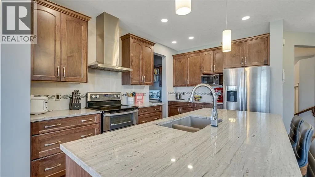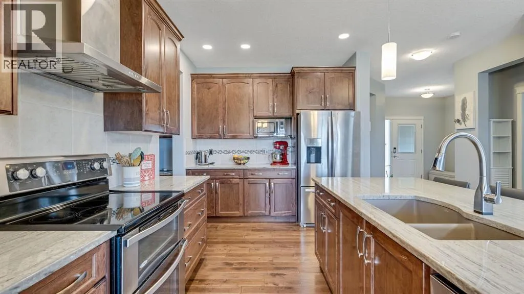 Welcome to Hillcrest Heights, where comfort, space, and lifestyle come together in this beautifully maintained 5-bedroom, 4.5-bath home with over 3000 sq ft of livable area, and a fully finished walk-out basement. This bright, open main floor features large windows framing peaceful greenspace views, a welcoming living area, and a kitchen/dining space perfect for family meals or entertaining. A convenient half bath and thoughtful storage complete this level.Upstairs, discover four spacious bedrooms, including two with ensuites. The primary suite offers panoramic views of Airdrie, a spa-inspired ensuite, and a custom walk-in closet with built-in shelving.The finished, walk-out basement provides a fifth bedroom, full bath, and three additional storage rooms! Perfectly suited for an office, gym, or hobby area.Step outside for direct access to the greenspace and walking paths, perfect for morning walks or evening play. The three-car garage offers generous storage, and the location is walking distance to schools, parks, and shopping, with quick access to Highway 2 for an easy Calgary commute.This Hillcrest Heights home combines function, comfort, and lifestyle â a welcoming space where your family can grow, relax, and thrive. (id:27476)