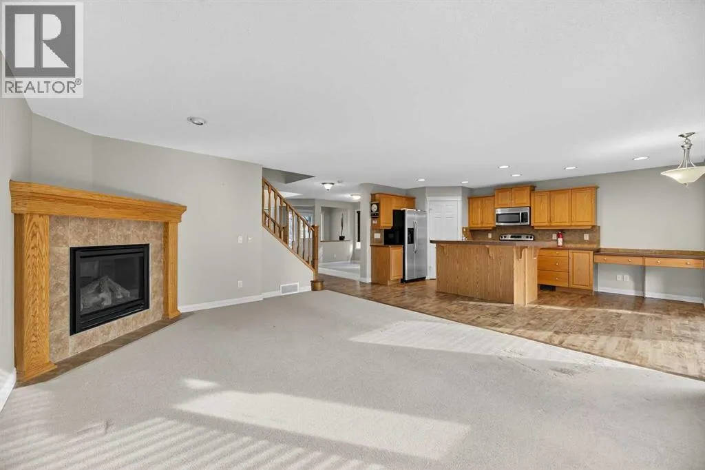 Ideally situated in the vibrant, family-friendly community of Sagewood, this well-maintained home offers the perfect blend of comfort, space, and style. From the moment you arrive, the inviting curb appeal sets the stage for what awaits inside. Step into a spacious foyer with direct access to a bright home office/flex room, perfect for remote work or hobbies. The open-concept layout across the rear of the home is designed for both everyday living and entertaining. The kitchen features a large island and corner pantryâideal for the family chefâwhile the adjoining dining area easily accommodates everything from quiet dinners to larger gatherings. A rear door leads to a sunny two-level south deck and lower patio, extending your living space outdoors. The living room is filled with natural light from expansive windows and anchored by a cozy gas fireplace, creating a warm and welcoming atmosphere. Everyday convenience is built in with a main-floor laundry and mudroom. Upstairs, a versatile loft provides the perfect spot for a playroom, home office, or lounge. Three well-appointed bedrooms complete the upper level, including a spacious primary suite with a walk-in closet, soaker tub, and separate shower. The lower level offers plenty of potential for a future development tailored to your familyâs needs. The front exterior of the home was re-done after the 2014 hailstorm, and with an additional 2â Styrofoam insulation in the exterior walls, as well as a new high efficiency furnace installed in 2024, this makes for a very energy efficient home. All of this is located on a quiet street in the heart of Sagewood, just a short walk to schools, canals, walking/biking paths, soccer fields, and outdoor skating rinks. Donât miss the chance to make this exceptional home yoursâbook your private showing today! (id:27476)