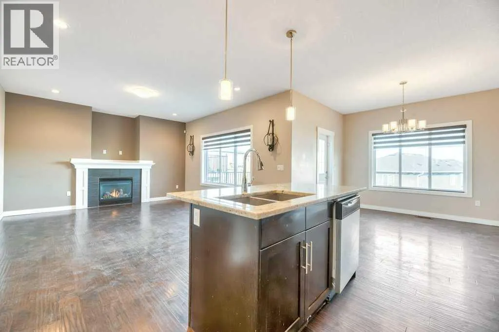 This stunning 2-storey home with a DOUBLE ATTACHED GARAGE and a FULLY DEVELOPED WALK-OUT BASEMENT offers exceptional value in one of Airdrieâs most desirable communities. Step inside to soaring 9â CEILINGS and gleaming hardwood floors that flow throughout the main level. The spacious living room is filled with natural light and features a cozy gas fireplace. The chef-inspired kitchen is equipped with granite countertops, a large island, corner pantry, and direct access to the dining roomâperfect for family meals and entertaining. From here, step out to your deck overlooking the backyard, ideal for summer BBQs. A private MAIN FLOOR OFFICE WITH FRENCH DOORS and a convenient laundry/mudroom with garage access complete this level. Upstairs, youâll find three generously sized bedrooms and a bright bonus room. The PRIMARY SUITE is a true retreat, a walk-in closet, and a spa-like 5-piece ensuite with soaker tub and separate shower. A 4-piece bathroom serves the additional bedrooms. The WALK-OUT BASEMENT is perfect for extended family or guests, featuring a separate entrance, two large bedrooms, a 3-piece bathroom, and a spacious recreation/games room. Additional highlights include AIR CONDITIONING, wrought-iron staircase, and a fantastic location close to schools, parks, shopping, and transit. Donât miss your chance to own this beautiful family home in Bayspringsâbook your showing today! (id:27476)