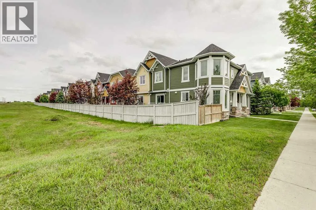 Welcome to this beautifully maintained SMART HOME, a true 3 STOREY DESIGN that stands out among neighbouring bungalow layouts in the heart of family and pet friendly Ravenswood. This condo is fully fenced, with a NO-MAINTENANCE BACKYARD and gas BBQ hookup, creating your own sunny, private retreat at the edge of Airdrieâs Southeast. Easy access to all amenities, shopping and only a short commute to Calgary via the QE2 and RR 292. The LOW CONDO FEES cover exterior home repairs, insurance and all ground maintenance for the Zen compound which will make your new life here low maintenance! The charming community of Ravenswood offers a connected lifestyle with schools (including Ãcole des Hautes-Plaines and Heloise Lorimer School), beautiful parks and trails just steps away. Inside, this rare 3-STOREY layout offers a clear separation between living, sleeping and storage spaces, perfect for families, professionals or roommates who value privacy and functionality. Youâll also notice modern tech features like a SECURITY SYSTEM, NEST HOME SYSTEM, LIGHTING CONTROLS AND KEYLESS ENTRY. Upon entering, youâll notice a bright and functional main floor with 9â ceilings and durable laminate flooring that flows throughout. The main level is dedicated to everyday living, with a front living room that invites relaxation, a central dining area for gathering, and a stylish kitchen at the back equipped with quartz countertops, stainless steel appliances, full-height cabinetry, a centre island and timeless subway tile â ideal for both casual meals and entertaining. A discreet powder room adds main floor convenience! Upstairs, the second level hosts two generous bedrooms â each with its own private ensuite â offering true dual-primary flexibility. One bedroom features a private 4-piece ensuite and large closet, while the second offers its own 3-piece ensuite and dual closets, perfect for children, guests or roommates. Below, the undeveloped basement provides yet another level of opportunity, featuring high ceilings, a large legal sized window, blown-in insulation, perimeter bracing, and rough-ins for a future bathroom â ready for your creative vision or added storage. Additional perks include HARDIE BOARD SIDING, a HIGH-EFFICIENCY FURNACE, HRV, CENTRAL VAC, WATER SOFTENER and 1 assigned parking stall with abundant visitor and street parking for guests. Additional perks include HARDIE BOARD SIDING, a HIGH-EFFICIENCY FURNACE, HRV, CENTRAL VAC, WATER SOFTENER and 1 assigned parking stall with abundant visitor and street parking for guests. (id:27476)