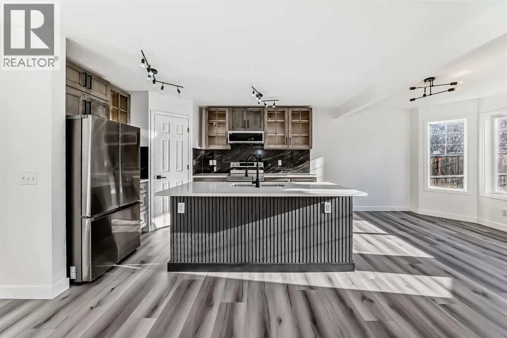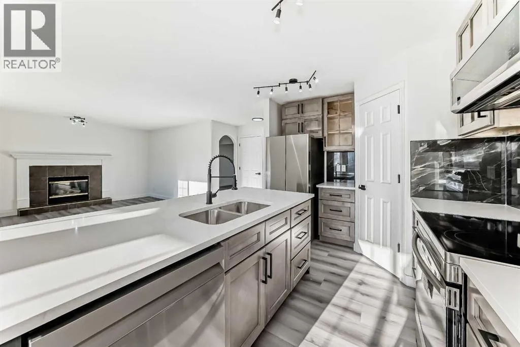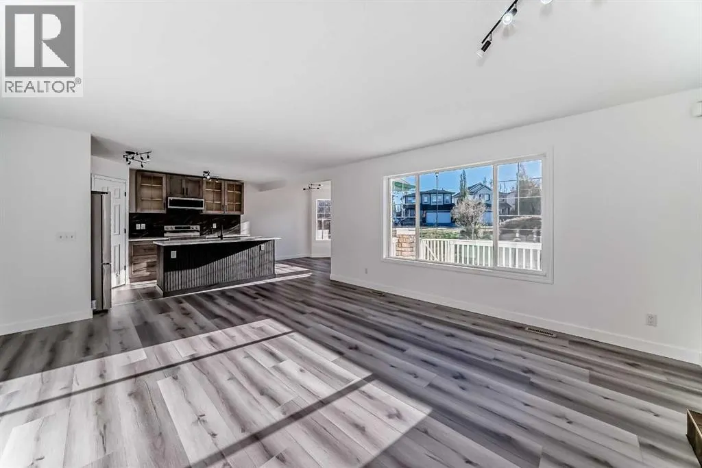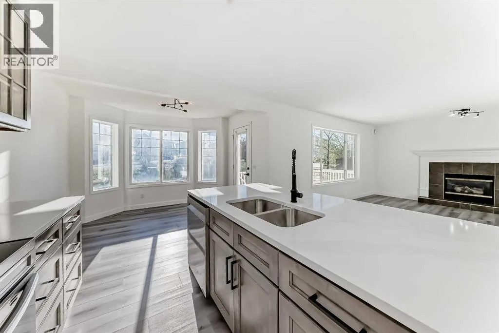Pride of ownership exudes from this former Crestview Show Home located in the highly sought after community of the "Canals". Extensive renovations have just been completed including new flooring and fresh paint through-out. The kitchen has undergone a full remodel featuring new S/S appliances, cabinets, hardware plus a large center island with quartz counter-tops and tiled backsplashes. Off the kitchen is a good sized breakfast nook that grants access to a large East facing back deck that overlooks a park. Completing the main floor is a huge family room with a cozy gas fireplace plus a formal dining area, front living room, office, 2pc bath and laundry area. Upstairs you will find a massive primary bedroom with a walk-in closet, 4 pc ensuite (jetted soaker tub and separate shower) plus access to a West facing balcony. Completing the upper level are 3 additional bedrooms and another 4pc bath. The basement offers high ceilings, large windows and awaits your finishing touches. Additional bonuses include: new baseboards, toilets, LED fixtures, hot water tank plus the furnace has been recently serviced and the ducts cleaned. The double attached garage comes with a gas heater, freshly painted floors plus a front driveway great for additional parking. This home backs onto a park with no neighbors behind and is located close to schools, shopping, walking paths and easy access to main roadways. (id:27476)