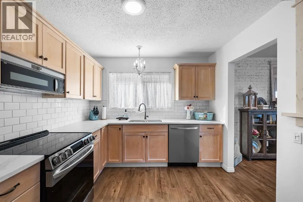 *OPEN HOUSE Sat Nov 15th 2-4 pm* Welcome to this beautifully updated 5-bedroom, 2-bath bungalow in quiet Airdrie Meadows! With over 2,000 sq ft of developed space, this bright and functional home blends modern upgrades with family-friendly comfort. The sun-filled main floor features large windows, an inviting living room/dining room combo, a renovated kitchen with new stainless-steel appliances, quartz countertops and subway tile backsplash. Three spacious bedrooms and a refreshed 4-piece bath complete the upper level. Downstairs offers two additional bedrooms, a 3-piece bath, laundry, rec room, and flex/den space â perfect for guests, teens, or work-from-home. Enjoy the sunny, fully fenced south-facing backyard with an oversized single detached garage. Walking distance to schools, parks, shopping, and easy access to commuter routes. This move-in-ready home offers incredible value in one of Airdrieâs most established neighbourhoods. (id:27476)