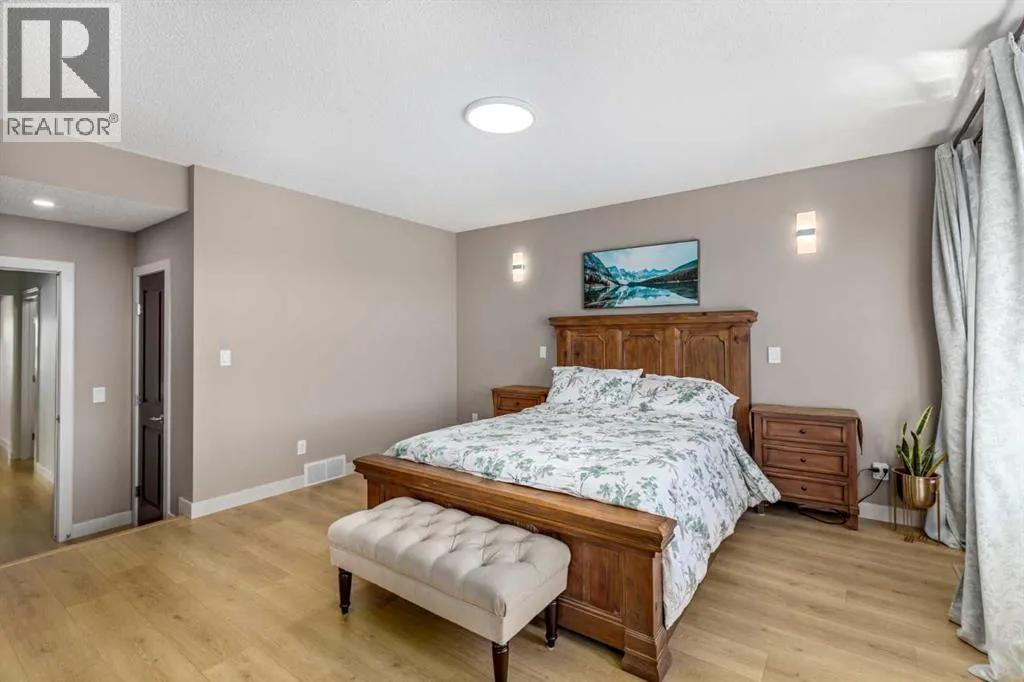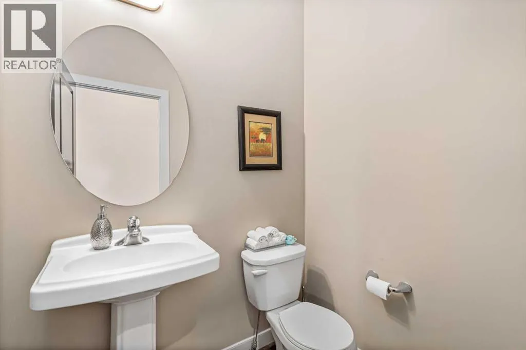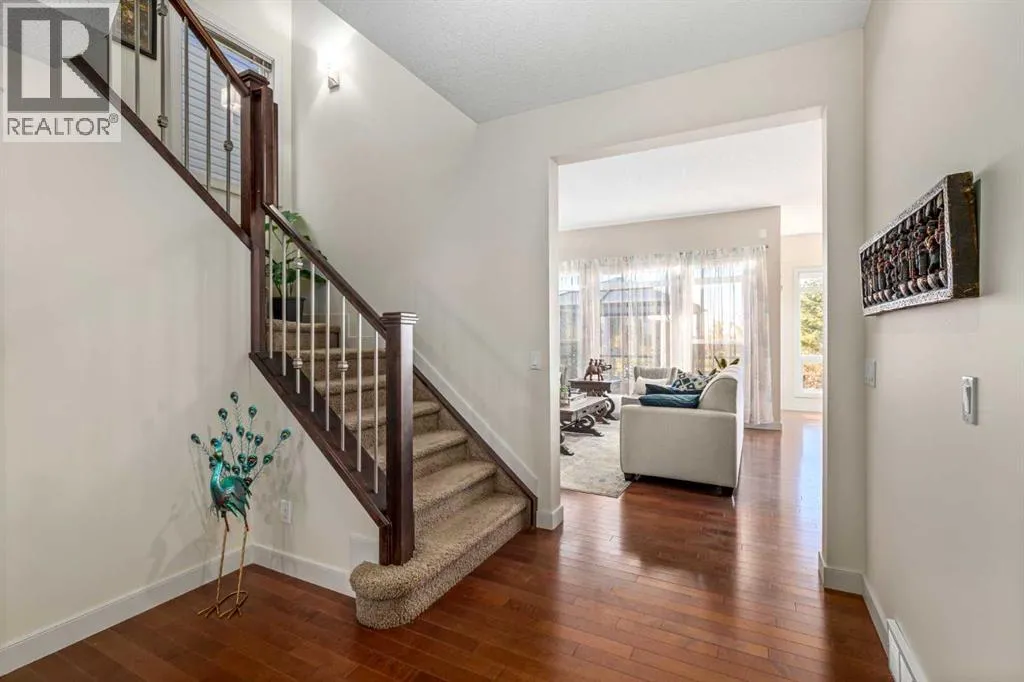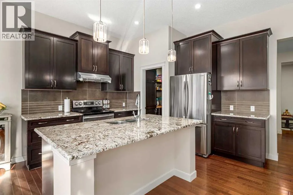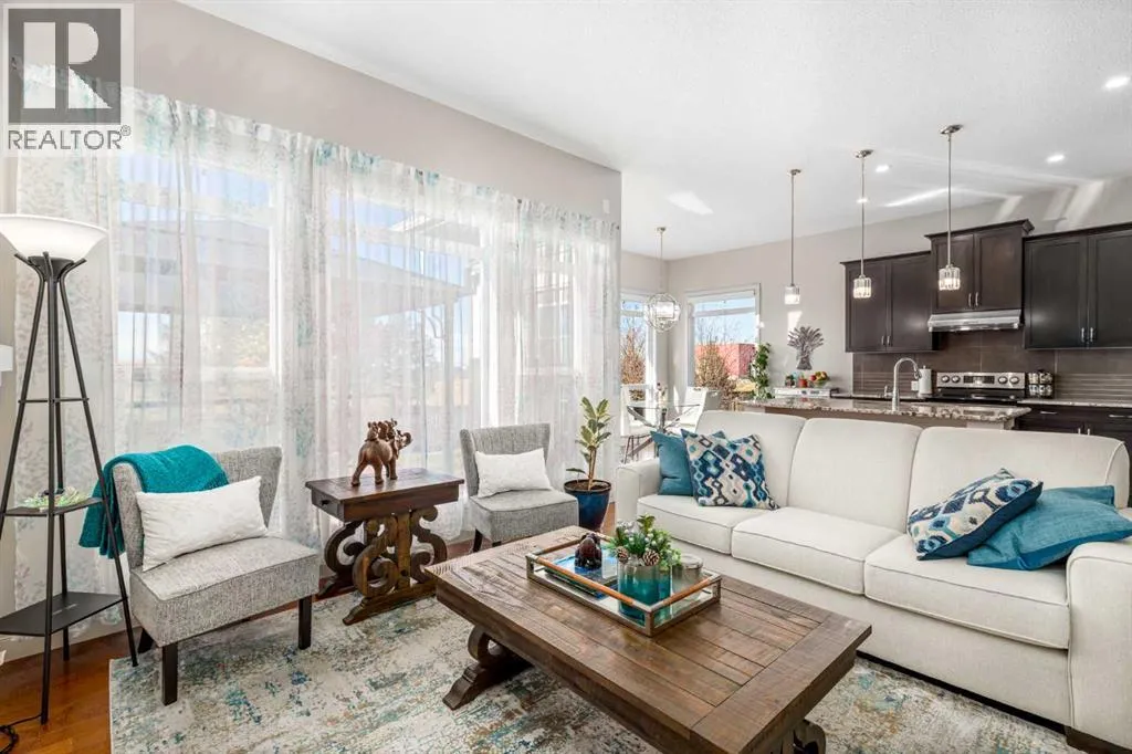 Wake up to breathtaking mountain views and enjoy your own WEST-facing backyard oasis. Welcome to 186 Ravenscroft Green, a beautifully maintained and upgraded family home in a highly sought-after quiet location, BACKING ONTO A WALKING PATH AND OPEN FIELD. The main level features a spacious front entry with a dual-door coat closet that leads into a bright and private office or den, ideal for working from home. The open-concept living area offers 10-foot ceilings, large windows, and a cozy gas fireplace, creating a warm and inviting atmosphere. The chef-inspired kitchen showcases elegant granite countertops, a large island with under-mount sink and eating bar, stainless steel appliances, and a custom walk-through pantry complete with built-in shelving. The adjoining dining area opens through dual patio doors to the west-facing deck and backyard, perfect for entertaining with a built-in BBQ gas line. A half bath and a convenient laundry and mudroom with garage access complete the main floor. Upstairs, the beautiful spindled staircase leads to a spacious bonus room with vaulted ceilings and an abundance of natural light. Three generous bedrooms include the primary retreat, which offers stunning mountain views, a massive walk-in closet, and a luxurious spa-inspired ensuite with dual sinks, a soaker tub, a large walk-in shower, and plenty of counter and cabinet space. A four-piece main bath serves the additional bedrooms. The unfinished basement provides the perfect layout for future development with room for two bedrooms, a large recreation area, and a roughed-in bathroom. The home is complete with a high-efficiency furnace, new hot water tank (2025), upgraded trim throughout, and recent exterior updates including new siding, roof, and garage door completed in 2021. Backing onto greenspace and a walking path, this home offers the perfect balance of space, style, and location. Donât miss your opportunity to own this exceptional property with incredible mountain views in o ne of the areaâs most desirable communities. Book your showing today! (id:27476)